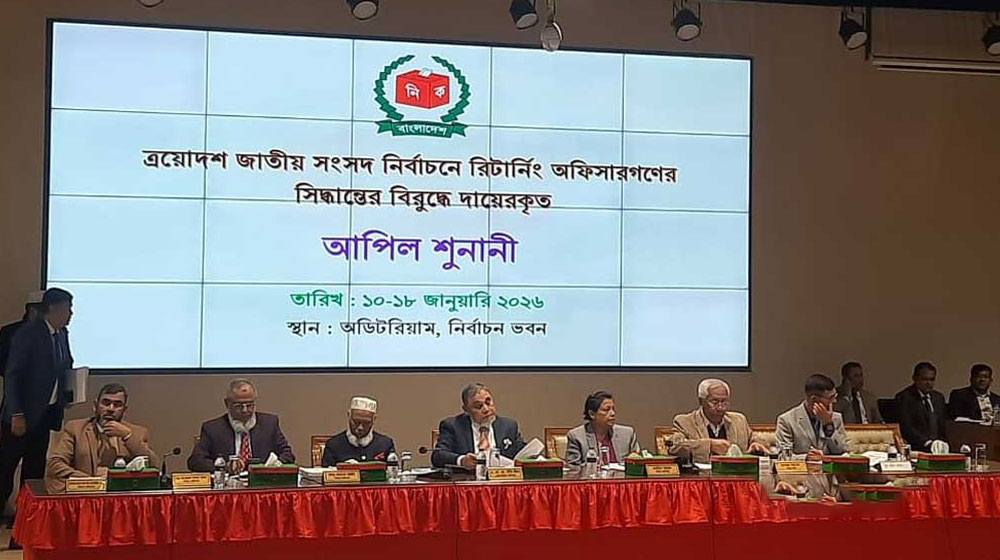 রাজধানীর আগারগাঁওয়ে নির্বাচন কমিশন ভবনের অডিটোরিয়ামে (বেইজমেন্ট-২) প্রধান নির্বাচন কমিশনার (সিইসি) এ এম এম নাসির উদ্দিনের সভাপতিত্বে পূর্ণাঙ্গ কমিশন এই আপিল শুনানি গ্রহণ করেন।