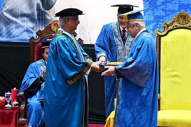 আজ বুধবার মালয়েশিয়ার কুয়ালালামপুরে বিশ্ববিদ্যালয় অডিটরিয়ামে আয়োজিত এক আনন্দঘন পরিবেশে চ্যান্সেলরের কাছ থেকে সম্মানসূচক ডক্টরেট ডিগ্রির সনদ নেন মুহাম্মদ ইউনূস।