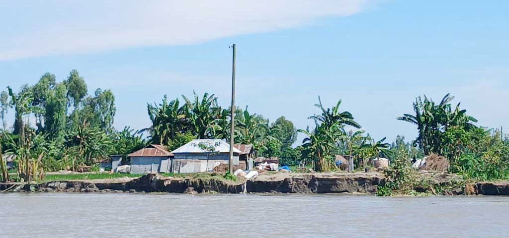 “বাড়িঘর খুইল্ল্যা অন্যের জমির আইলে মাল ছামান রাখছি।”-কথাগুলো বলছিলেন কুড়িগ্রামের রাজারহাট উপজেলার ঘড়িয়ালডাঙ্গা ইউনিয়নের মাঝেরচর গ্রামের তিস্তা পাড়ের বাসিন্দা ফুলমতি বেগম।