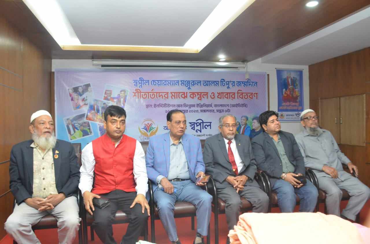 গত ২৬ ডিসেম্বর ২৩ ইং মঙ্গলবার সামাজিক সংগঠন ‘স্বপ্নীল’র চেয়ারম্যান বিশিষ্ট ব্যাংকার, সংগঠক ও উন্নয়ন সমাজকর্মী মনজুরুল আলম টিপুর শুভ জন্মদিন উপলক্ষে সন্ধ্যায় ৬ ঘটিকার সময় রাজধানীর ডিপ্লোমা ইনস্টিটিউট সোশ্যাল গার্ডেন মিলনায়তনে অসহায়, সুবিধা বঞ্চিতপথশিশু, প্রতিবন্ধী ব্যক্তি, এতিমদের মাঝে কম্বল ও খাবার বিতরণ করা হয়।