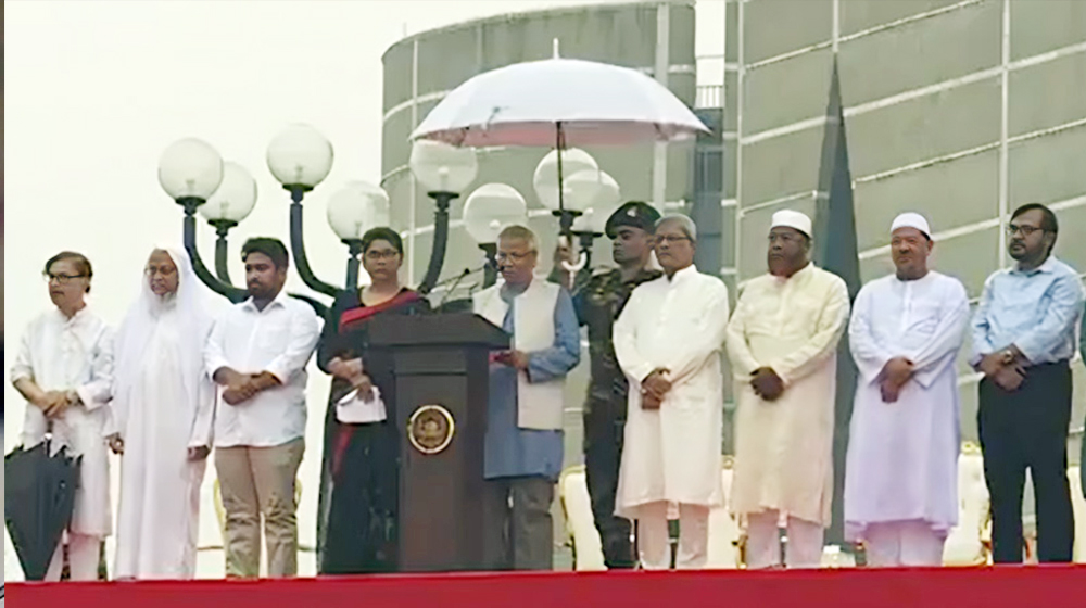 ‘জুলাই ঘোষণাপত্র’ পাঠ করেছেন প্রধান উপদেষ্টা অধ্যাপক ড. মুহাম্মদ ইউনূস।