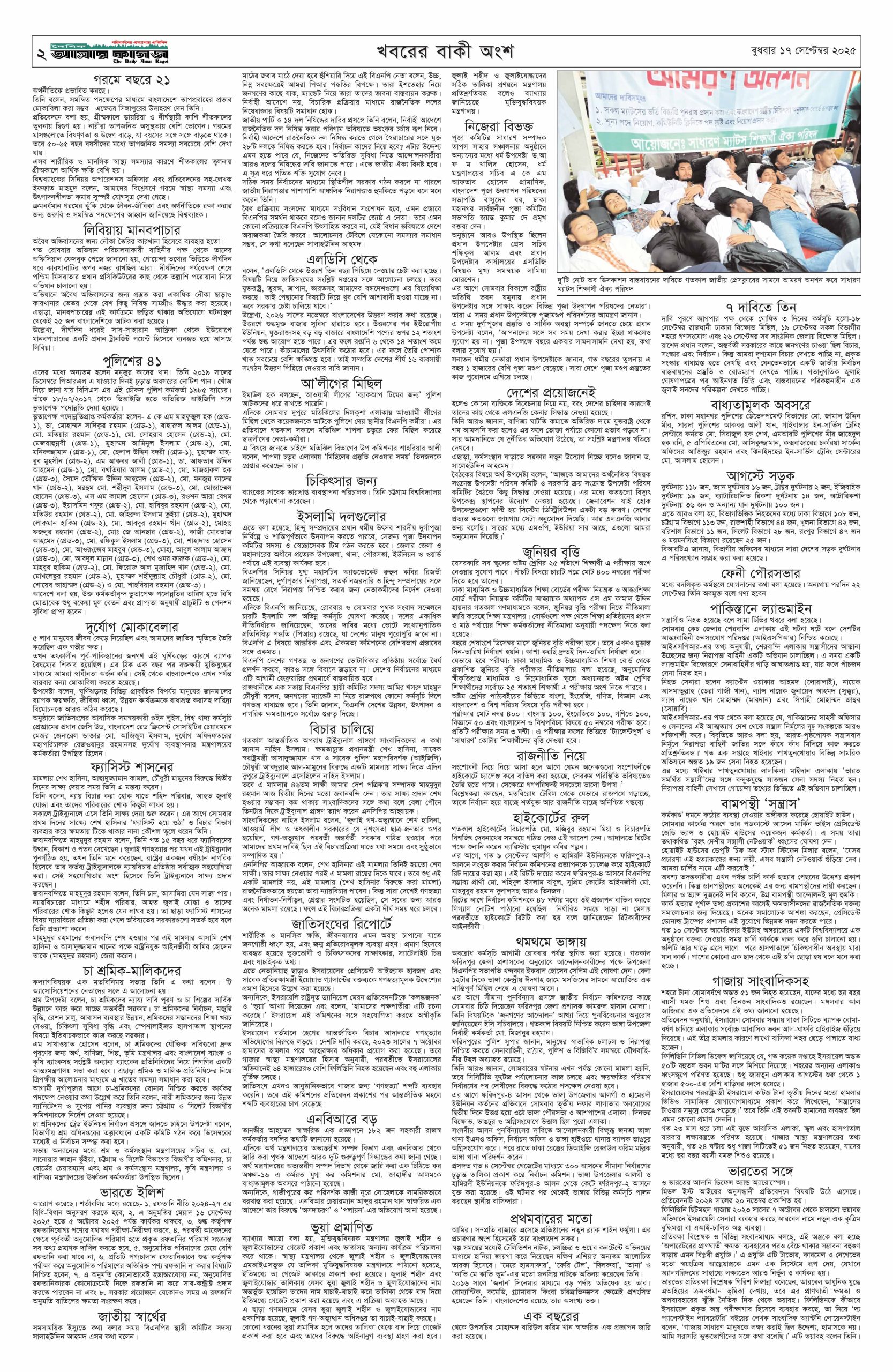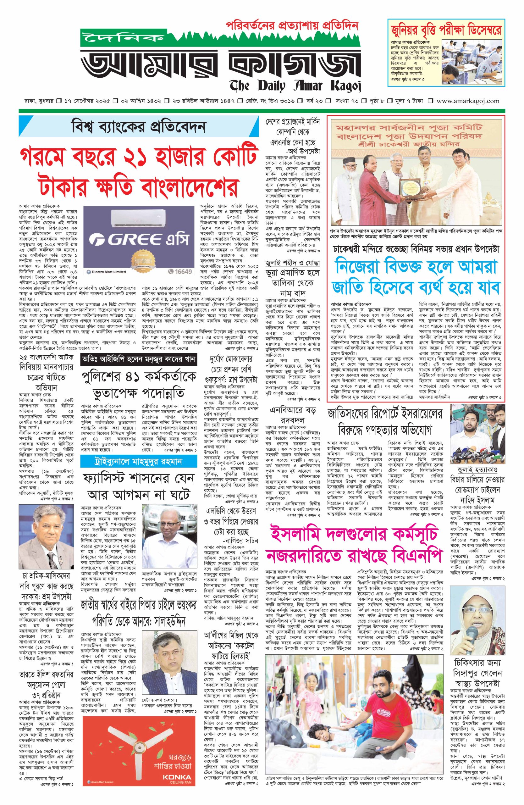 ই পেপার প্রধান সংবাদ সর্বশেষ দৈনিক আমার কাগজ ই-পেপার (বুধবার, ১৭ সেপ্টেম্বর ২০২৫) Faruk Hossain September 17, 2025 10:10 AM Continue Reading Previous: বাঁচা-মরার লড়াই বাংলাদেশের, পরিসংখ্যানে এগিয়ে আফগানরাNext: চট্টগ্রামে সিলিন্ডারের গুদামে বিস্ফোরণ, দগ্ধ ১০ Leave a Reply Cancel replyYour email address will not be published. Required fields are marked *Comment * Name * Email * Website Save my name, email, and website in this browser for the next time I comment. Related Stories কাকে বিয়ে করছেন বিএনপি নেতা ইশরাক? প্রধান সংবাদ কাকে বিয়ে করছেন বিএনপি নেতা ইশরাক? October 11, 2025 3:36 PM বাংলাদেশে আসা চালানসহ ৫০টির বেশি প্রতিষ্ঠান-জাহাজের বিরুদ্ধে মার্কিন নিষেধাজ্ঞা 1 min read জাতীয় বাংলাদেশে আসা চালানসহ ৫০টির বেশি প্রতিষ্ঠান-জাহাজের বিরুদ্ধে মার্কিন নিষেধাজ্ঞা October 11, 2025 3:30 PM দেশে গ্যাস সংকটের মূলে রাজনীতিবিদ আর ব্যবসায়ীরা: জ্বালানি উপদেষ্টা জাতীয় দেশে গ্যাস সংকটের মূলে রাজনীতিবিদ আর ব্যবসায়ীরা: জ্বালানি উপদেষ্টা October 11, 2025 1:34 PM