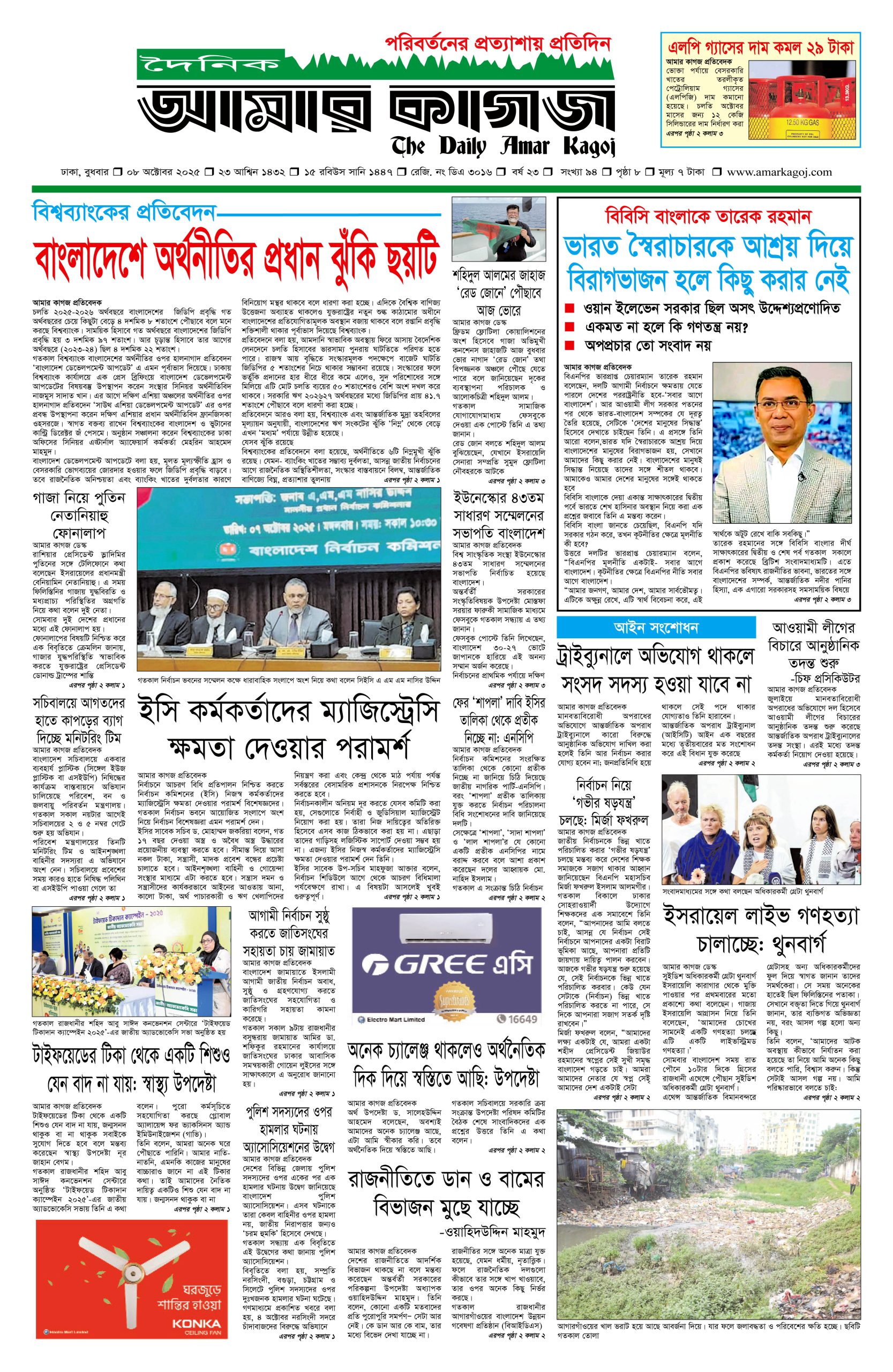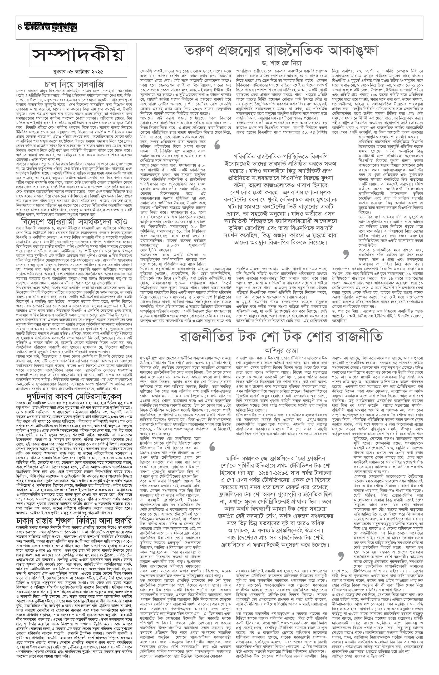 ই পেপার প্রধান সংবাদ সর্বশেষ দৈনিক আমার কাগজ ই-পেপার (বুধবার, ৮ অক্টোবর ২০২৫) Faruk Hossain October 8, 2025 9:42 AM Continue Reading Previous: আইন ও বিচার বিভাগের নতুন সচিব হলেন লিয়াকতNext: মিশরে যুদ্ধবিরতি আলোচনা: গাজা থেকে ইসরায়েলি সেনা পুরোপুরি প্রত্যাহার চায় হামাস Leave a Reply Cancel replyYour email address will not be published. Required fields are marked *Comment * Name * Email * Website Save my name, email, and website in this browser for the next time I comment. Related Stories দেশে গ্যাস সংকটের মূলে রাজনীতিবিদ আর ব্যবসায়ীরা: জ্বালানি উপদেষ্টা জাতীয় দেশে গ্যাস সংকটের মূলে রাজনীতিবিদ আর ব্যবসায়ীরা: জ্বালানি উপদেষ্টা October 11, 2025 1:34 PM শহীদ মিনারে সৈয়দ মনজুরুল ইসলামকে শ্রদ্ধা নিবেদন প্রধান সংবাদ শহীদ মিনারে সৈয়দ মনজুরুল ইসলামকে শ্রদ্ধা নিবেদন October 11, 2025 1:28 PM সাত রুটে অস্ত্র ঢুকছে দেশে 1 min read জাতীয় সাত রুটে অস্ত্র ঢুকছে দেশে October 11, 2025 1:23 PM
