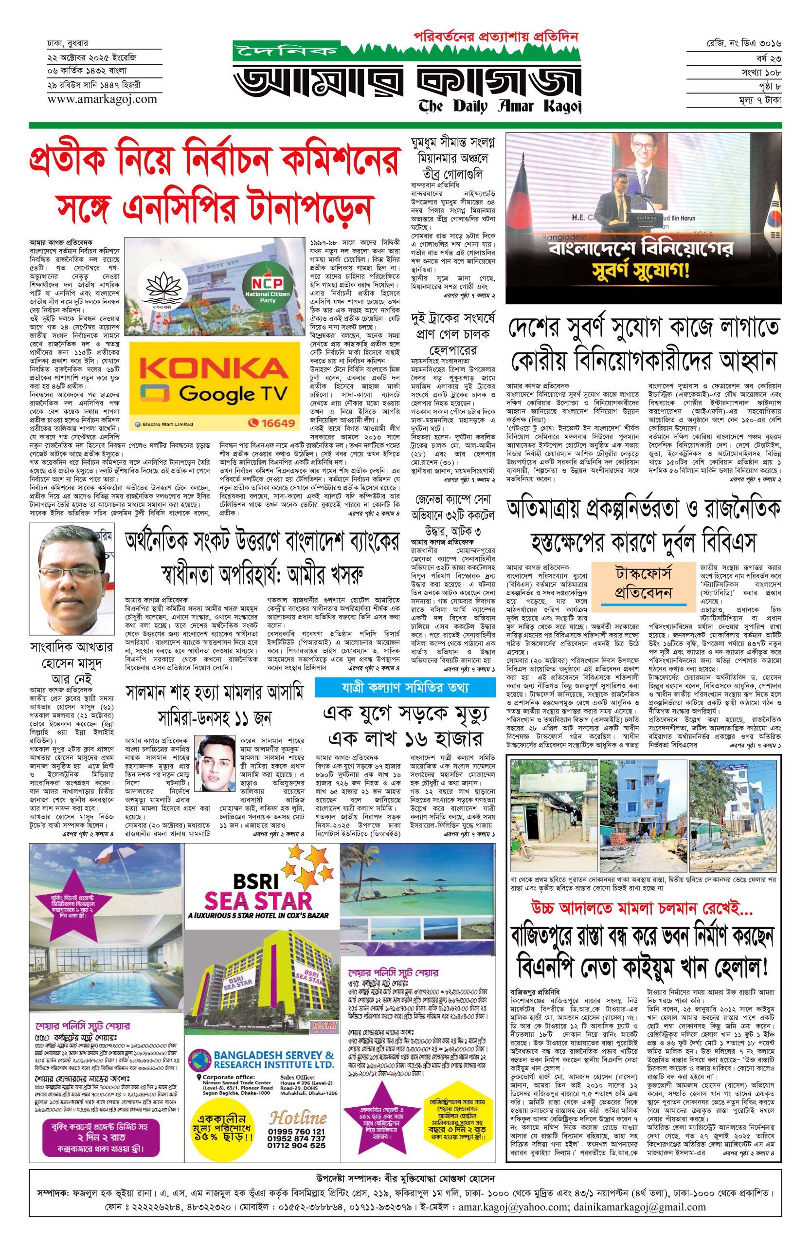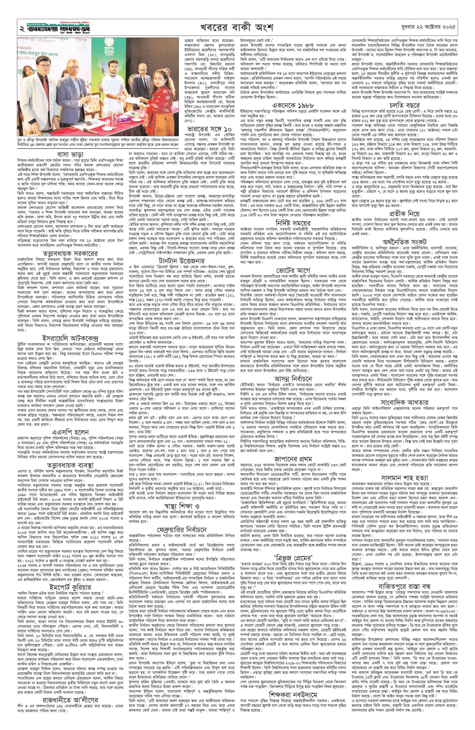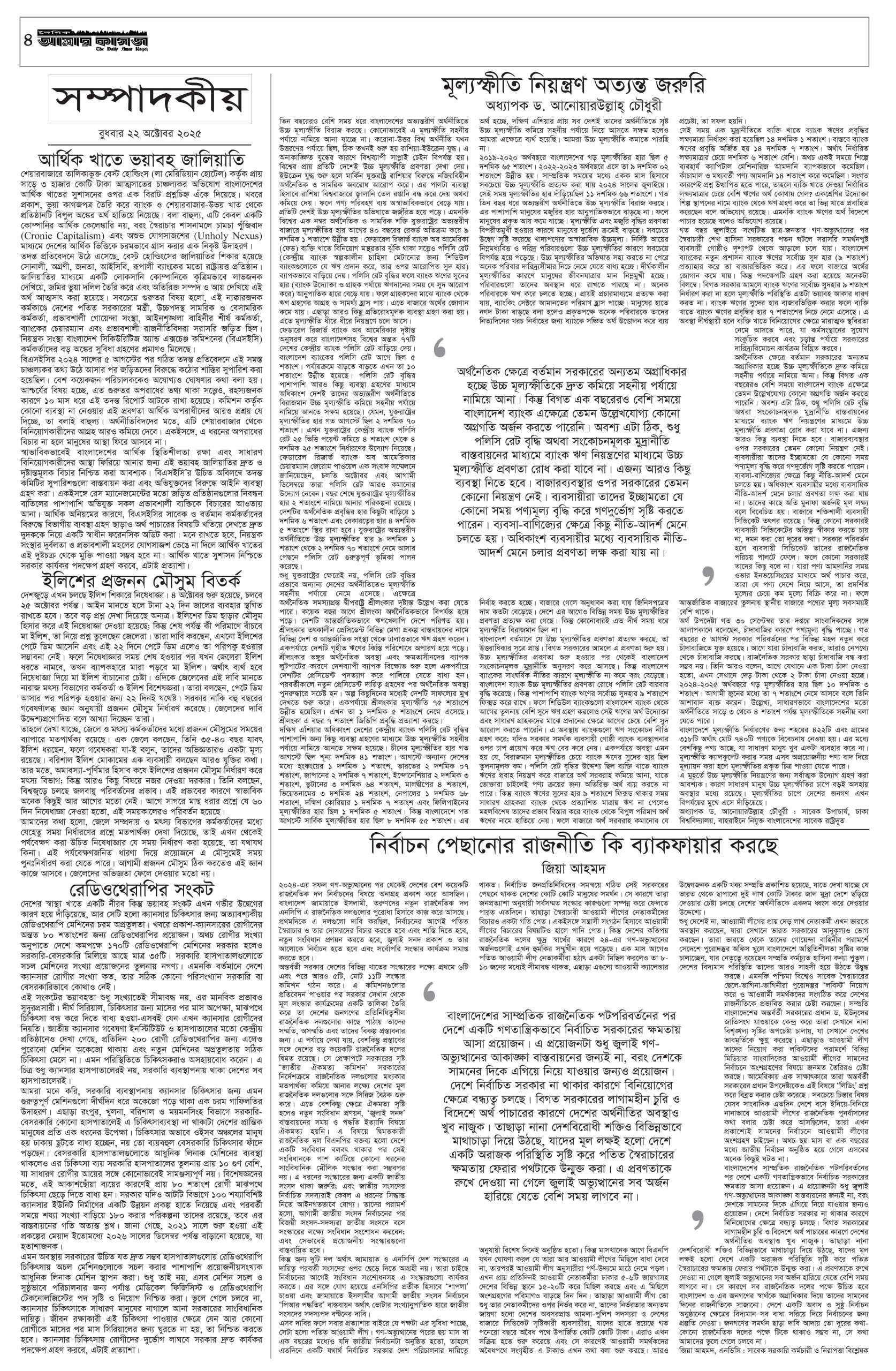 ই পেপার প্রধান সংবাদ সর্বশেষ দৈনিক আমার কাগজ ই-পেপার (বুধবার, ২২ অক্টোবর ২০২৫) Faruk Hossain October 22, 2025 1:28 AM Continue Reading Previous: টিসিএম সাশ্রয়ী, কার্যকর ও মানবিক’: ঢাকায় সেমিনারে চীনা বিশেষজ্ঞদের মতামতNext: সাবেক–বর্তমান সেনা কর্মকর্তাদের নেওয়া হলো আন্তর্জাতিক অপরাধ ট্রাইব্যুনালে Leave a Reply Cancel replyYour email address will not be published. Required fields are marked *Comment * Name * Email * Website Save my name, email, and website in this browser for the next time I comment. Related Stories বিমানের এমডি সাফিকুরের নিয়োগ বাতিল, নতুন দায়িত্বে হুমায়রা প্রধান সংবাদ বিমানের এমডি সাফিকুরের নিয়োগ বাতিল, নতুন দায়িত্বে হুমায়রা February 4, 2026 12:11 AM নির্বাচন না হওয়ার কোনো সুযোগ নেই : সেনাপ্রধান 1 min read জাতীয় নির্বাচন না হওয়ার কোনো সুযোগ নেই : সেনাপ্রধান February 3, 2026 10:13 PM ঢাকা-চট্টগ্রামে ভূকম্পন অনুভূত জাতীয় ঢাকা-চট্টগ্রামে ভূকম্পন অনুভূত February 3, 2026 10:11 PM