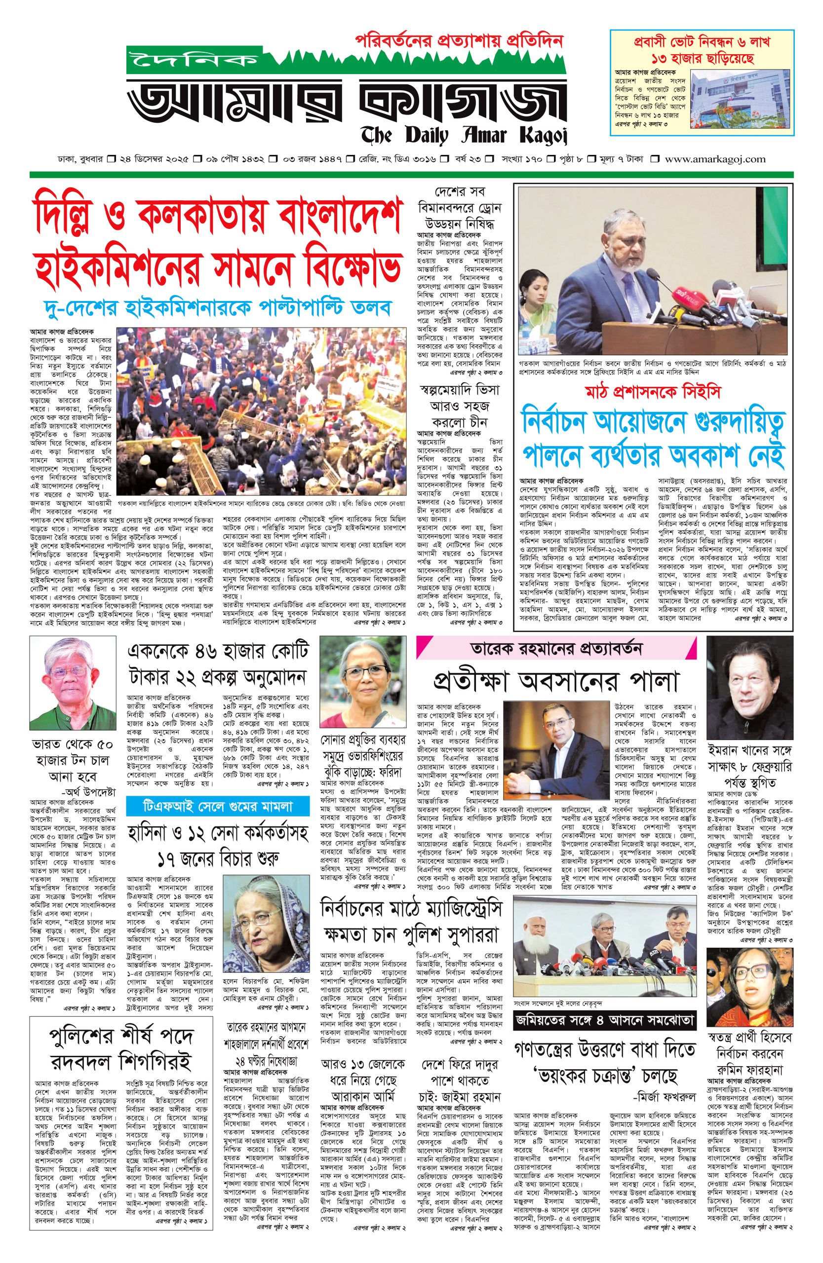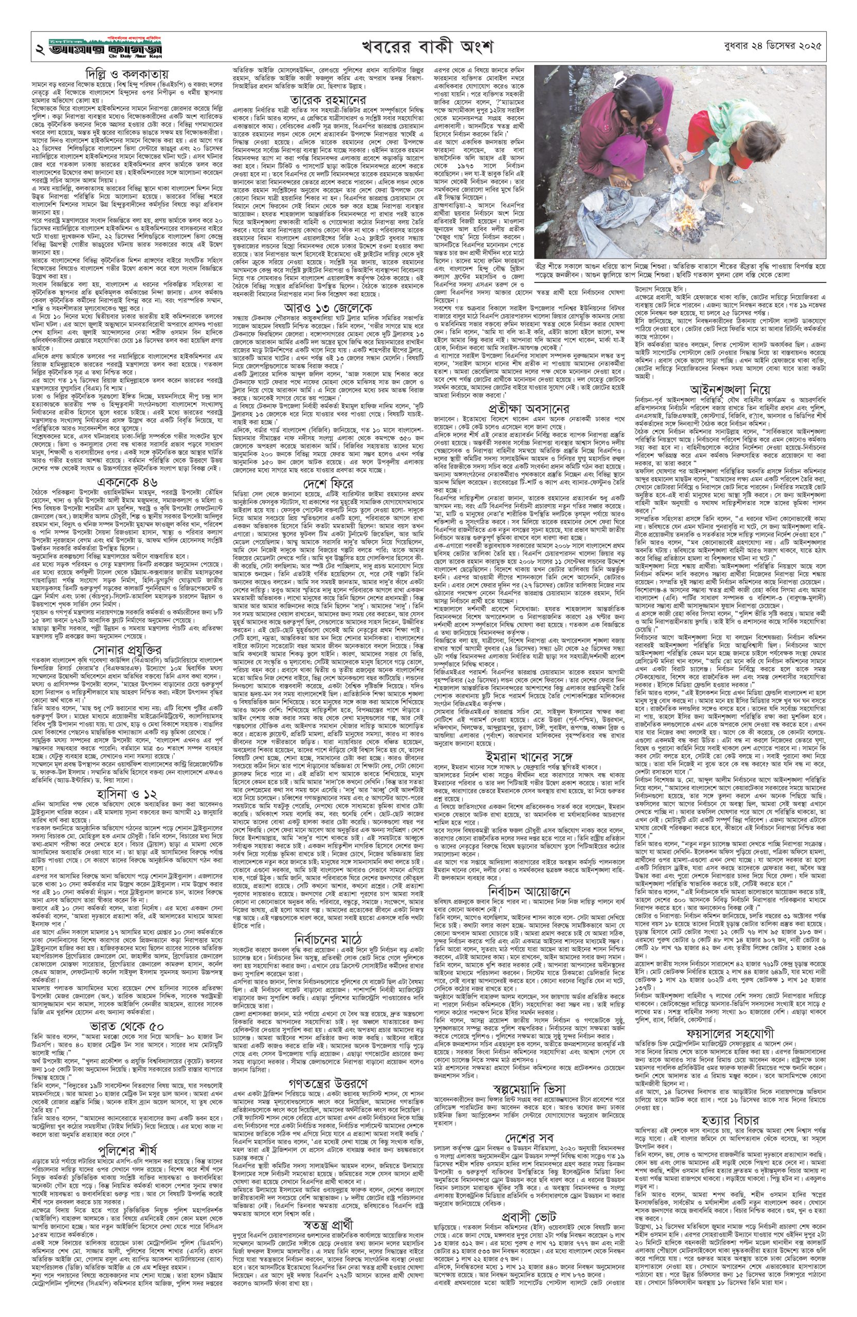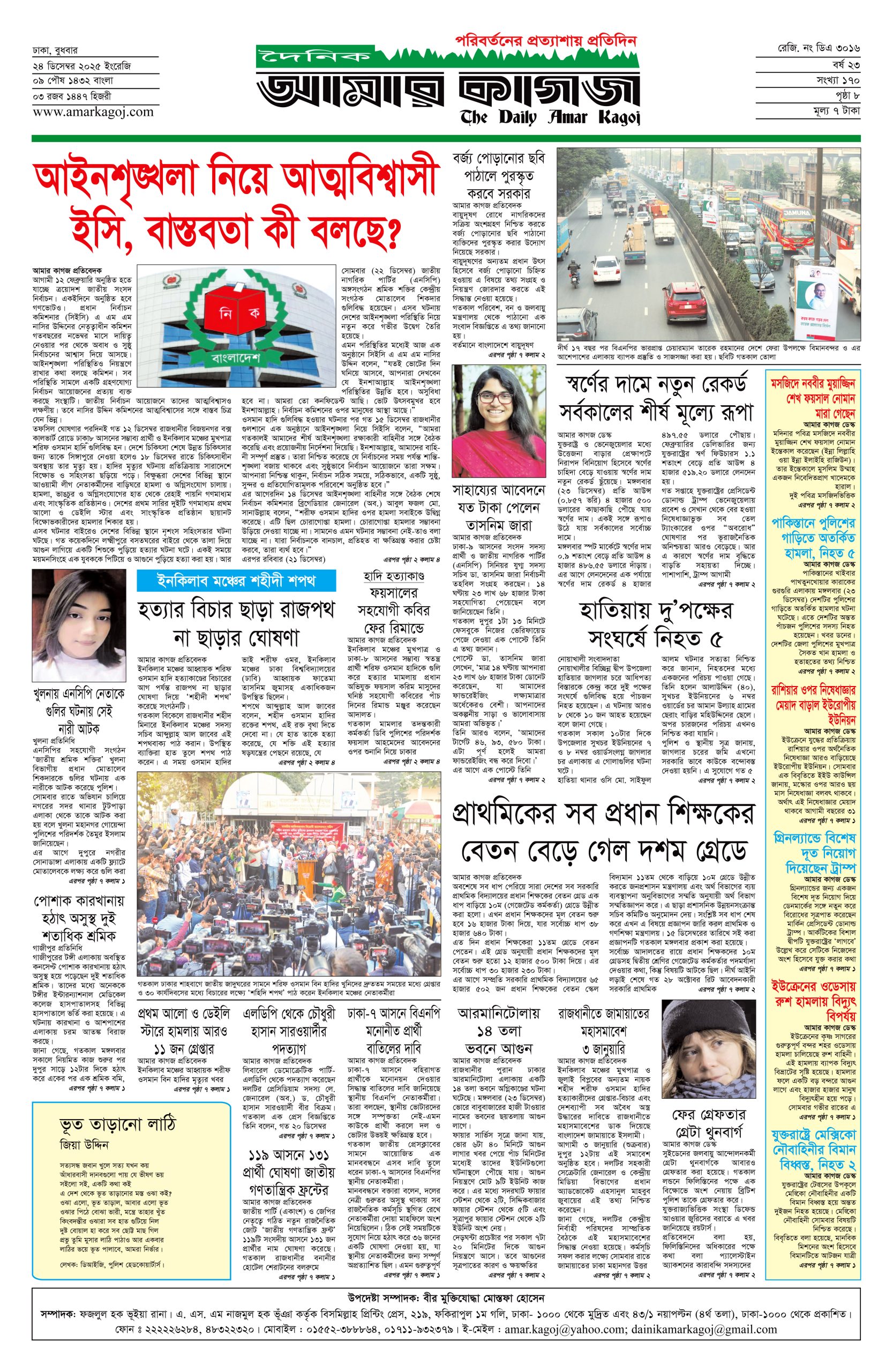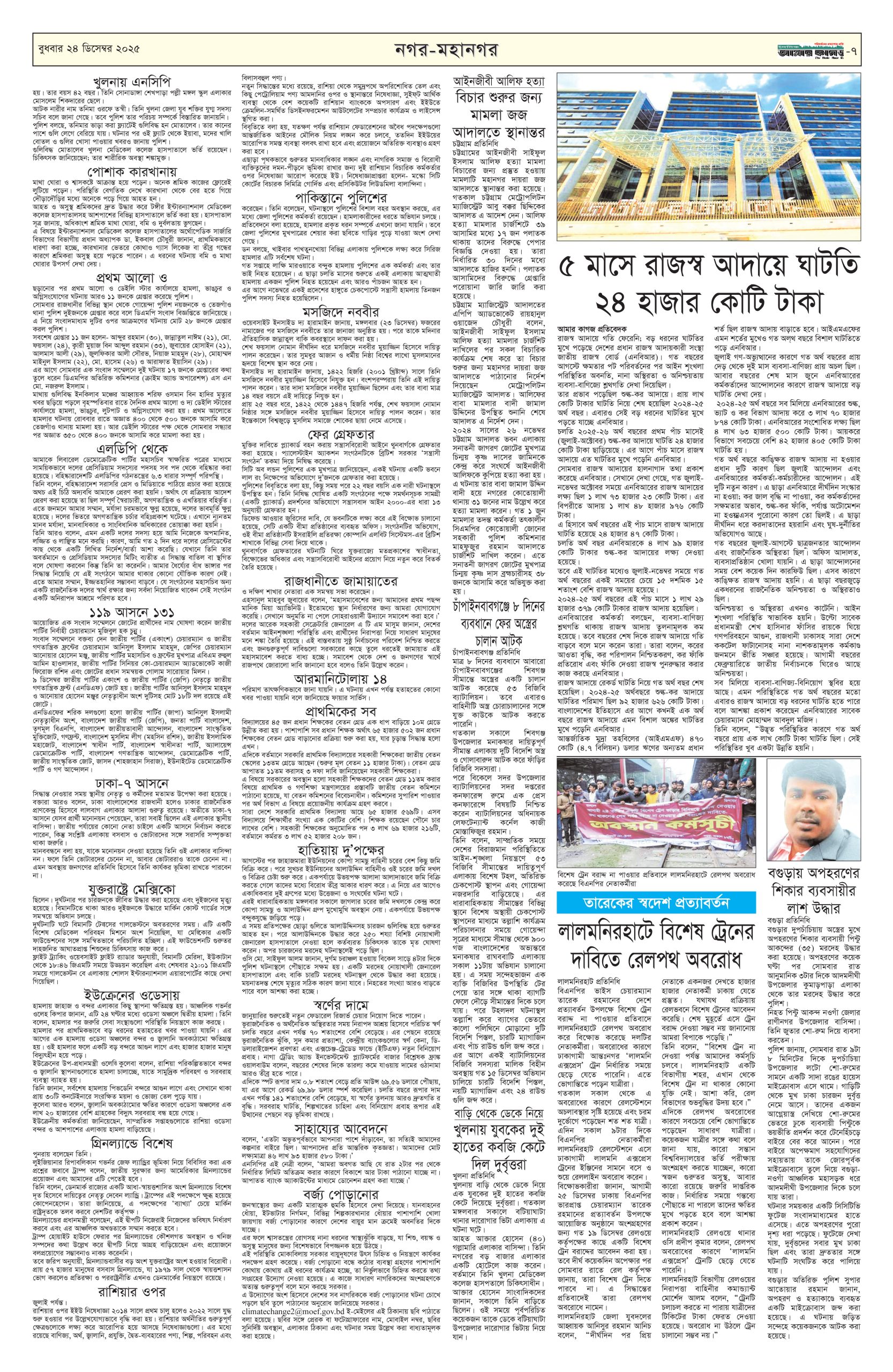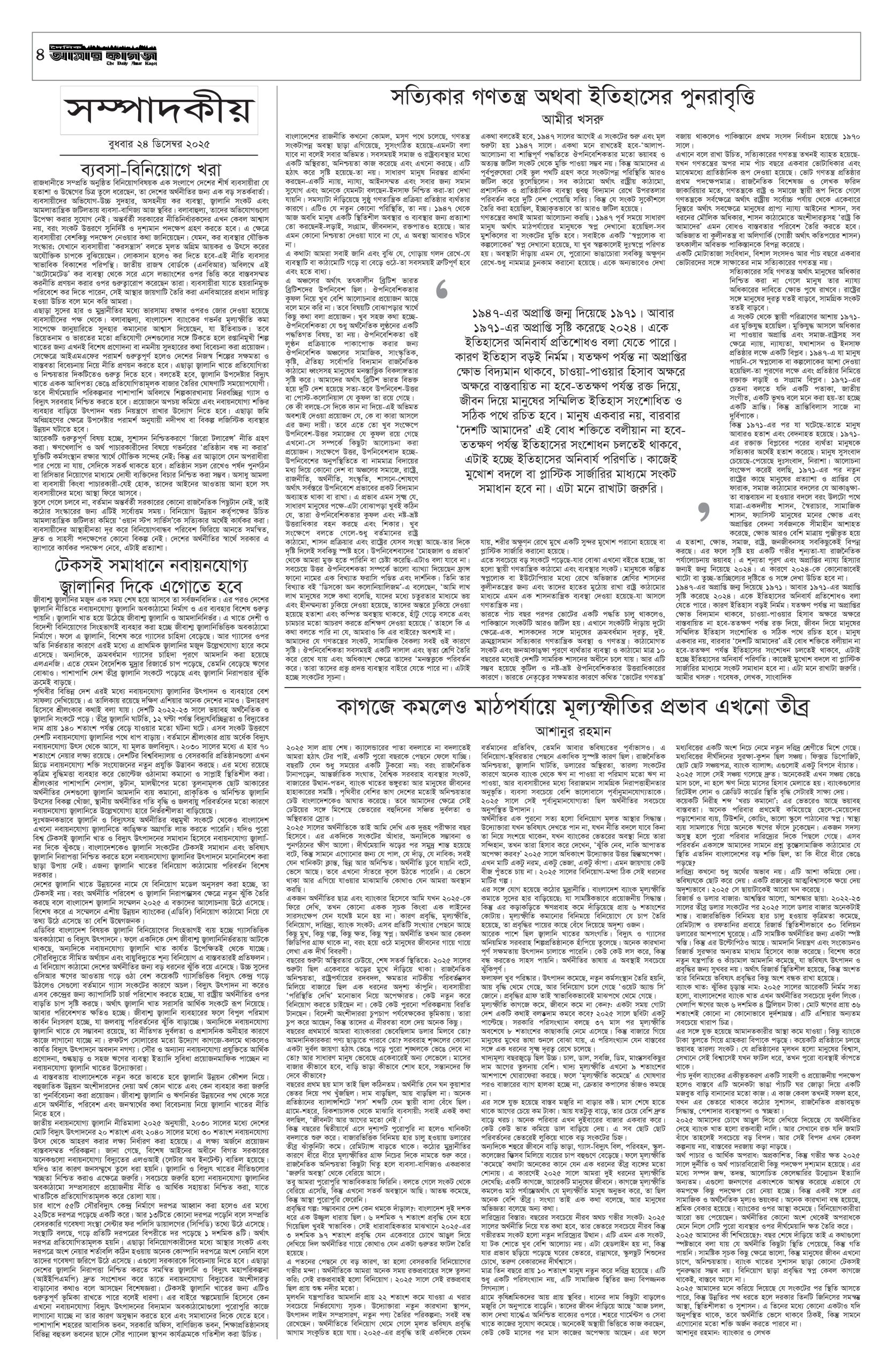 ই পেপার প্রধান সংবাদ সর্বশেষ দৈনিক আমার কাগজ ই-পেপার (বুধবার, ২৪ ডিসেম্বর ২০২৫) Faruk Hossain December 24, 2025 8:51 AM Continue Reading Previous: নারী ফুটবলে অশুভ হাত, কর্মকর্তাদের মধ্যে সম্পর্কের ফাটলNext: লিবিয়ার সেনাপ্রধান তুরস্কের রাজধানীর কাছে বিমান দুর্ঘটনায় নিহত Leave a Reply Cancel replyYour email address will not be published. Required fields are marked *Comment * Name * Email * Website Save my name, email, and website in this browser for the next time I comment. Related Stories সোমবার যশোর যাচ্ছেন তারেক রহমান 1 min read প্রধান সংবাদ সোমবার যশোর যাচ্ছেন তারেক রহমান February 1, 2026 11:34 AM পাকিস্তানের ১২ শহরে অতর্কিত হামলা, ৮০ সেনা নিহত 1 min read আন্তর্জাতিক পাকিস্তানের ১২ শহরে অতর্কিত হামলা, ৮০ সেনা নিহত February 1, 2026 11:22 AM কুমিল্লার তিন গম্বুজের ফাতেহ খাঁ জামে মসজিদ 1 min read দেশজুড়ে কুমিল্লার তিন গম্বুজের ফাতেহ খাঁ জামে মসজিদ February 1, 2026 11:18 AM