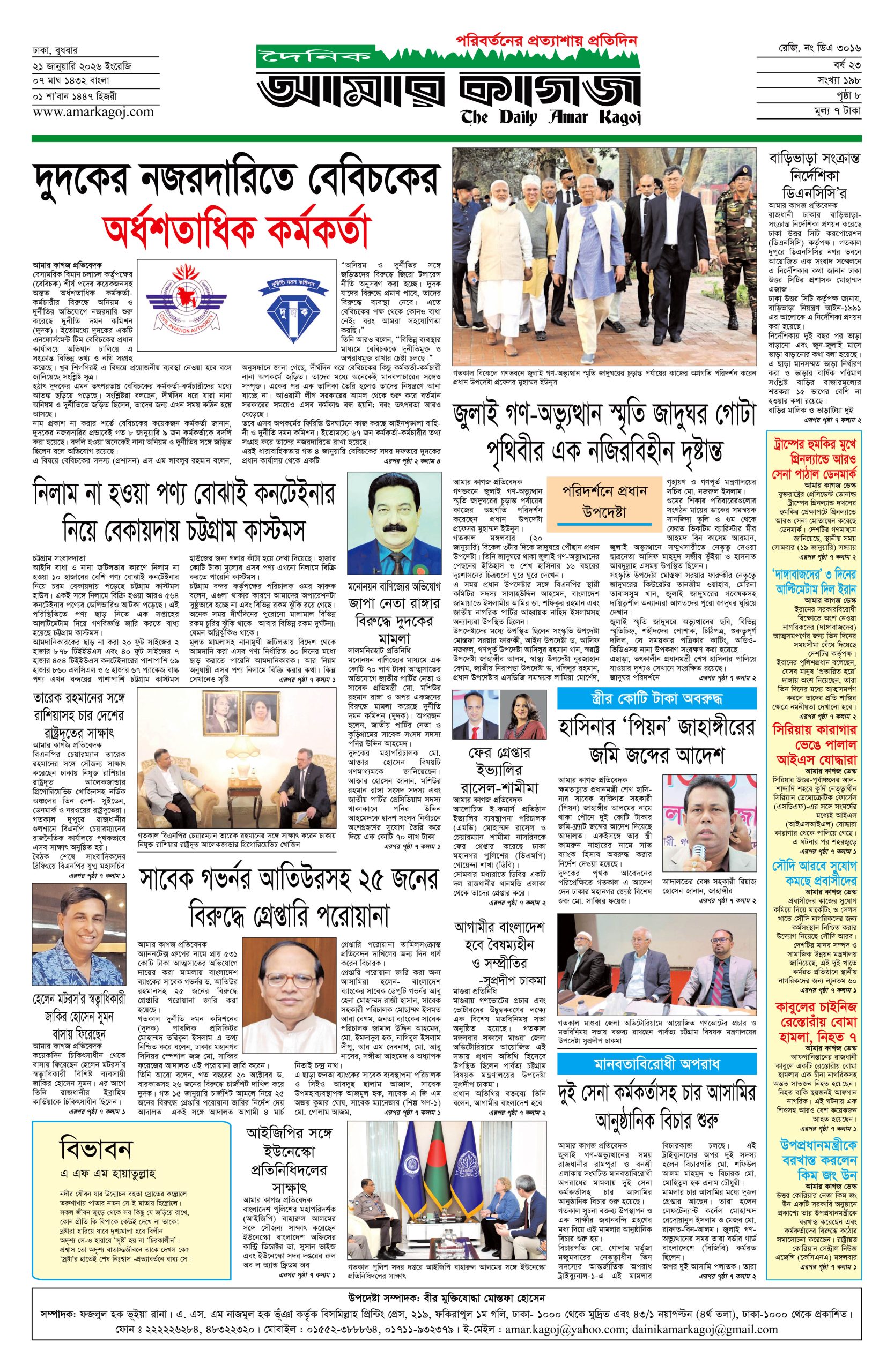 ই পেপার প্রধান সংবাদ সর্বশেষ দৈনিক আমার কাগজ ই-পেপার (বুধবার, ২১ জানুয়ারি ২০২৬) Faruk Hossain January 21, 2026 9:09 AM Continue Reading Previous: চীনের দারিদ্র্য বিমোচন অভিজ্ঞতা থেকে শিক্ষা নিতে চায় আফ্রিকাNext: বাংলাদেশ থেকে কূটনীতিক পরিবারের সদস্যদের ফিরিয়ে নিচ্ছে ভারত Leave a Reply Cancel replyYour email address will not be published. Required fields are marked *Comment * Name * Email * Website Save my name, email, and website in this browser for the next time I comment. Related Stories সম্প্রীতির বন্ধনে দুর্নীতিমুক্ত বাংলাদেশ গড়ার আহ্বান পার্বত্যমন্ত্রীর 1 min read জাতীয় সম্প্রীতির বন্ধনে দুর্নীতিমুক্ত বাংলাদেশ গড়ার আহ্বান পার্বত্যমন্ত্রীর March 25, 2026 3:39 PM ১৮তম অ্যাটর্নি জেনারেল ব্যারিস্টার রুহুল কুদ্দুস কাজল আইন আদালত ১৮তম অ্যাটর্নি জেনারেল ব্যারিস্টার রুহুল কুদ্দুস কাজল March 25, 2026 3:37 PM জ্বালানির দাম বাড়ানোর পরিকল্পনা নেই: তথ্যমন্ত্রী জাতীয় জ্বালানির দাম বাড়ানোর পরিকল্পনা নেই: তথ্যমন্ত্রী March 25, 2026 1:57 PM