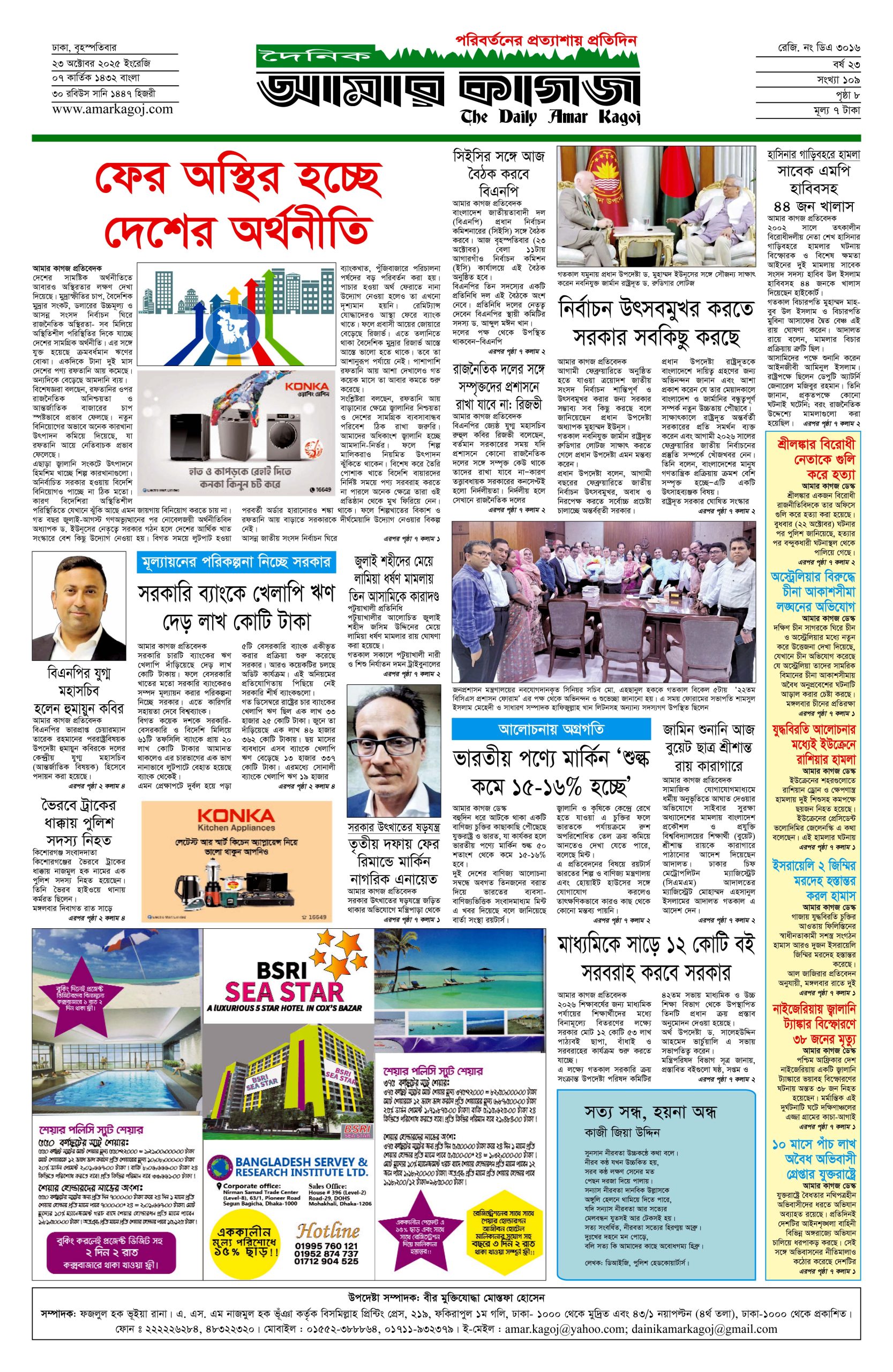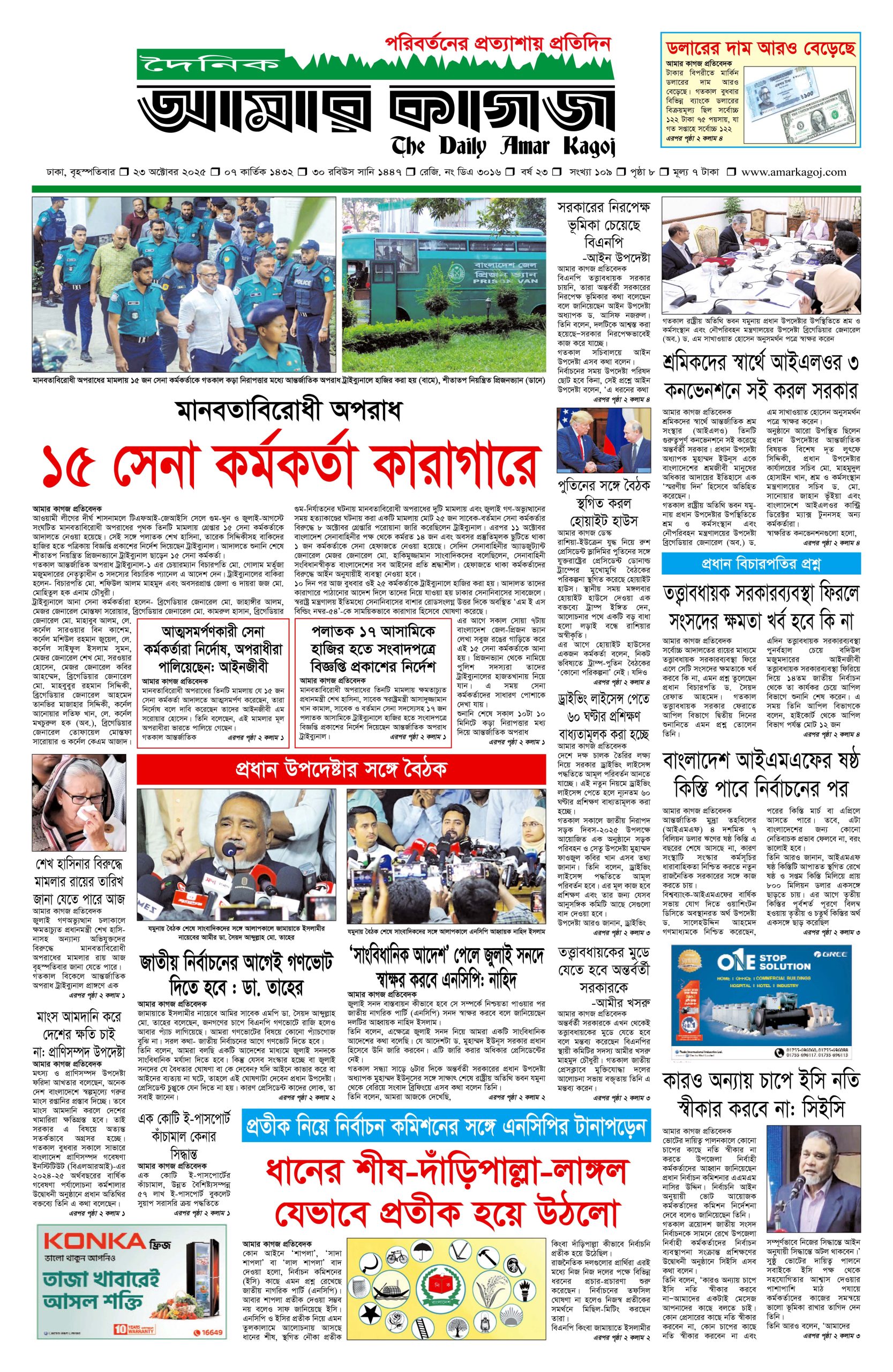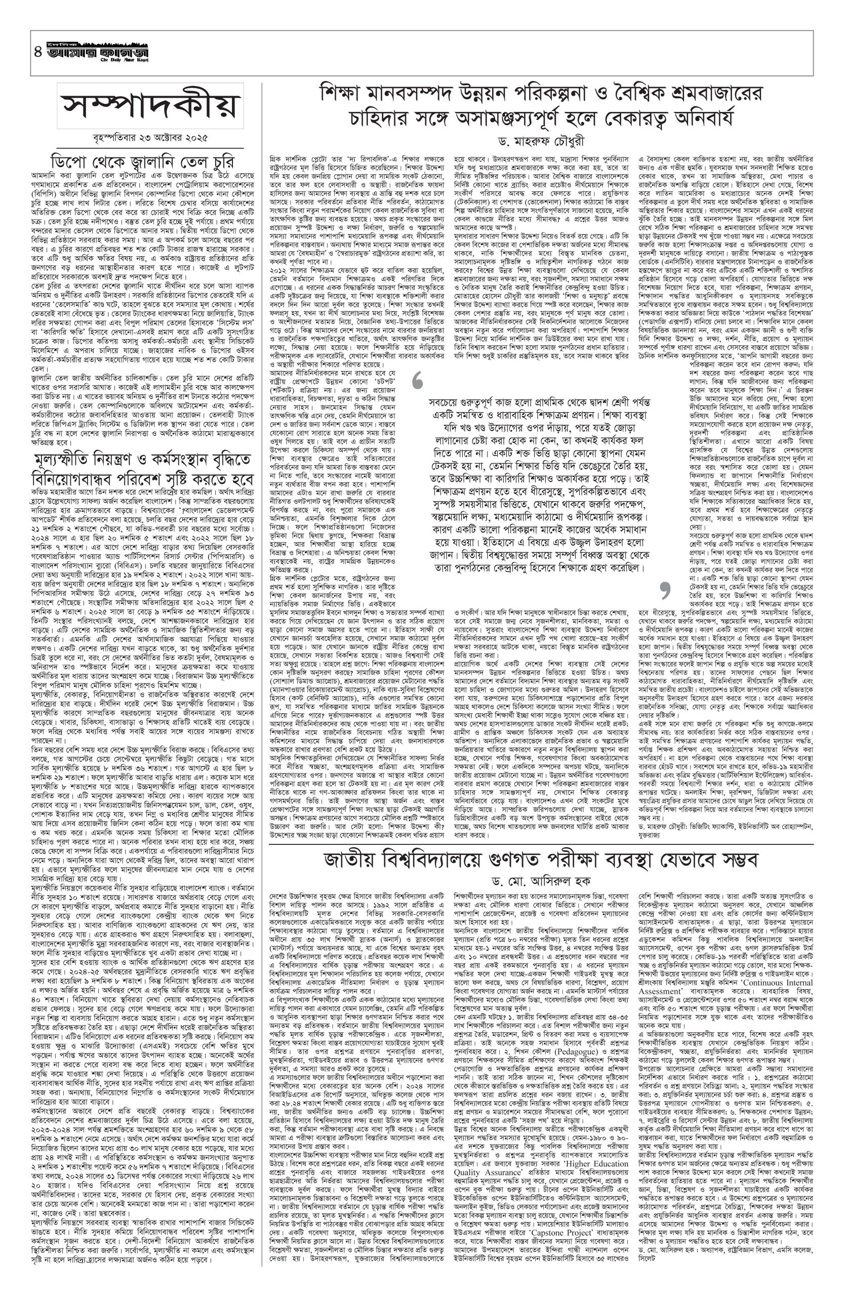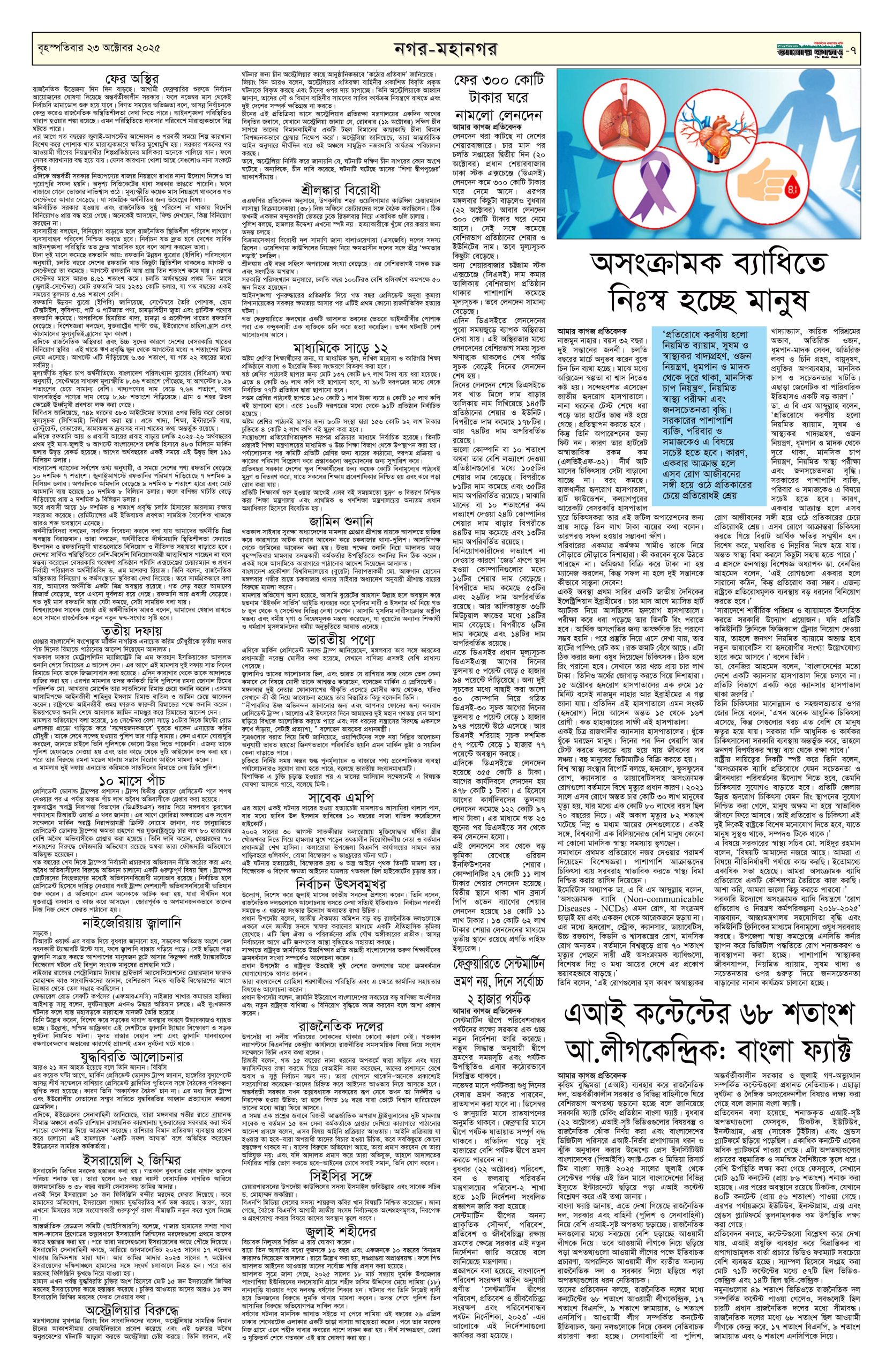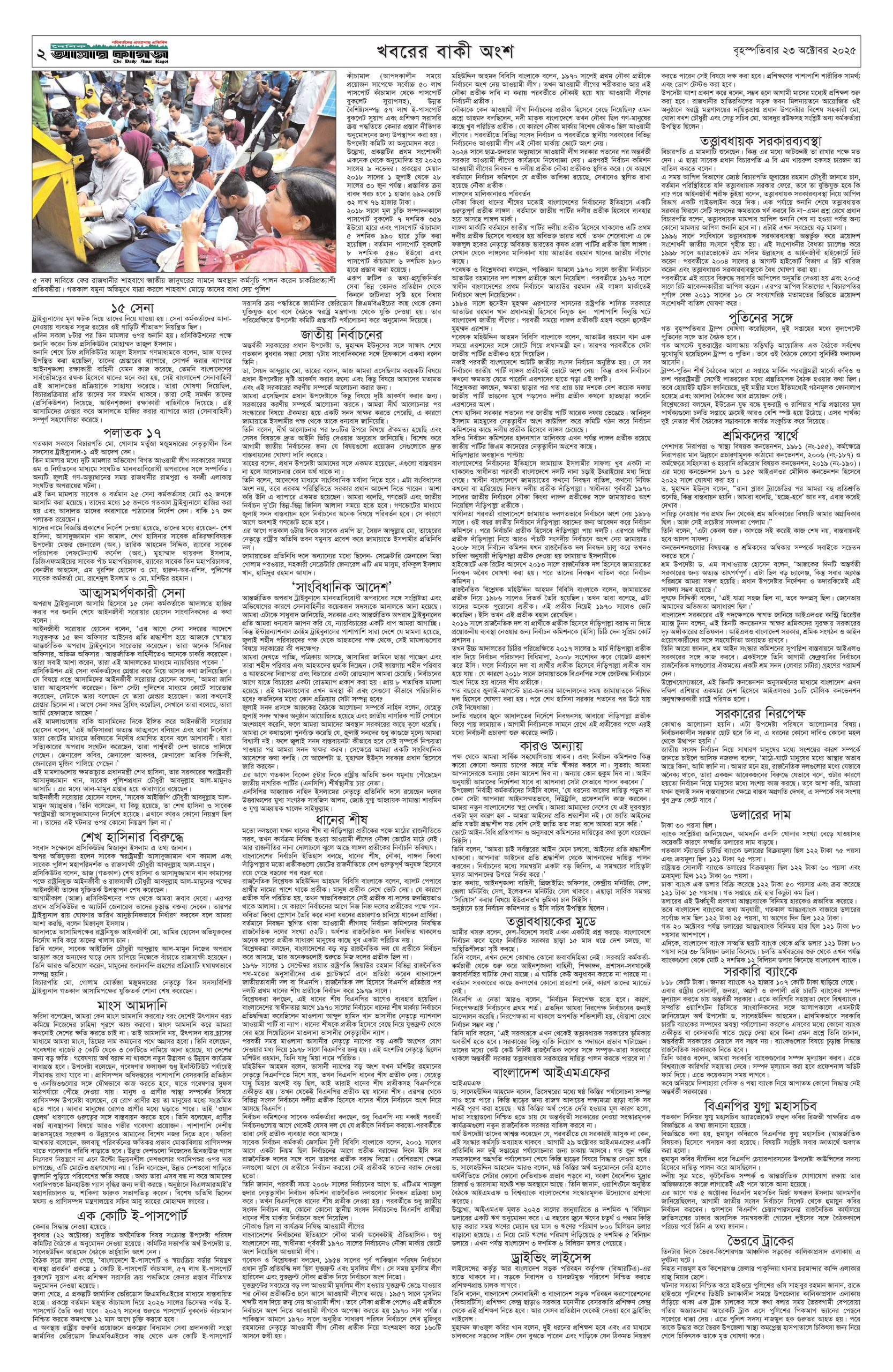 ই পেপার প্রধান সংবাদ সর্বশেষ দৈনিক আমার কাগজ ই-পেপার (বৃহস্পতিবার, ২৩ অক্টোবর ২০২৫) Faruk Hossain October 23, 2025 9:39 AM Continue Reading Previous: শিবচরে জমি নিয়ে বিরোধ: একই পরিবারের তিনজনকে কুপিয়ে জখমNext: ইসরায়েলি পার্লামেন্টে পশ্চিম তীর আনুষ্ঠানিকভাবে দখলের বিল পাস Leave a Reply Cancel replyYour email address will not be published. Required fields are marked *Comment * Name * Email * Website Save my name, email, and website in this browser for the next time I comment. Related Stories সুর, আলো ও আবেগে প্রাণবন্ত বসন্ত উৎসব গালার প্রস্তুতি 1 min read অন্যান্য সুর, আলো ও আবেগে প্রাণবন্ত বসন্ত উৎসব গালার প্রস্তুতি February 1, 2026 6:10 PM সোমবার যশোর যাচ্ছেন তারেক রহমান 1 min read প্রধান সংবাদ সোমবার যশোর যাচ্ছেন তারেক রহমান February 1, 2026 11:34 AM পাকিস্তানের ১২ শহরে অতর্কিত হামলা, ৮০ সেনা নিহত 1 min read আন্তর্জাতিক পাকিস্তানের ১২ শহরে অতর্কিত হামলা, ৮০ সেনা নিহত February 1, 2026 11:22 AM
