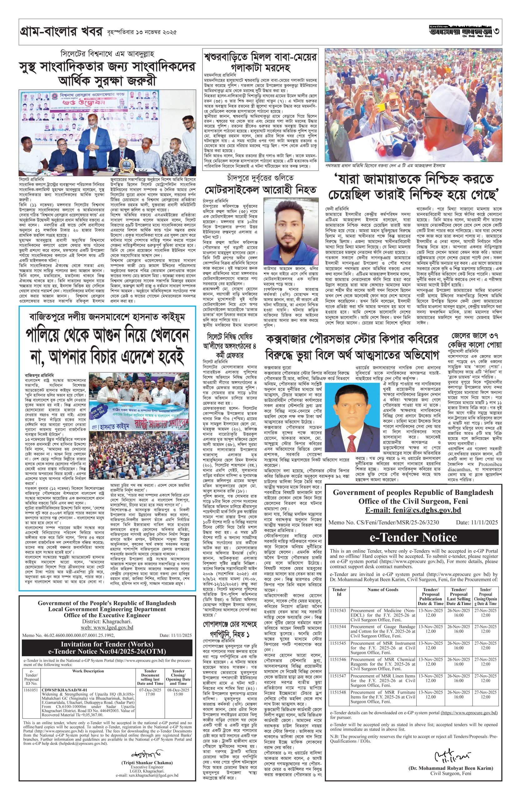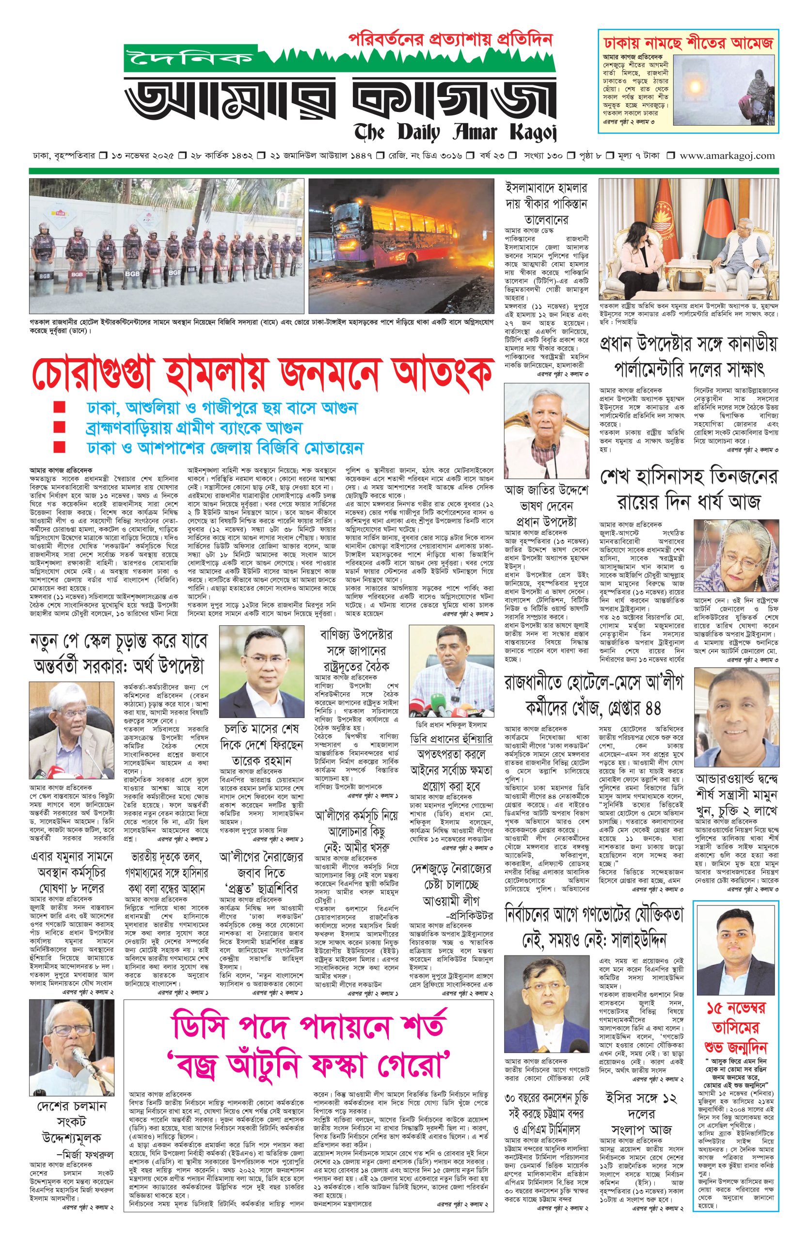 ই পেপার প্রধান সংবাদ সর্বশেষ দৈনিক আমার কাগজ ই-পেপার (বৃহস্পতিবার, ১৩ নভেম্বর ২০২৫) Faruk Hossain November 13, 2025 1:26 AM Continue Reading Previous: সাবেক শিক্ষামন্ত্রী মহিবুলের বাসায় অভিযান, আটক ৭Next: ভারতীয় দূতকে তলব, গণমাধ্যমে শেখ হাসিনার কথা বলা অবিলম্বে বন্ধের আহ্বান Leave a Reply Cancel replyYour email address will not be published. Required fields are marked *Comment * Name * Email * Website Save my name, email, and website in this browser for the next time I comment. Related Stories দেশকে আফগানিস্তান বানাতে চায় জামায়াত : মির্জা ফখরুল প্রধান সংবাদ দেশকে আফগানিস্তান বানাতে চায় জামায়াত : মির্জা ফখরুল February 2, 2026 1:12 PM বাংলাদেশের সংখ্যালঘুরা কেন আতঙ্কিত জাতীয় বাংলাদেশের সংখ্যালঘুরা কেন আতঙ্কিত February 2, 2026 1:02 PM স্বর্ণের দামে বড় পতন, ভরিতে কমলো কত 1 min read অর্থনীতি স্বর্ণের দামে বড় পতন, ভরিতে কমলো কত February 2, 2026 11:53 AM