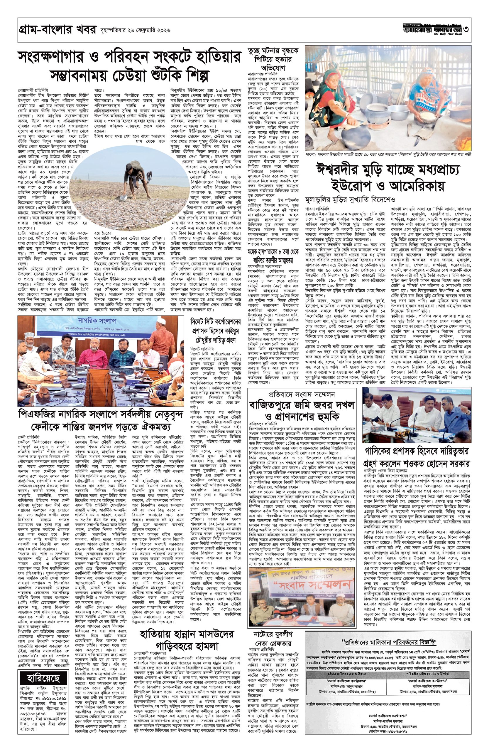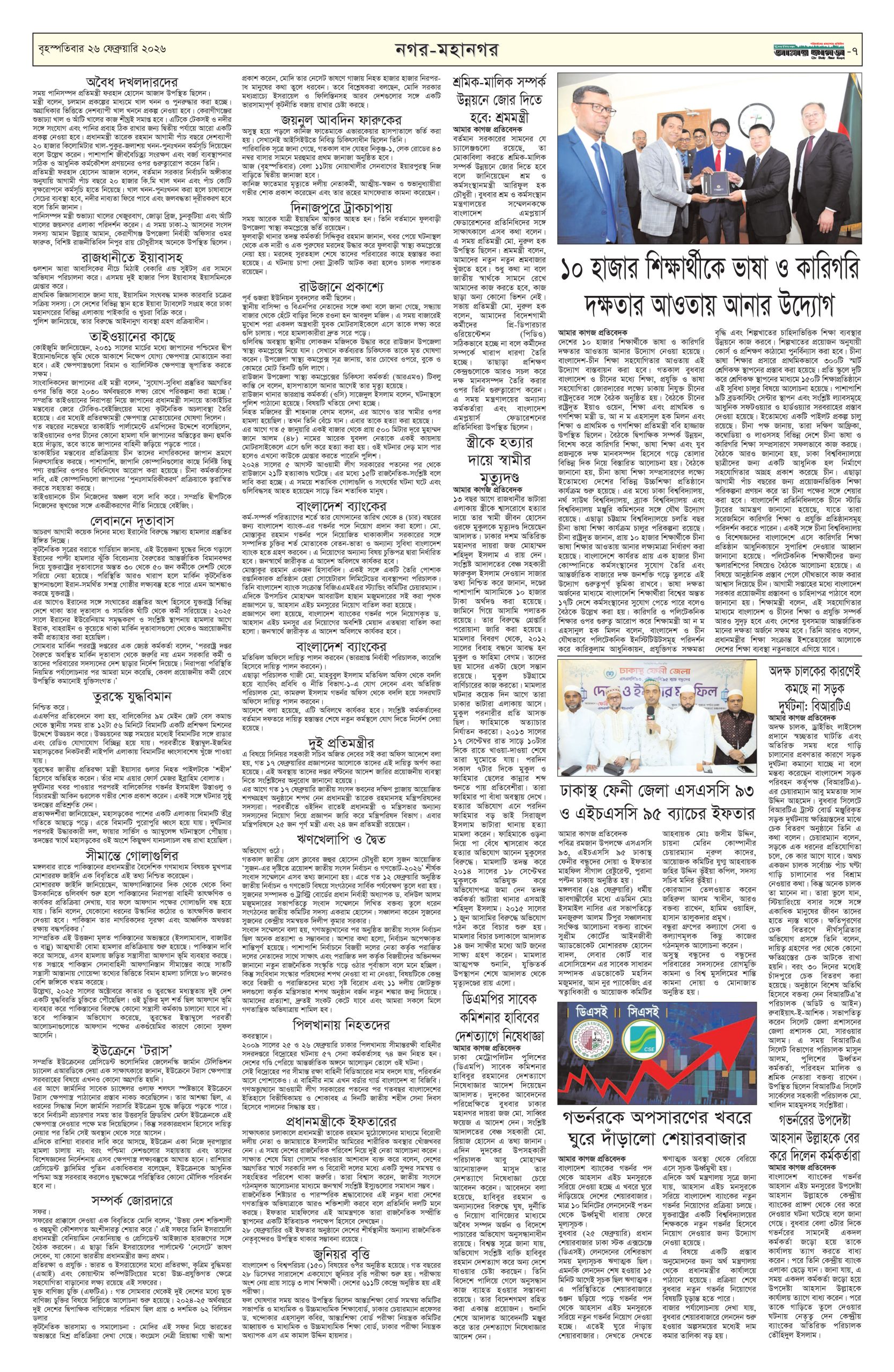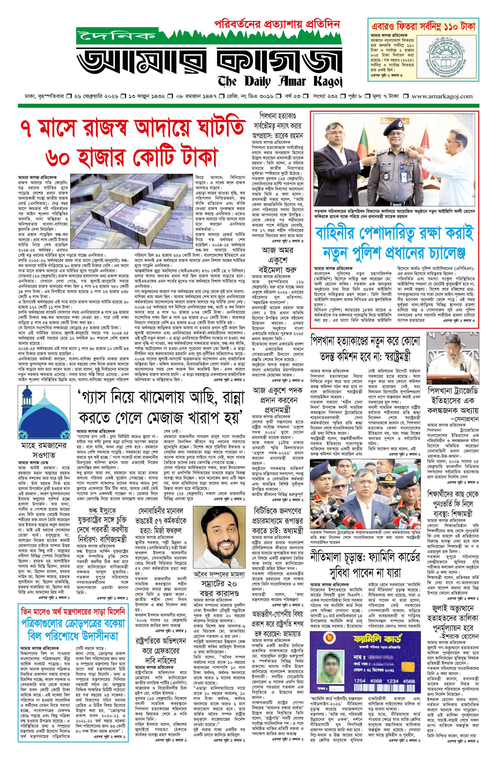 ই পেপার প্রধান সংবাদ সর্বশেষ দৈনিক আমার কাগজ ই-পেপার (বৃহস্পতিবার, ২৬ ফেব্রুয়ারি ২০২৬) Faruk Hossain February 26, 2026 9:59 AM Continue Reading Previous: বাংলাদেশ ব্যাংকের নতুন গভর্নর মোস্তাকুর রহমানকে নিয়োগNext: আজ অমর একুশে বইমেলা উদ্বোধন করবেন প্রধানমন্ত্রী Leave a Reply Cancel replyYour email address will not be published. Required fields are marked *Comment * Name * Email * Website Save my name, email, and website in this browser for the next time I comment. Related Stories শীর্ষ ব্যবসায়ীদের সঙ্গে বৈঠকে বসছেন প্রধানমন্ত্রী, গঠিত হচ্ছে ‘বেসরকারি খাত উপদেষ্টা পরিষদ’ জাতীয় শীর্ষ ব্যবসায়ীদের সঙ্গে বৈঠকে বসছেন প্রধানমন্ত্রী, গঠিত হচ্ছে ‘বেসরকারি খাত উপদেষ্টা পরিষদ’ April 4, 2026 10:22 AM আজ খোলা প্রাথমিক বিদ্যালয়, সামনের ৯ শনিবারও সাপ্তাহিক ছুটি বাতিল দেশজুড়ে আজ খোলা প্রাথমিক বিদ্যালয়, সামনের ৯ শনিবারও সাপ্তাহিক ছুটি বাতিল April 4, 2026 10:15 AM বায়তুল মোকাররমে ১১ দলীয় ঐক্য জোটের বিক্ষোভ মিছিল আজ প্রধান সংবাদ বায়তুল মোকাররমে ১১ দলীয় ঐক্য জোটের বিক্ষোভ মিছিল আজ April 4, 2026 10:00 AM
