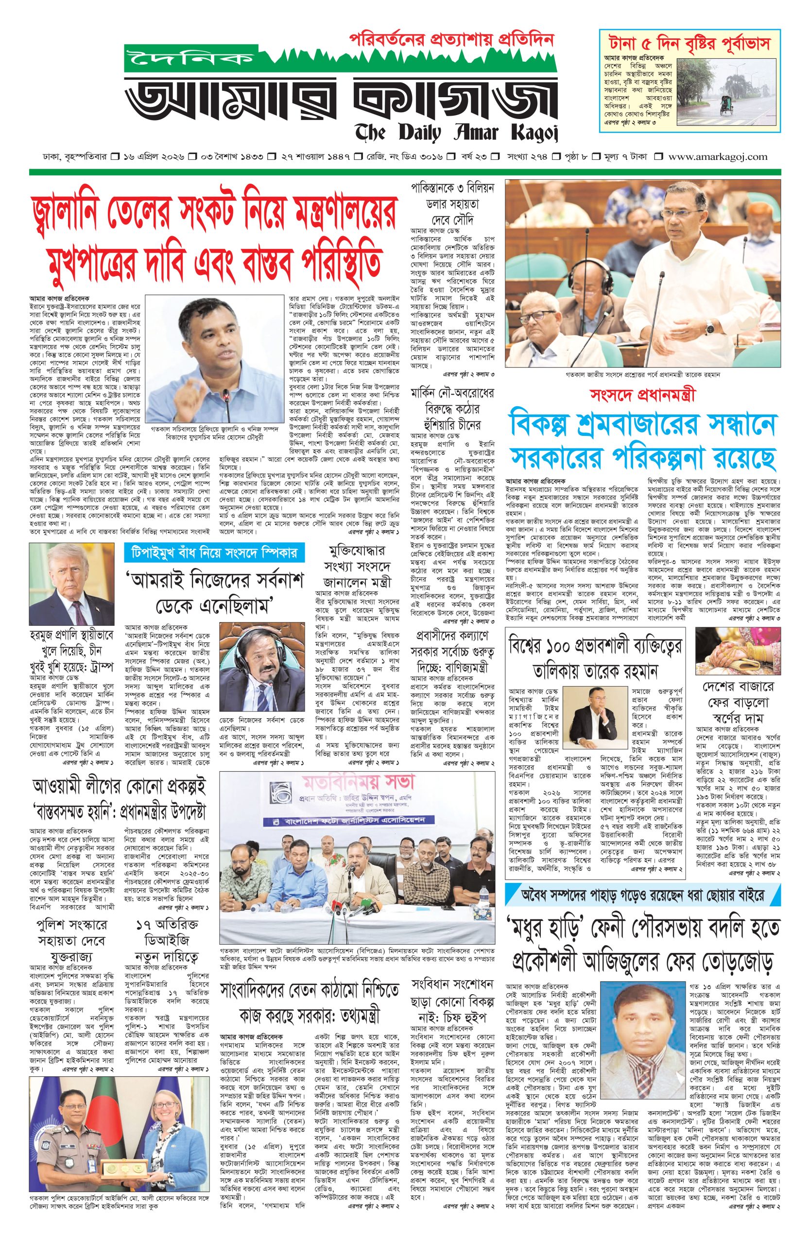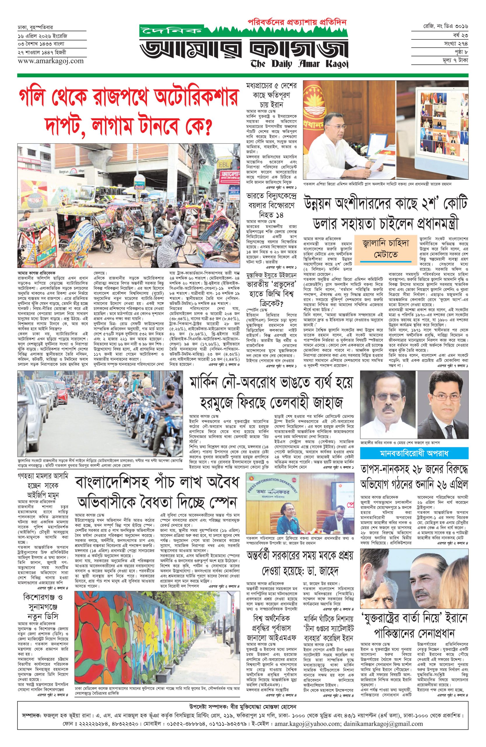 ই পেপার প্রধান সংবাদ সর্বশেষ দৈনিক আমার কাগজ ই-পেপার (বৃহস্পতিবার, ১৬ এপ্রিল ২০২৬) Faruk Hossain April 16, 2026 8:59 AM Continue Reading Previous: মধ্যপ্রাচ্যে শান্তি প্রতিষ্ঠায় চীনের চার দফা প্রস্তাবNext: ইরান-যুক্তরাষ্ট্র ইস্যুতে জেদ্দায় সৌদি-পাকিস্তানের বৈঠক Leave a Reply Cancel replyYour email address will not be published. Required fields are marked *Comment * Name * Email * Website Save my name, email, and website in this browser for the next time I comment. Related Stories মাদক, সন্ত্রাস ও দুর্নীতির বিরুদ্ধে সরকারের অবস্থান ‘জিরো টলারেন্স’: পার্বত্য চট্টগ্রাম বিষয়ক মন্ত্রী প্রধান সংবাদ মাদক, সন্ত্রাস ও দুর্নীতির বিরুদ্ধে সরকারের অবস্থান ‘জিরো টলারেন্স’: পার্বত্য চট্টগ্রাম বিষয়ক মন্ত্রী April 16, 2026 10:14 AM ফেনীতে প্রশাসনের অনুমোদন নিয়ে ‘মানহীন পণ্যের’ হস্তশিল্প মেলা 1 min read দেশজুড়ে ফেনীতে প্রশাসনের অনুমোদন নিয়ে ‘মানহীন পণ্যের’ হস্তশিল্প মেলা April 16, 2026 10:09 AM আজ স্বাধীনতা পদক হস্তান্তর করবেন প্রধানমন্ত্রী 1 min read জাতীয় আজ স্বাধীনতা পদক হস্তান্তর করবেন প্রধানমন্ত্রী April 16, 2026 9:53 AM
