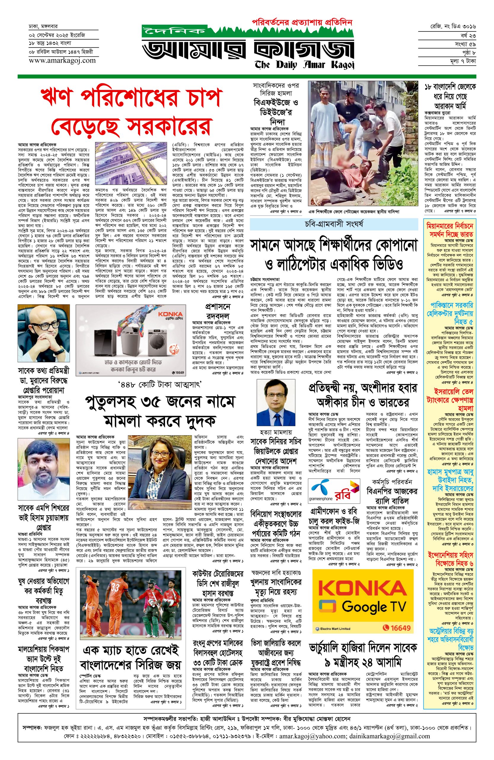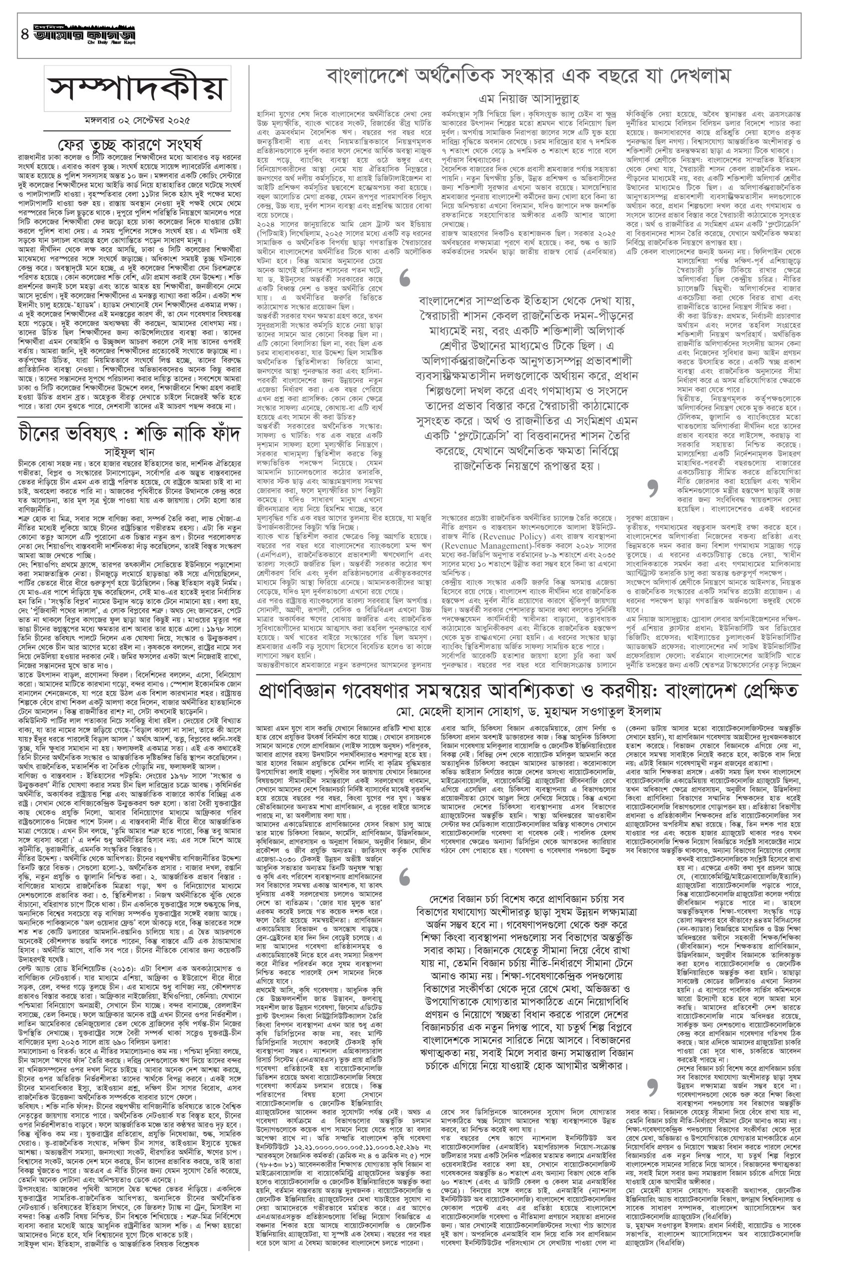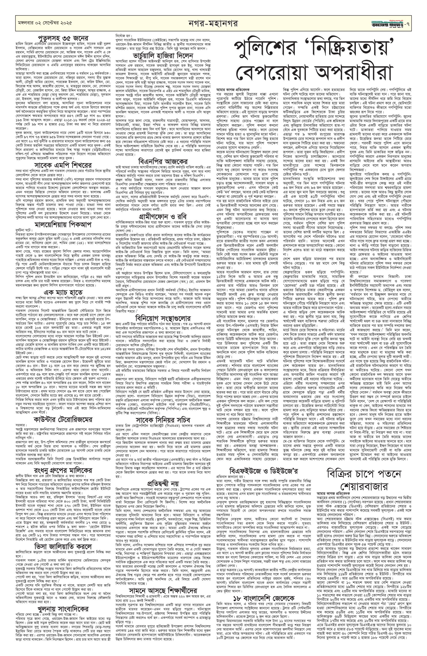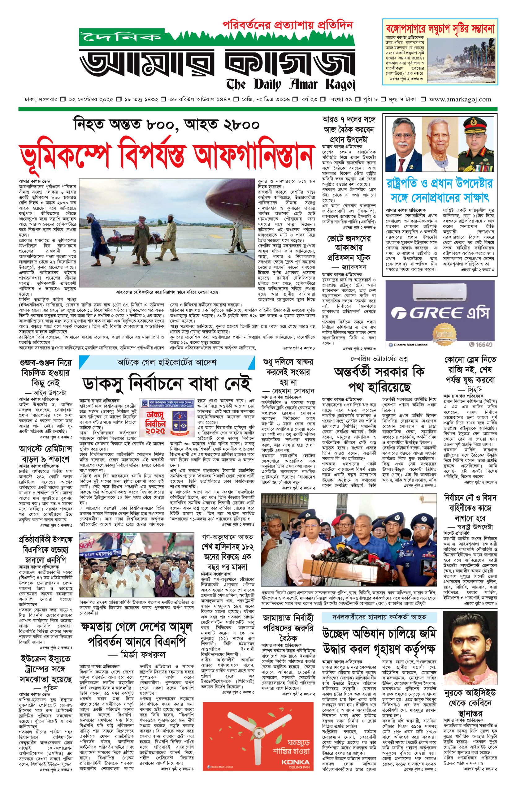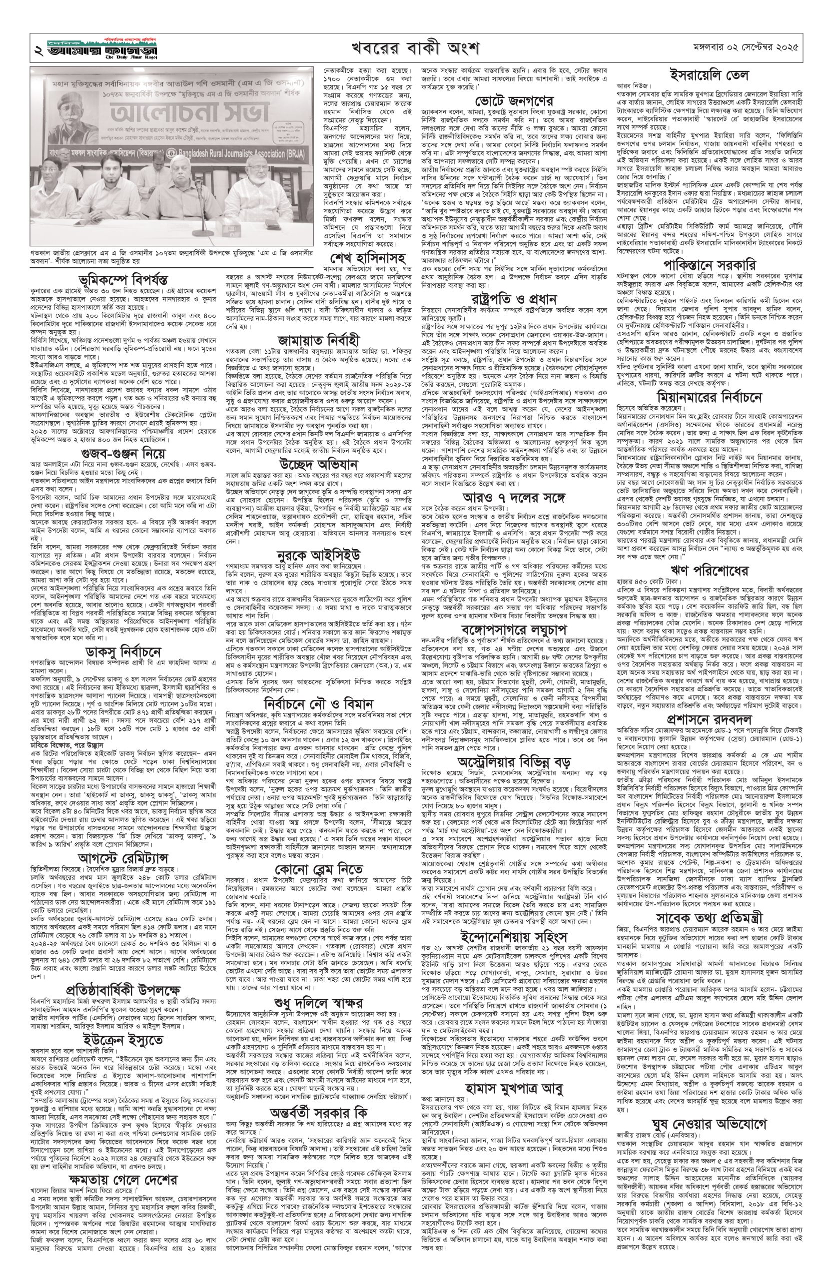 ই পেপার প্রধান সংবাদ সর্বশেষ দৈনিক আমার কাগজ ই-পেপার (মঙ্গলবার, ০২ সেপ্টেম্বর ২০২৫) Faruk Hossain September 2, 2025 9:59 AM Continue Reading Previous: জিএমপি কমিশনার নাজমুলকে দায়িত্ব থেকে সরিয়ে পুলিশ হেডকোয়ার্টার্সেNext: ফিলিস্তিনকে স্বীকৃতি ও ইসরায়েলের ওপর নিষেধাজ্ঞা ঘোষণা করল বেলজিয়াম Leave a Reply Cancel replyYour email address will not be published. Required fields are marked *Comment * Name * Email * Website Save my name, email, and website in this browser for the next time I comment. Related Stories ফেব্রুয়ারিতে নির্বাচন না হলে ভয়ংকর পরিস্থিতি তৈরি হতে পারে: দুদু 1 min read রাজনীতি ফেব্রুয়ারিতে নির্বাচন না হলে ভয়ংকর পরিস্থিতি তৈরি হতে পারে: দুদু October 11, 2025 5:51 PM সাউন্ডগ্রেনেড বিস্ফোরণে জাতীয় পার্টির কর্মী সমাবেশ পণ্ড প্রধান সংবাদ সাউন্ডগ্রেনেড বিস্ফোরণে জাতীয় পার্টির কর্মী সমাবেশ পণ্ড October 11, 2025 5:41 PM নির্বাচনে বড় চ্যালেঞ্জ নিরাপত্তা: সিইসি জাতীয় নির্বাচনে বড় চ্যালেঞ্জ নিরাপত্তা: সিইসি October 11, 2025 5:37 PM