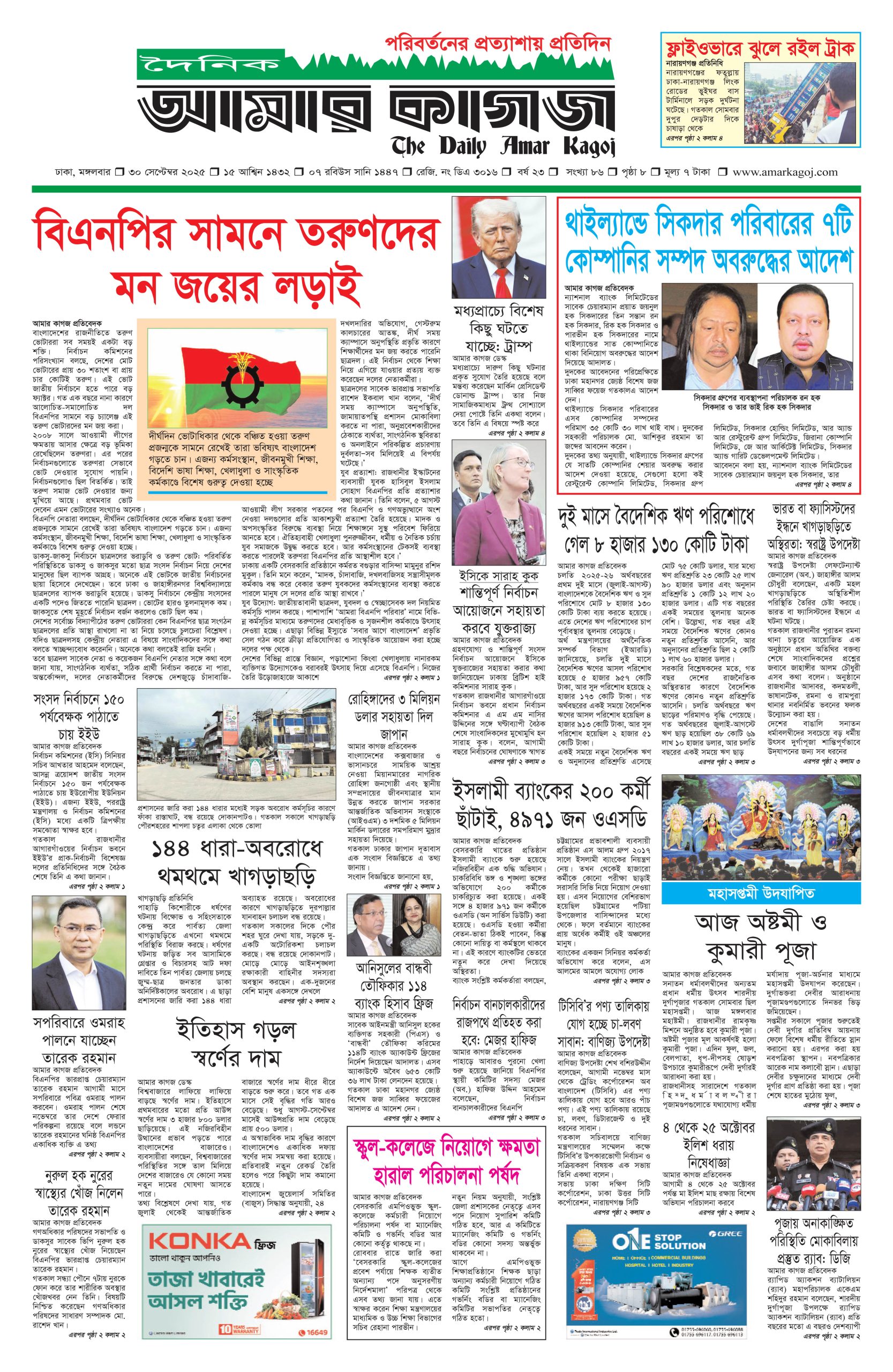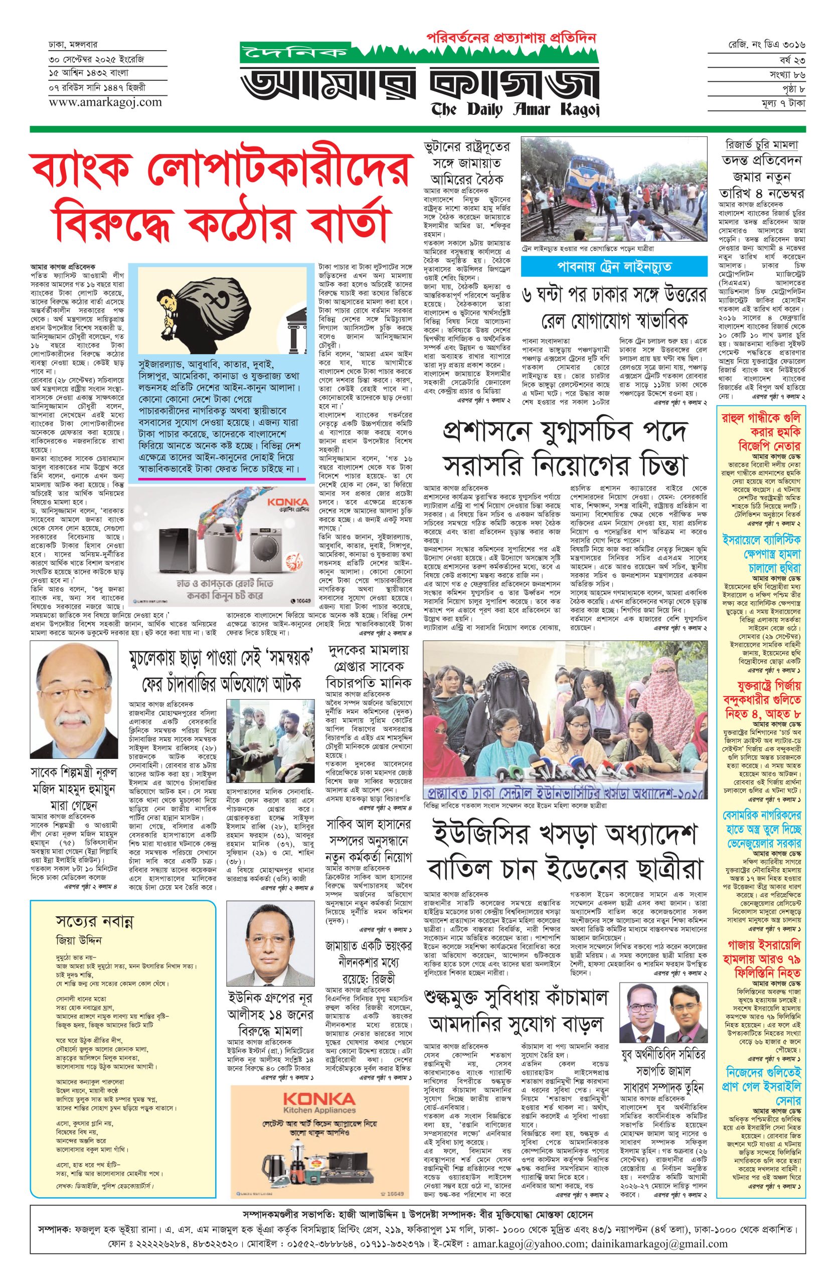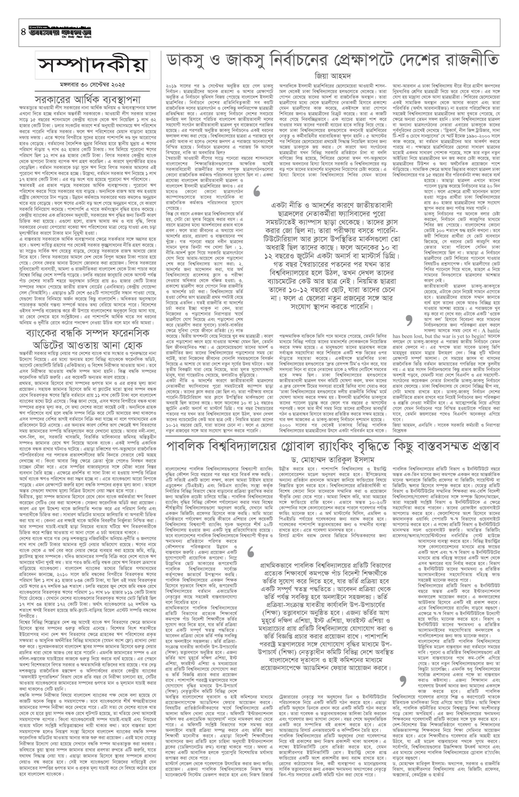 ই পেপার প্রধান সংবাদ সর্বশেষ দৈনিক আমার কাগজ ই-পেপার (মঙ্গলবার, ৩০ সেপ্টেম্বর ২০২৫) Faruk Hossain September 30, 2025 1:21 AM Continue Reading Previous: এক দেশ, দুই ব্যবস্থা’র সাফল্যে ম্যাকাওতে সি চিন পিং-এর দর্শনNext: সচিব পদে রদবদল শিগগিরই Leave a Reply Cancel replyYour email address will not be published. Required fields are marked *Comment * Name * Email * Website Save my name, email, and website in this browser for the next time I comment. Related Stories দেশে গ্যাস সংকটের মূলে রাজনীতিবিদ আর ব্যবসায়ীরা: জ্বালানি উপদেষ্টা জাতীয় দেশে গ্যাস সংকটের মূলে রাজনীতিবিদ আর ব্যবসায়ীরা: জ্বালানি উপদেষ্টা October 11, 2025 1:34 PM শহীদ মিনারে সৈয়দ মনজুরুল ইসলামকে শ্রদ্ধা নিবেদন প্রধান সংবাদ শহীদ মিনারে সৈয়দ মনজুরুল ইসলামকে শ্রদ্ধা নিবেদন October 11, 2025 1:28 PM সাত রুটে অস্ত্র ঢুকছে দেশে 1 min read জাতীয় সাত রুটে অস্ত্র ঢুকছে দেশে October 11, 2025 1:23 PM