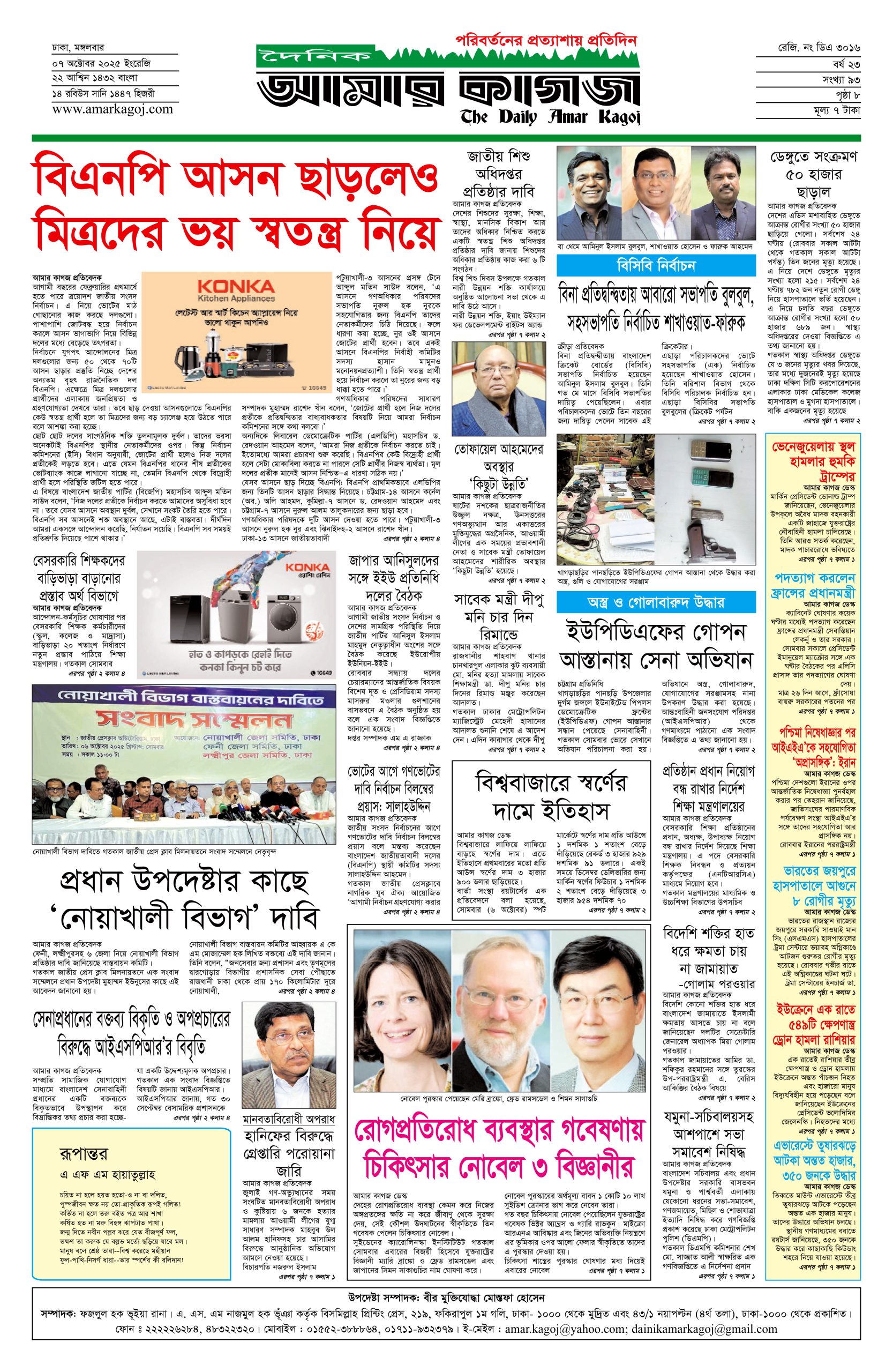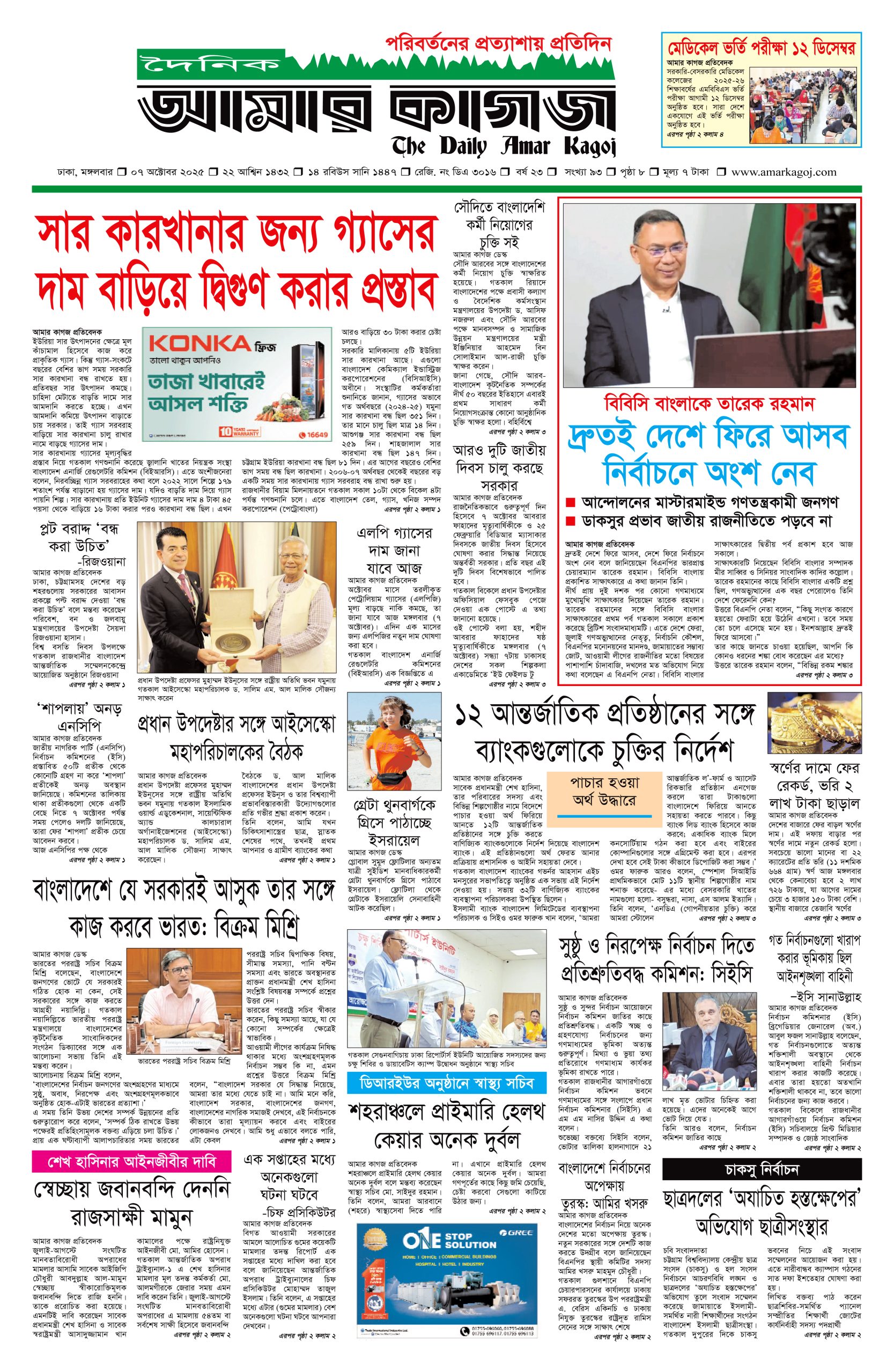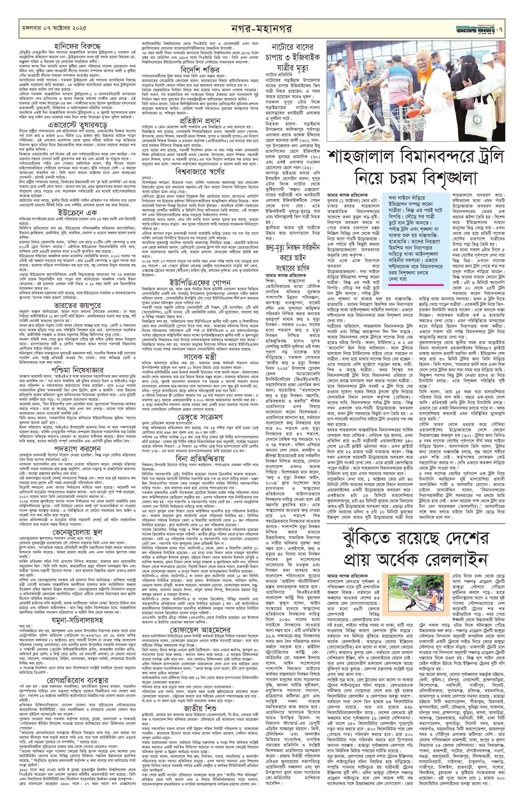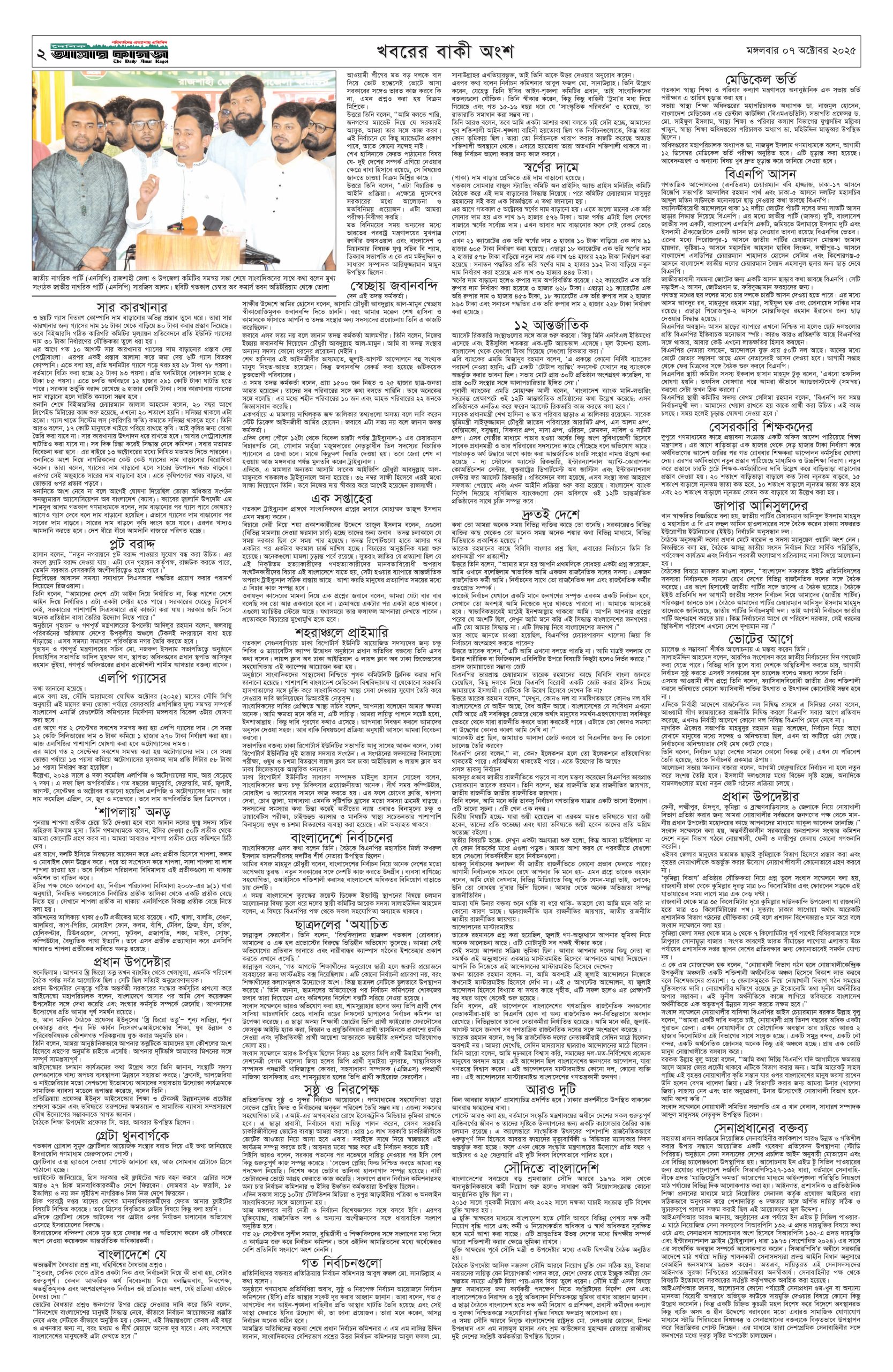 ই পেপার প্রধান সংবাদ সর্বশেষ দৈনিক আমার কাগজ ই-পেপার (মঙ্গলবার, ৭ অক্টোবর ২০২৫) Faruk Hossain October 7, 2025 2:39 PM Continue Reading Previous: ২৭ হাজার কোটি টাকা ব্যয়ে চীন থেকে ২০টি যুদ্ধবিমান কিনছে বাংলাদেশNext: ডিএমপির এডিসি পদমর্যাদার ৫ কর্মকর্তার রদবদল Leave a Reply Cancel replyYour email address will not be published. Required fields are marked *Comment * Name * Email * Website Save my name, email, and website in this browser for the next time I comment. Related Stories দেশে গ্যাস সংকটের মূলে রাজনীতিবিদ আর ব্যবসায়ীরা: জ্বালানি উপদেষ্টা জাতীয় দেশে গ্যাস সংকটের মূলে রাজনীতিবিদ আর ব্যবসায়ীরা: জ্বালানি উপদেষ্টা October 11, 2025 1:34 PM শহীদ মিনারে সৈয়দ মনজুরুল ইসলামকে শ্রদ্ধা নিবেদন প্রধান সংবাদ শহীদ মিনারে সৈয়দ মনজুরুল ইসলামকে শ্রদ্ধা নিবেদন October 11, 2025 1:28 PM সাত রুটে অস্ত্র ঢুকছে দেশে 1 min read জাতীয় সাত রুটে অস্ত্র ঢুকছে দেশে October 11, 2025 1:23 PM