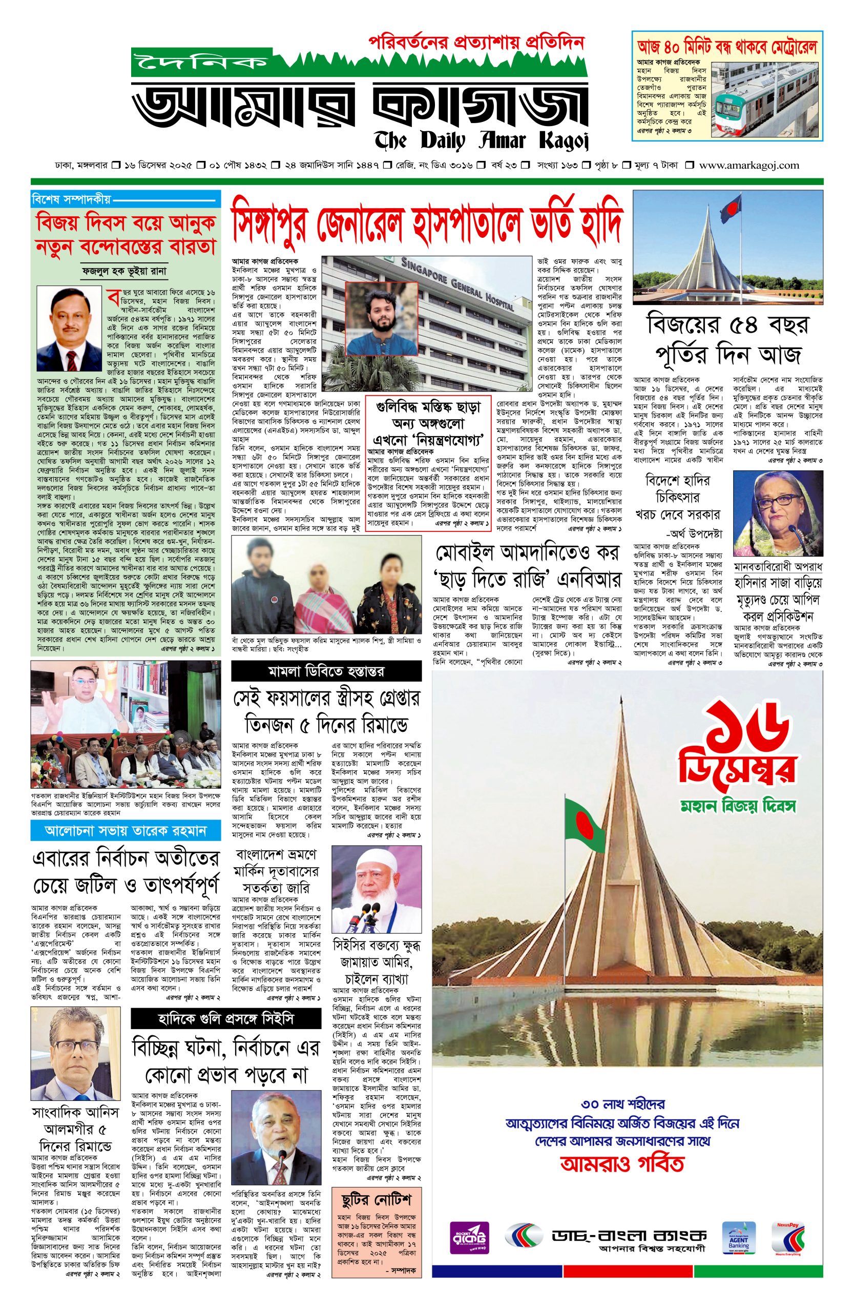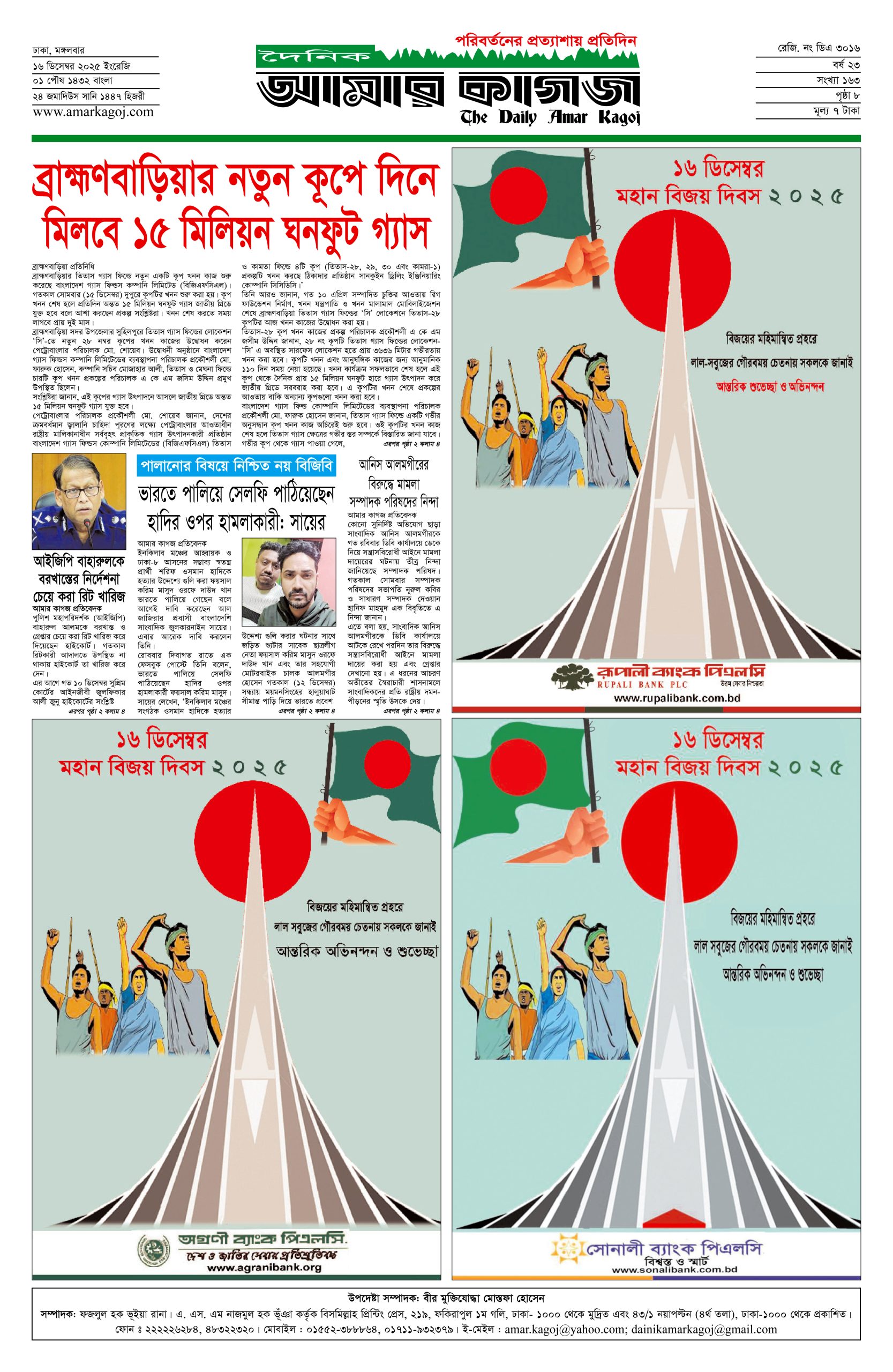 ই পেপার প্রধান সংবাদ সর্বশেষ দৈনিক আমার কাগজ ই-পেপার (মঙ্গলবার, ১৬ ডিসেম্বর ২০২৫) Faruk Hossain December 16, 2025 9:02 AM Continue Reading Previous: জাতীয় স্মৃতিসৌধে রাষ্ট্রপতি ও প্রধান উপদেষ্টার শ্রদ্ধা নিবেদনNext: রাজারবাগ পুলিশ স্মৃতিস্তম্ভে স্বরাষ্ট্র উপদেষ্টা-আইজিপির শ্রদ্ধা Leave a Reply Cancel replyYour email address will not be published. Required fields are marked *Comment * Name * Email * Website Save my name, email, and website in this browser for the next time I comment. Related Stories সোমবার যশোর যাচ্ছেন তারেক রহমান 1 min read প্রধান সংবাদ সোমবার যশোর যাচ্ছেন তারেক রহমান February 1, 2026 11:34 AM পাকিস্তানের ১২ শহরে অতর্কিত হামলা, ৮০ সেনা নিহত 1 min read আন্তর্জাতিক পাকিস্তানের ১২ শহরে অতর্কিত হামলা, ৮০ সেনা নিহত February 1, 2026 11:22 AM কুমিল্লার তিন গম্বুজের ফাতেহ খাঁ জামে মসজিদ 1 min read দেশজুড়ে কুমিল্লার তিন গম্বুজের ফাতেহ খাঁ জামে মসজিদ February 1, 2026 11:18 AM