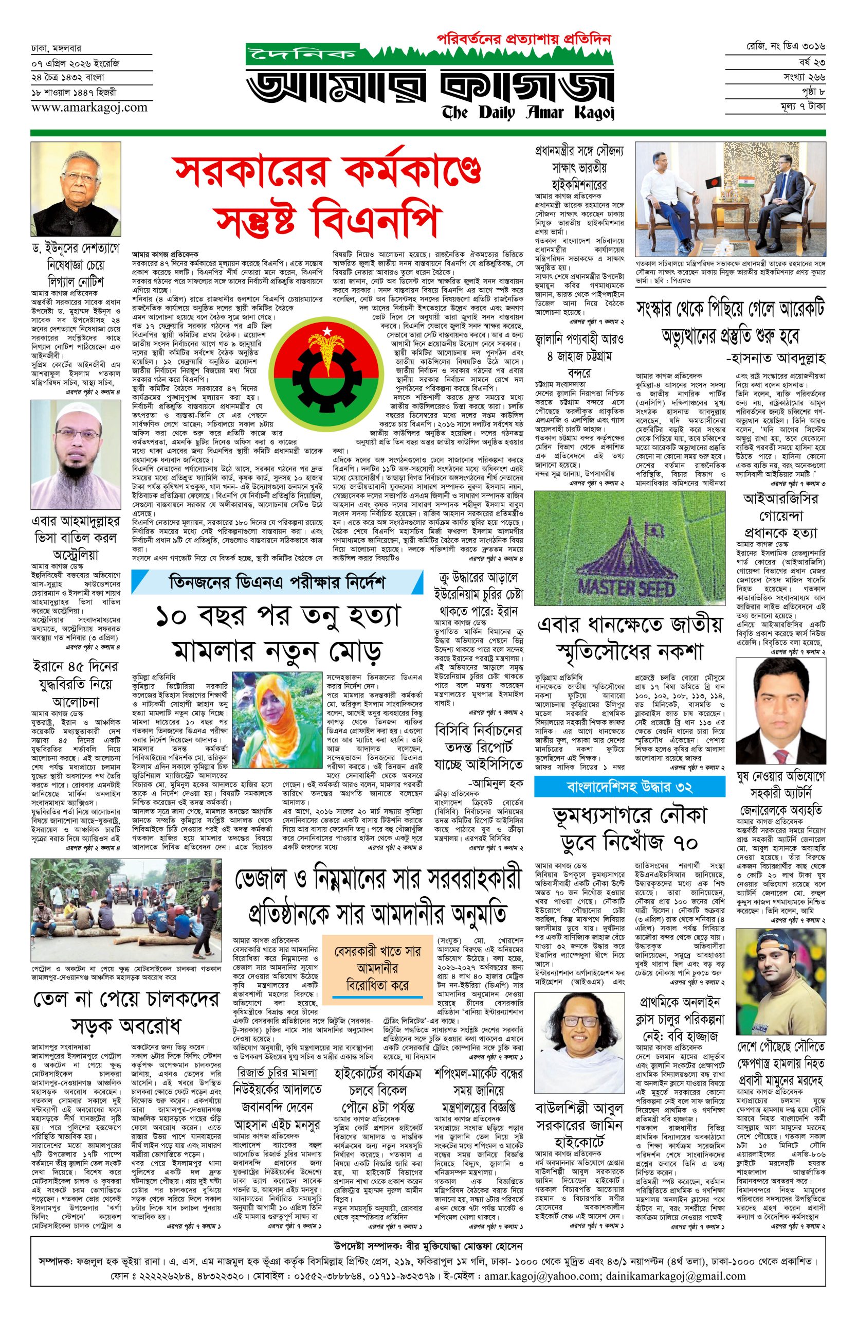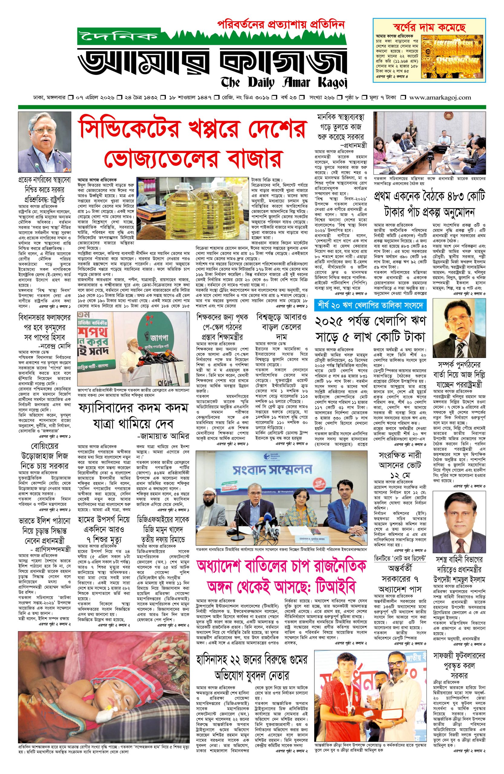 ই পেপার প্রধান সংবাদ সর্বশেষ দৈনিক আমার কাগজ ই-পেপার (মঙ্গলবার, ০৭ এপ্রিল ২০২৬) Faruk Hossain April 7, 2026 9:28 AM Continue Reading Previous: সাবেক স্পিকার শিরিন শারমিন চৌধুরীকে ডিবি আটক করেছে Leave a Reply Cancel replyYour email address will not be published. Required fields are marked *Comment * Name * Email * Website Save my name, email, and website in this browser for the next time I comment. Related Stories সাবেক স্পিকার শিরিন শারমিন চৌধুরীকে ডিবি আটক করেছে 1 min read জাতীয় সাবেক স্পিকার শিরিন শারমিন চৌধুরীকে ডিবি আটক করেছে April 7, 2026 8:31 AM সংস্কার থেকে পিছিয়ে গেলে আরেকটি অভ্যুত্থানের প্রস্তুতি শুরু হবে: হাসনাত আবদুল্লাহ রাজধানী সংস্কার থেকে পিছিয়ে গেলে আরেকটি অভ্যুত্থানের প্রস্তুতি শুরু হবে: হাসনাত আবদুল্লাহ April 6, 2026 6:26 PM ইউরোপের সঙ্গে সম্পর্ক জোরদারে প্রধানমন্ত্রীর গুরুত্ব জাতীয় ইউরোপের সঙ্গে সম্পর্ক জোরদারে প্রধানমন্ত্রীর গুরুত্ব April 6, 2026 6:07 PM
