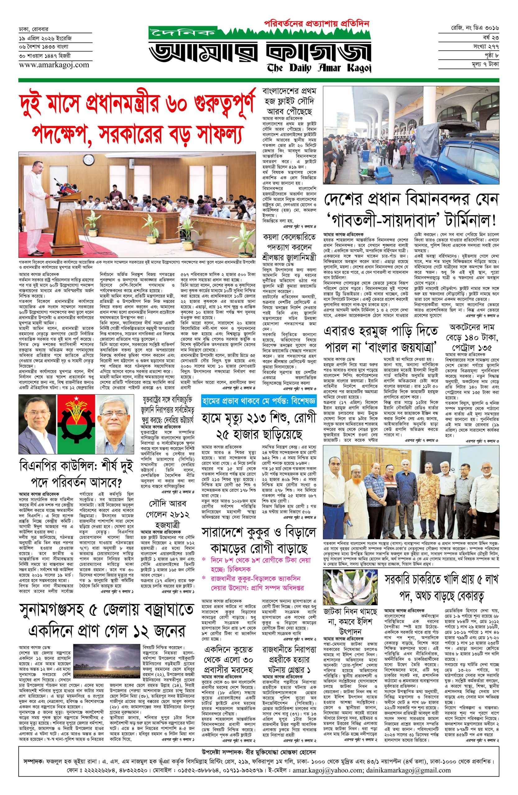 ই পেপার প্রধান সংবাদ সর্বশেষ দৈনিক আমার কাগজ ই-পেপার (রোববার, ১৯ এপ্রিল ২০২৬) Faruk Hossain April 19, 2026 10:33 AM Continue Reading Previous: আমাদের সকল কাজ একমাত্র আল্লাহর সন্তুষ্টি অর্জনের জন্য করতে হবে: গোলাম পরওয়ারNext: তিন দেশ থেকে একদিনে এলো ৩৪ প্রবাসীর মরদেহ Leave a Reply Cancel replyYour email address will not be published. Required fields are marked *Comment * Name * Email * Website Save my name, email, and website in this browser for the next time I comment. Related Stories জয়-পলকের বিরুদ্ধে বিটিসিএল কর্মকর্তার সাক্ষ্য আজ 1 min read আইন আদালত জয়-পলকের বিরুদ্ধে বিটিসিএল কর্মকর্তার সাক্ষ্য আজ April 19, 2026 11:55 AM কাল বগুড়া সিটি করপোরেশন উদ্বোধন করবেন প্রধানমন্ত্রী 1 min read জাতীয় কাল বগুড়া সিটি করপোরেশন উদ্বোধন করবেন প্রধানমন্ত্রী April 19, 2026 11:14 AM দুপুরে জরুরি সংবাদ সম্মেলন করবে এনসিপি রাজনীতি দুপুরে জরুরি সংবাদ সম্মেলন করবে এনসিপি April 19, 2026 11:08 AM