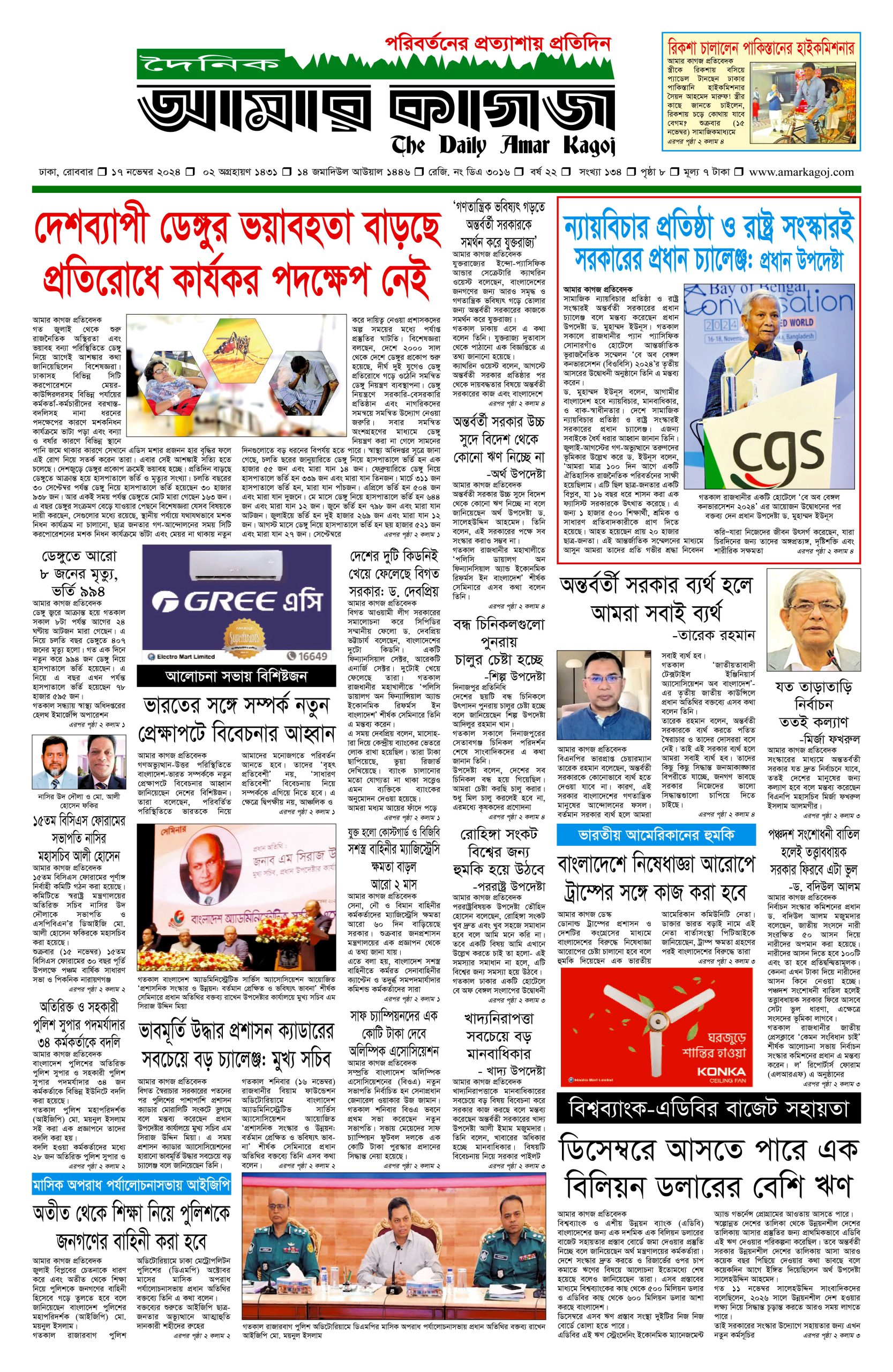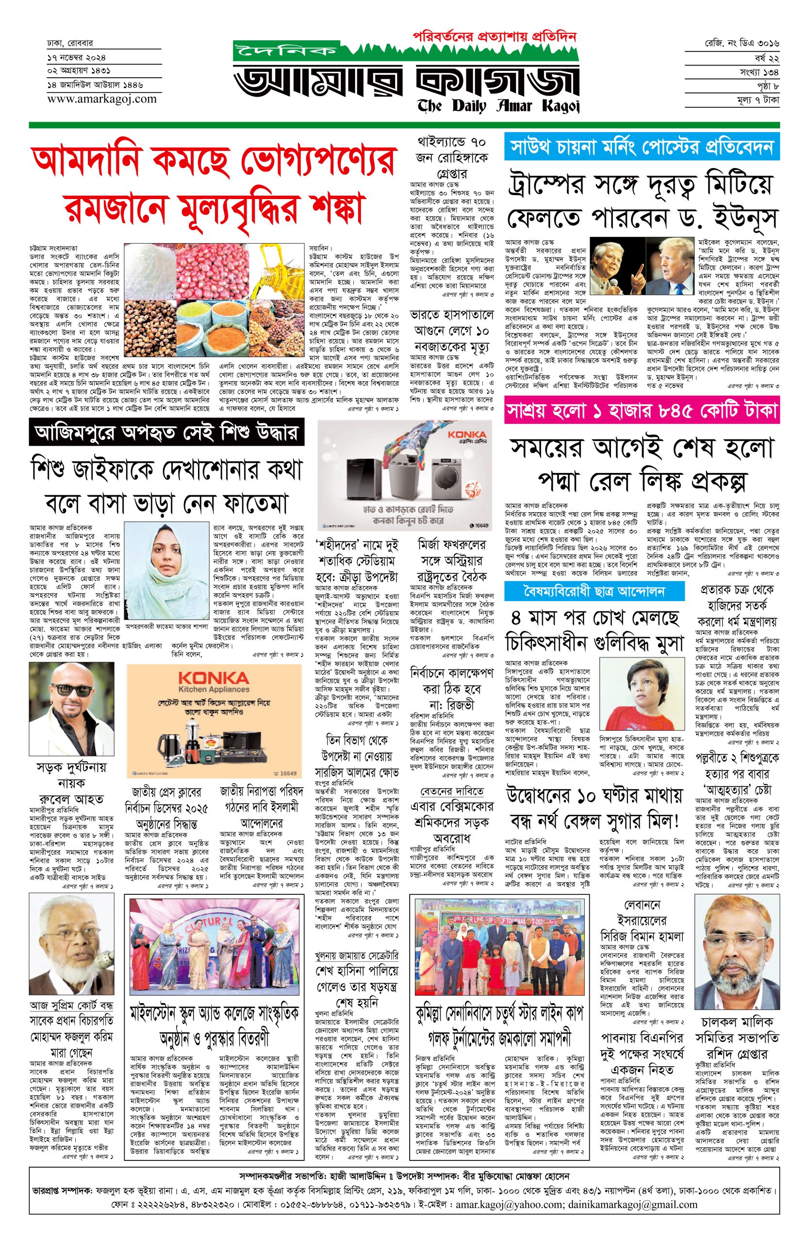 ই পেপার সর্বশেষ দৈনিক আমার কাগজ ই-পেপার (রোববার, ১৭ নভেম্বর ২০২৪) Faruk Hossain November 17, 2024 10:10 AM Continue Reading Previous: সুবিধা বঞ্চিতদের মাঝে লায়ন্স ক্লাব অব ঢাকা ক্যাপিটাল গার্ডেন-এর খাদ্য বিতরণNext: মওলানা ভাসানীর ৪৮তম মৃত্যুবার্ষিকী আজ Leave a Reply Cancel replyYour email address will not be published. Required fields are marked *Comment * Name * Email * Website Save my name, email, and website in this browser for the next time I comment. Related Stories ফেব্রুয়ারিতে নির্বাচন না হলে ভয়ংকর পরিস্থিতি তৈরি হতে পারে: দুদু 1 min read রাজনীতি ফেব্রুয়ারিতে নির্বাচন না হলে ভয়ংকর পরিস্থিতি তৈরি হতে পারে: দুদু October 11, 2025 5:51 PM সাউন্ডগ্রেনেড বিস্ফোরণে জাতীয় পার্টির কর্মী সমাবেশ পণ্ড প্রধান সংবাদ সাউন্ডগ্রেনেড বিস্ফোরণে জাতীয় পার্টির কর্মী সমাবেশ পণ্ড October 11, 2025 5:41 PM নির্বাচনে বড় চ্যালেঞ্জ নিরাপত্তা: সিইসি জাতীয় নির্বাচনে বড় চ্যালেঞ্জ নিরাপত্তা: সিইসি October 11, 2025 5:37 PM