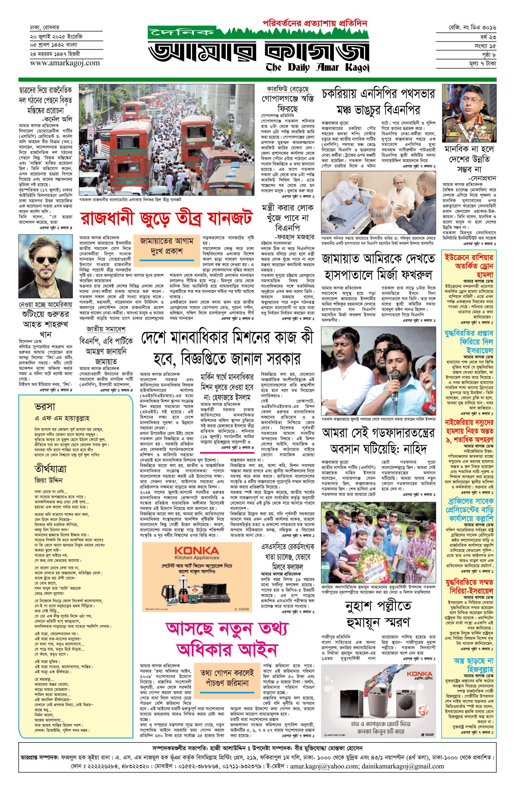 ই পেপার সর্বশেষ দৈনিক আমার কাগজ ই-পেপার (রোববার, ২০ জুলাই ২০২৫) Faruk Hossain July 20, 2025 9:48 AM Continue Reading Previous: জামায়াতের সমাবেশে যোগ দিলেন এনসিপির সারজিসNext: গোপালগঞ্জে চার মামলায় আসামি ৩০০৮, গ্রেপ্তার ৩ শতাধিক Leave a Reply Cancel replyYour email address will not be published. Required fields are marked *Comment * Name * Email * Website Save my name, email, and website in this browser for the next time I comment. Related Stories ফেব্রুয়ারিতে নির্বাচন না হলে ভয়ংকর পরিস্থিতি তৈরি হতে পারে: দুদু 1 min read রাজনীতি ফেব্রুয়ারিতে নির্বাচন না হলে ভয়ংকর পরিস্থিতি তৈরি হতে পারে: দুদু October 11, 2025 5:51 PM সাউন্ডগ্রেনেড বিস্ফোরণে জাতীয় পার্টির কর্মী সমাবেশ পণ্ড প্রধান সংবাদ সাউন্ডগ্রেনেড বিস্ফোরণে জাতীয় পার্টির কর্মী সমাবেশ পণ্ড October 11, 2025 5:41 PM নির্বাচনে বড় চ্যালেঞ্জ নিরাপত্তা: সিইসি জাতীয় নির্বাচনে বড় চ্যালেঞ্জ নিরাপত্তা: সিইসি October 11, 2025 5:37 PM