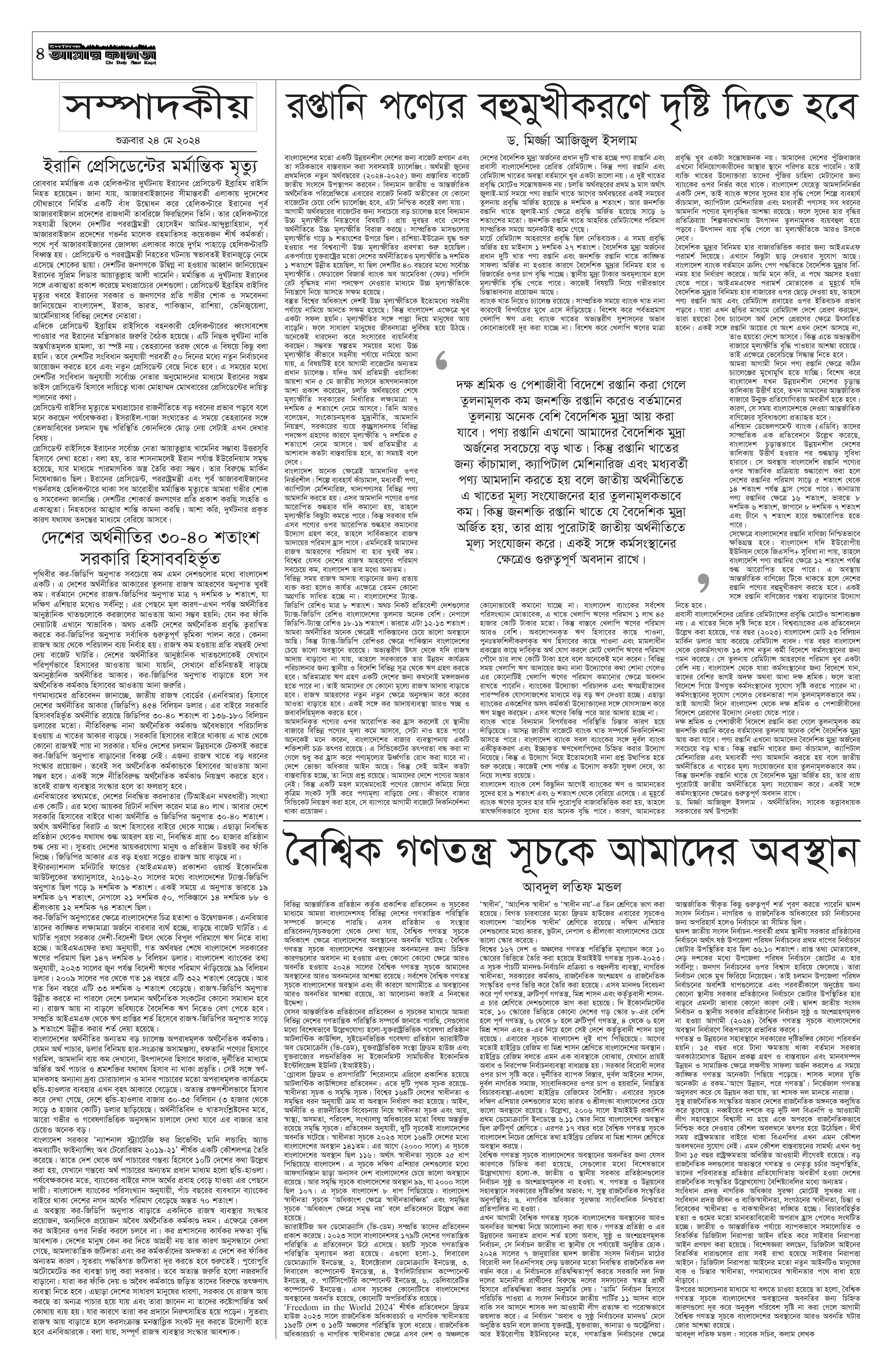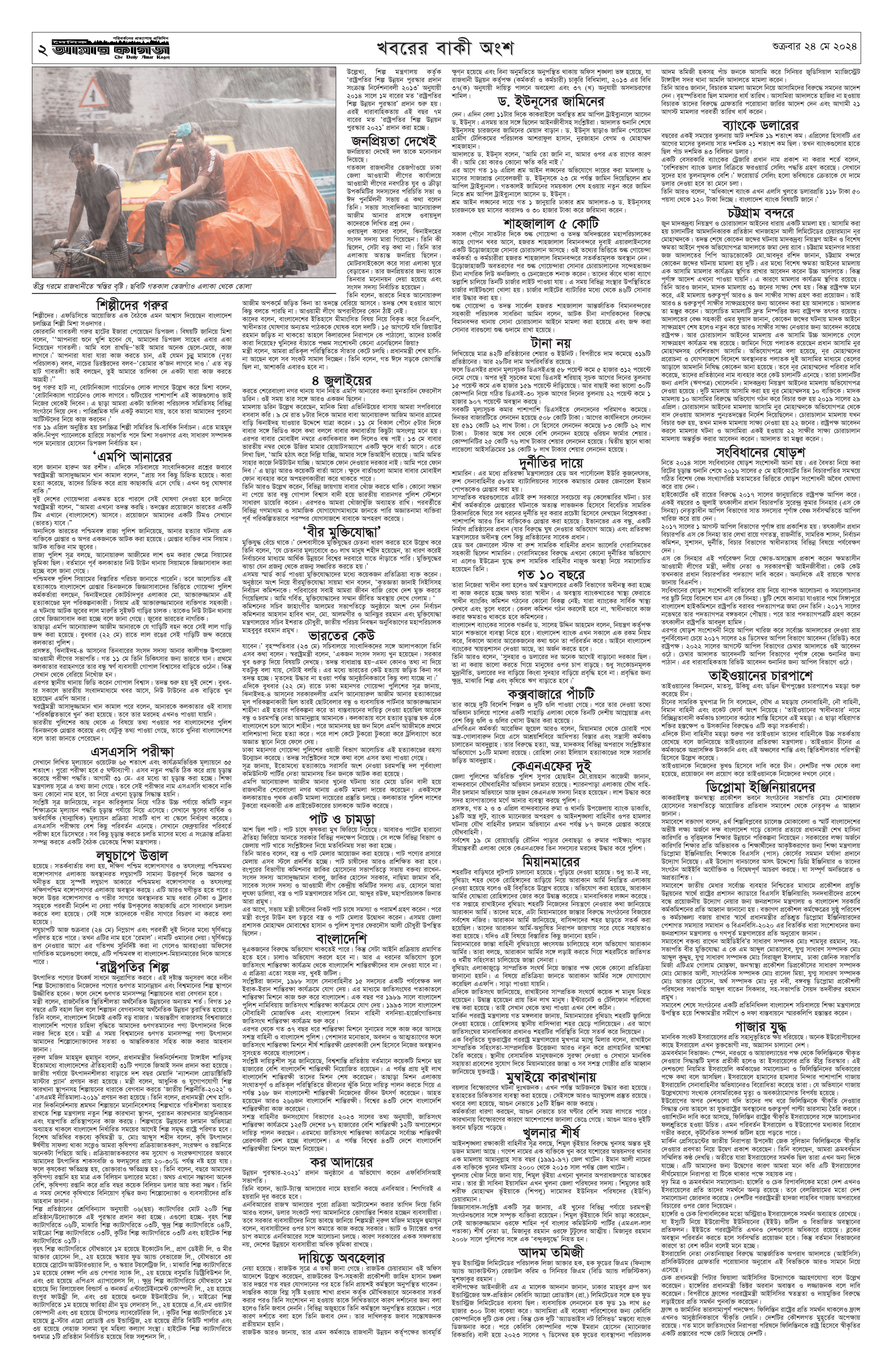 ই পেপার সর্বশেষ দৈনিক আমার কাগজ ই-পেপার (শুক্রবার, ২৪ মে ২০২৪) Faruk Hossain May 24, 2024 9:25 AM Continue Reading Previous: ডিএসসিসি-র বিতর্কিত কাউন্সিলর চামেলী বরখাস্তNext: ভিয়েতনামে আবাসিক ভবনে আগুন, নিহত ১৪ Leave a Reply Cancel replyYour email address will not be published. Required fields are marked *Comment * Name * Email * Website Save my name, email, and website in this browser for the next time I comment. Related Stories চীন-বাংলাদেশ মধ্যে শিক্ষা ও সংস্কৃতির বিনিময়ে বন্ধুত্বের সেতু 1 min read আন্তর্জাতিক চীন-বাংলাদেশ মধ্যে শিক্ষা ও সংস্কৃতির বিনিময়ে বন্ধুত্বের সেতু October 12, 2025 3:33 PM সংরক্ষণবাদ উদ্ভাবনকে রুদ্ধ করে: জেফ্রি স্যাকসের সতর্কবার্তা 1 min read আন্তর্জাতিক সংরক্ষণবাদ উদ্ভাবনকে রুদ্ধ করে: জেফ্রি স্যাকসের সতর্কবার্তা October 12, 2025 3:31 PM কিছু মানুষ একাত্তরের ইতিহাস ভুলিয়ে দেয়ার চেষ্টা করছে: মির্জা ফখরুল 1 min read রাজনীতি কিছু মানুষ একাত্তরের ইতিহাস ভুলিয়ে দেয়ার চেষ্টা করছে: মির্জা ফখরুল October 12, 2025 1:31 PM