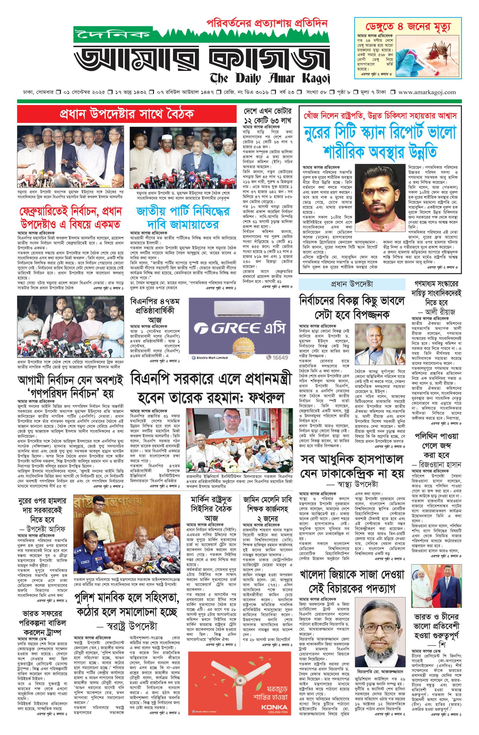 ই পেপার সর্বশেষ দৈনিক আমার কাগজ ই-পেপার (সোমবার, ০১ সেপ্টেম্বর ২০২৫) Faruk Hossain September 1, 2025 9:37 AM Continue Reading Previous: ইন্দোনেশিয়ায় অর্থমন্ত্রীর বাড়িতে হামলা-ভাঙচুর ও লুটপাটNext: হাসিনার ঘনিষ্ঠ তিন মন্ত্রীকে মার্কিন ‘ডিপ স্টেট’ প্রভাবিত করেছিল: Leave a Reply Cancel replyYour email address will not be published. Required fields are marked *Comment * Name * Email * Website Save my name, email, and website in this browser for the next time I comment. Related Stories ফেব্রুয়ারিতে নির্বাচন না হলে ভয়ংকর পরিস্থিতি তৈরি হতে পারে: দুদু 1 min read রাজনীতি ফেব্রুয়ারিতে নির্বাচন না হলে ভয়ংকর পরিস্থিতি তৈরি হতে পারে: দুদু October 11, 2025 5:51 PM সাউন্ডগ্রেনেড বিস্ফোরণে জাতীয় পার্টির কর্মী সমাবেশ পণ্ড প্রধান সংবাদ সাউন্ডগ্রেনেড বিস্ফোরণে জাতীয় পার্টির কর্মী সমাবেশ পণ্ড October 11, 2025 5:41 PM নির্বাচনে বড় চ্যালেঞ্জ নিরাপত্তা: সিইসি জাতীয় নির্বাচনে বড় চ্যালেঞ্জ নিরাপত্তা: সিইসি October 11, 2025 5:37 PM