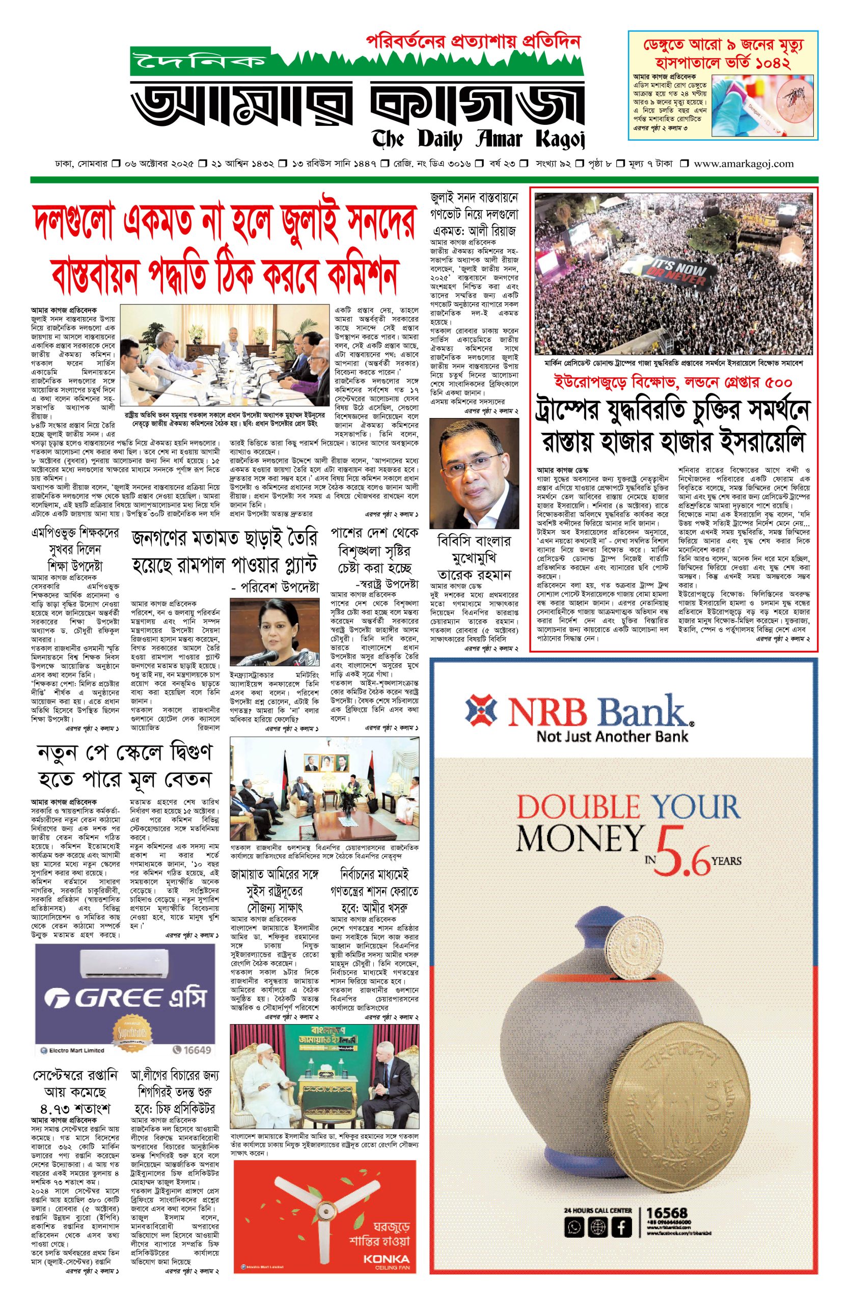 ই পেপার সর্বশেষ দৈনিক আমার কাগজ ই-পেপার (সোমবার, ৬ অক্টোবর ২০২৫) Faruk Hossain October 6, 2025 9:10 AM Continue Reading Previous: ট্রাম্পের যুদ্ধবিরতি চুক্তির সমর্থনে রাস্তায় নেমেছে হাজার হাজার ইসরায়েলিNext: বিসিবির আলোচিত নির্বাচন আজ Leave a Reply Cancel replyYour email address will not be published. Required fields are marked *Comment * Name * Email * Website Save my name, email, and website in this browser for the next time I comment. Related Stories দেশে গ্যাস সংকটের মূলে রাজনীতিবিদ আর ব্যবসায়ীরা: জ্বালানি উপদেষ্টা জাতীয় দেশে গ্যাস সংকটের মূলে রাজনীতিবিদ আর ব্যবসায়ীরা: জ্বালানি উপদেষ্টা October 11, 2025 1:34 PM শহীদ মিনারে সৈয়দ মনজুরুল ইসলামকে শ্রদ্ধা নিবেদন প্রধান সংবাদ শহীদ মিনারে সৈয়দ মনজুরুল ইসলামকে শ্রদ্ধা নিবেদন October 11, 2025 1:28 PM সাত রুটে অস্ত্র ঢুকছে দেশে 1 min read জাতীয় সাত রুটে অস্ত্র ঢুকছে দেশে October 11, 2025 1:23 PM