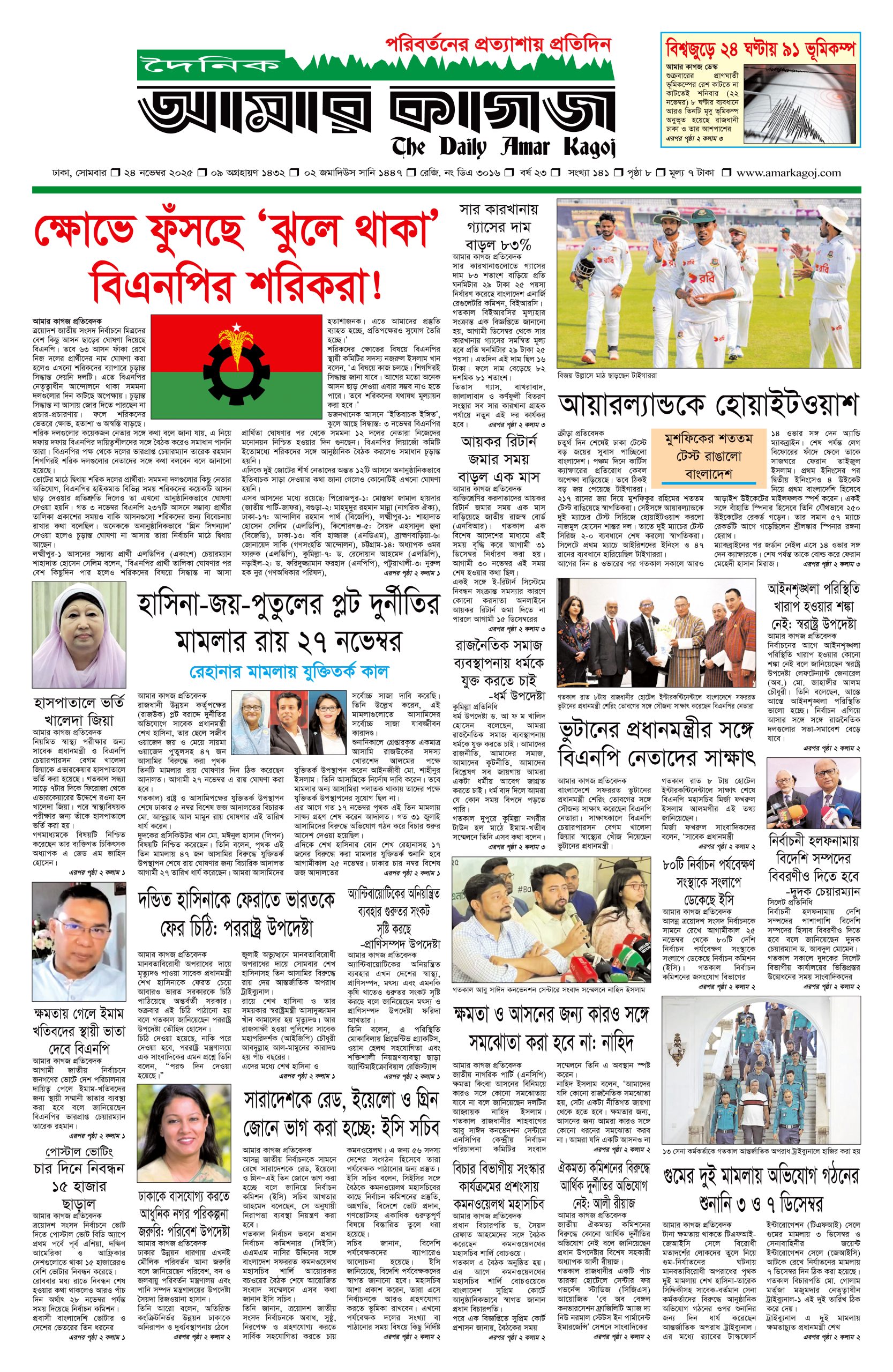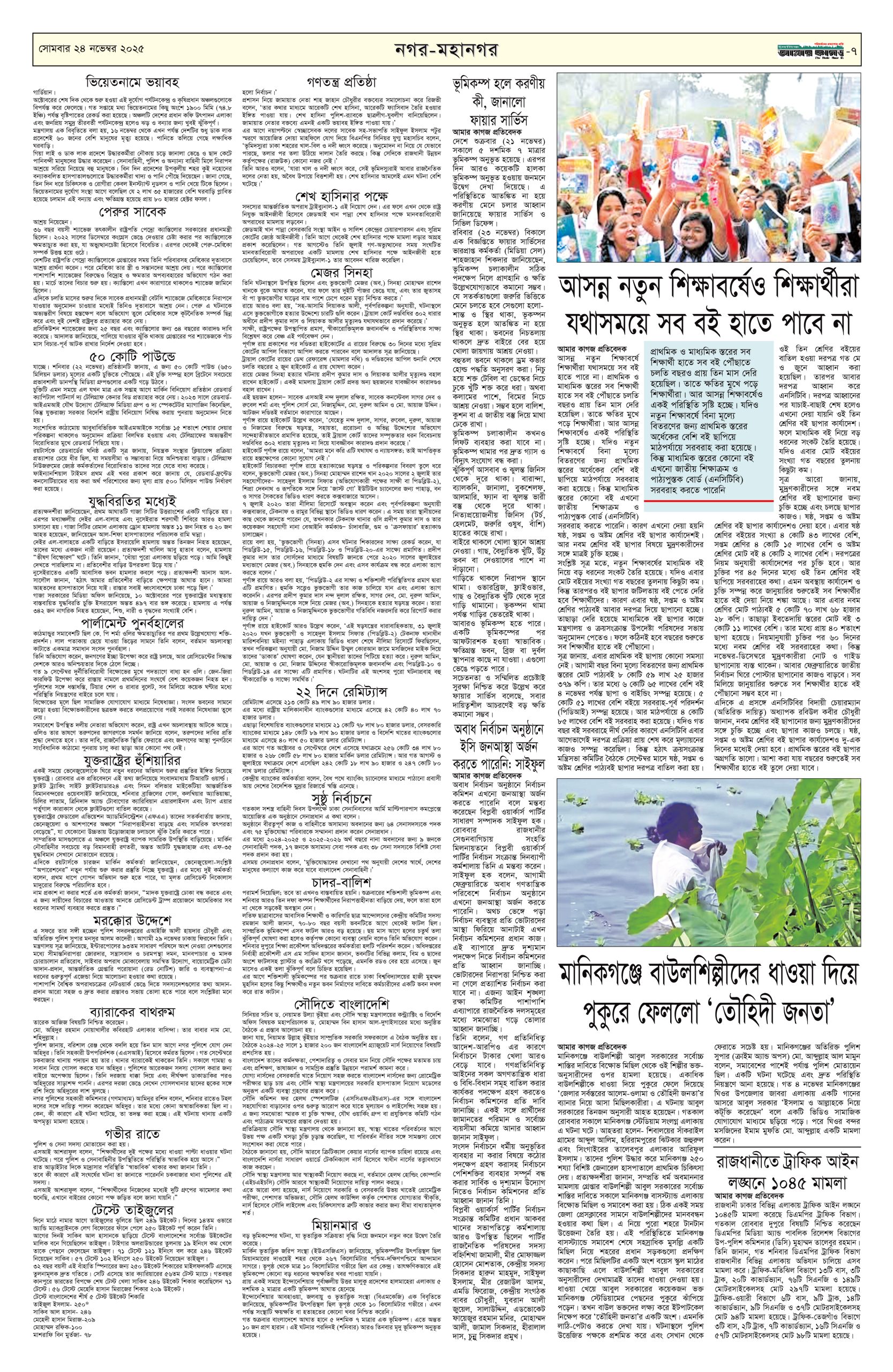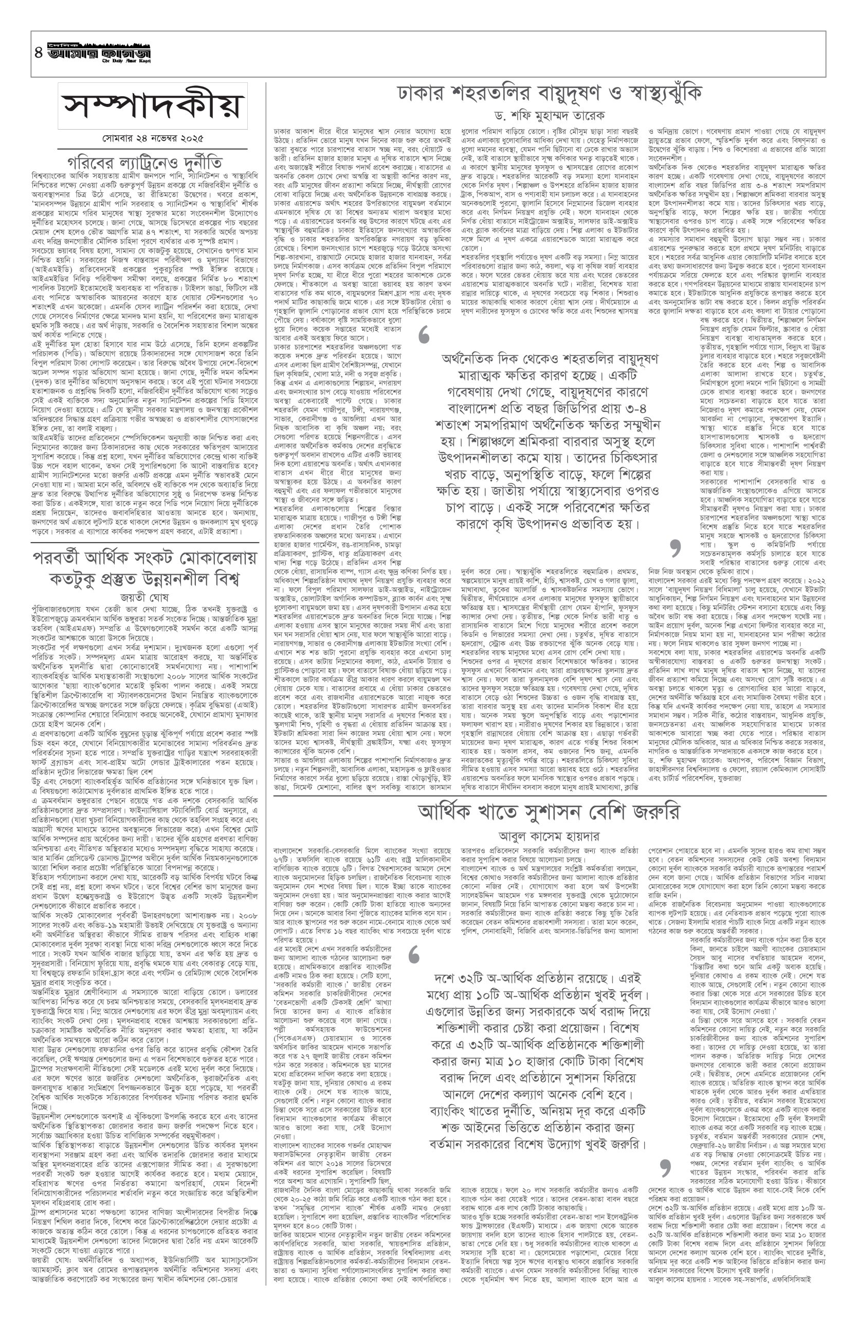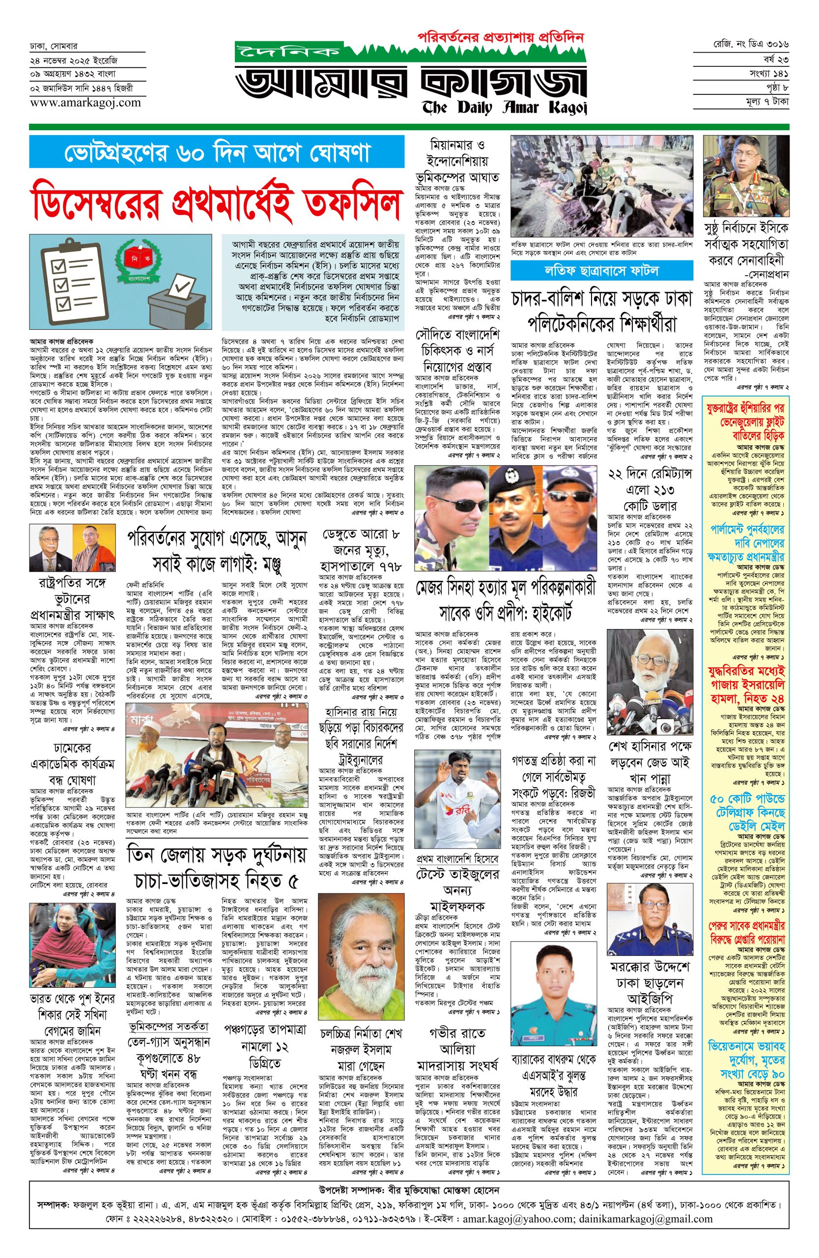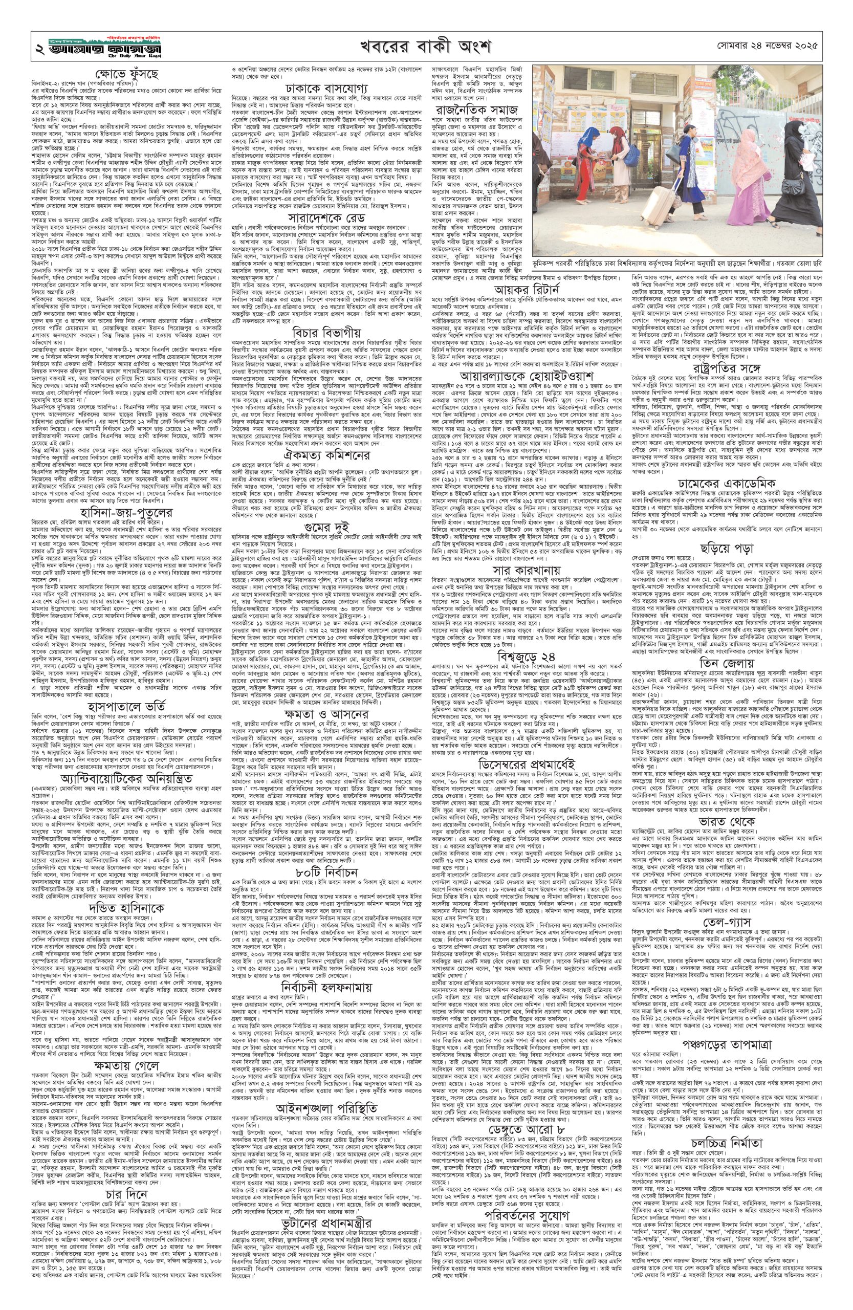 ই পেপার প্রধান সংবাদ সর্বশেষ দৈনিক আমার কাগজ ই-পেপার (সোমবার, ২৪ নভেম্বর ২০২৫) Faruk Hossain November 24, 2025 10:13 AM Continue Reading Previous: গুমের মামলায় শেখ হাসিনার পক্ষে লড়বেন জেড আই খান পান্নাNext: ঢাকা ছাড়লেন ভুটানের প্রধানমন্ত্রী Leave a Reply Cancel replyYour email address will not be published. Required fields are marked *Comment * Name * Email * Website Save my name, email, and website in this browser for the next time I comment. Related Stories নির্বাচন থেকে সরে দাঁড়ালেন ঢাকা-১৩ আসনের স্বতন্ত্র প্রার্থী 1 min read জাতীয় নির্বাচন থেকে সরে দাঁড়ালেন ঢাকা-১৩ আসনের স্বতন্ত্র প্রার্থী February 4, 2026 4:25 PM গুপ্ত সংগঠনের ব্যক্তিরা নতুন জালেম হিসেবে আবির্ভূত হয়েছে: তারেক রহমান 1 min read প্রধান সংবাদ গুপ্ত সংগঠনের ব্যক্তিরা নতুন জালেম হিসেবে আবির্ভূত হয়েছে: তারেক রহমান February 4, 2026 4:08 PM দাউদকান্দিতে হাঁস চুরির অভিযোগে নির্মাণশ্রমিককে রড-হাতুড়ি দিয়ে পিটিয়ে হত্যা 1 min read দেশজুড়ে দাউদকান্দিতে হাঁস চুরির অভিযোগে নির্মাণশ্রমিককে রড-হাতুড়ি দিয়ে পিটিয়ে হত্যা February 4, 2026 3:59 PM