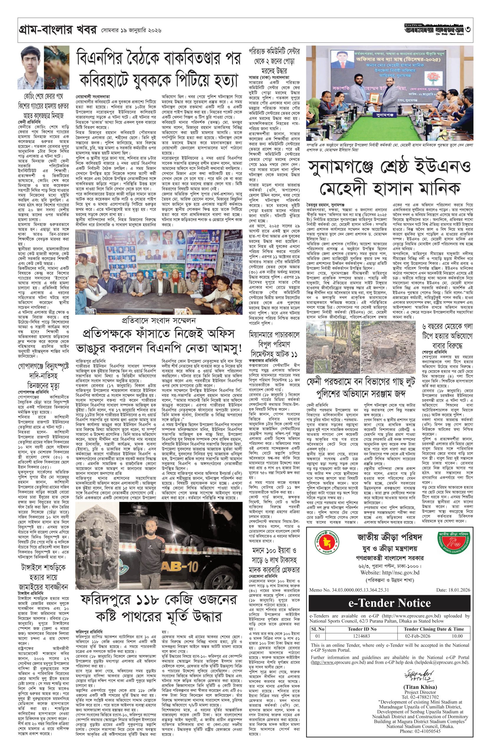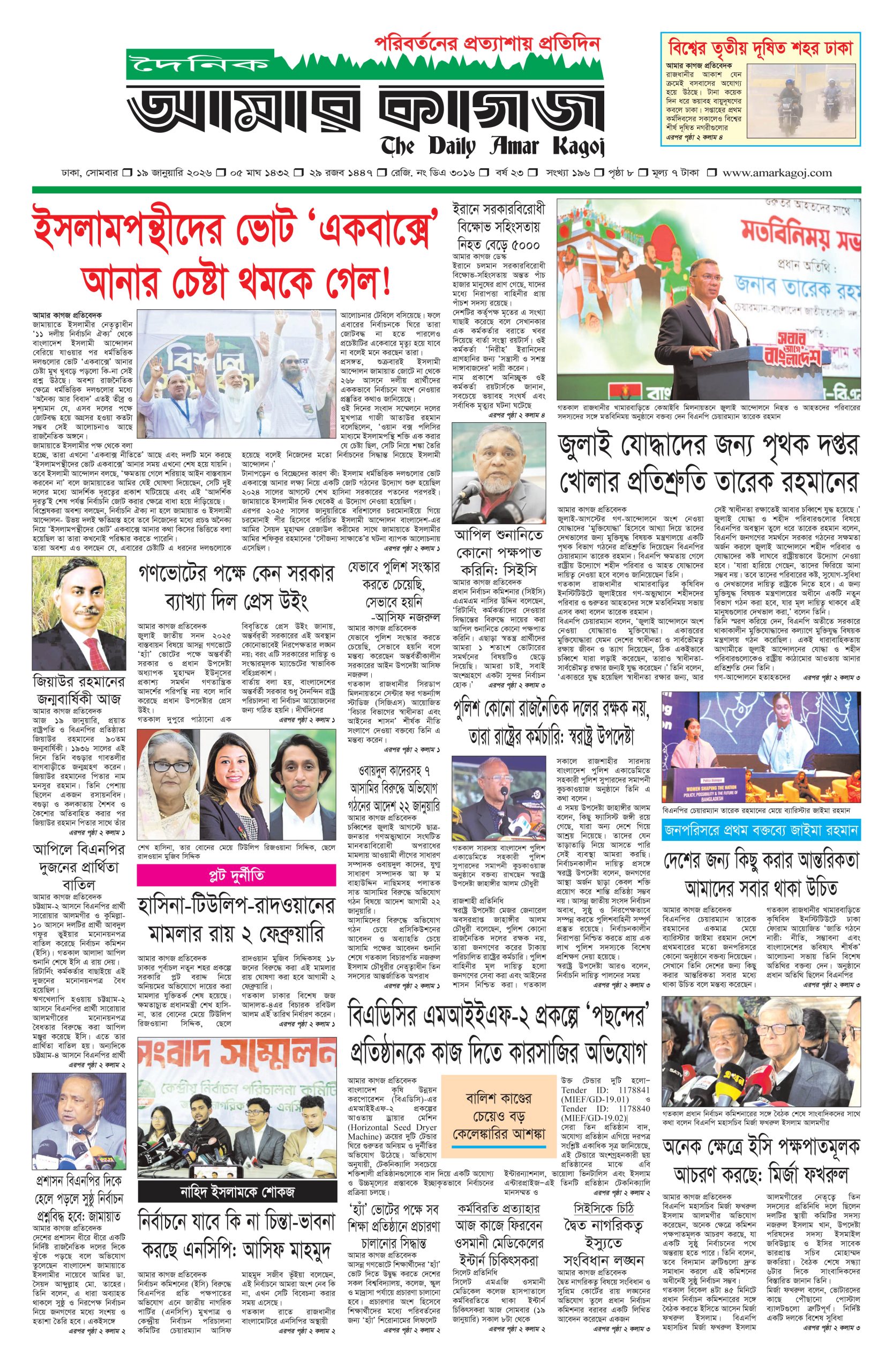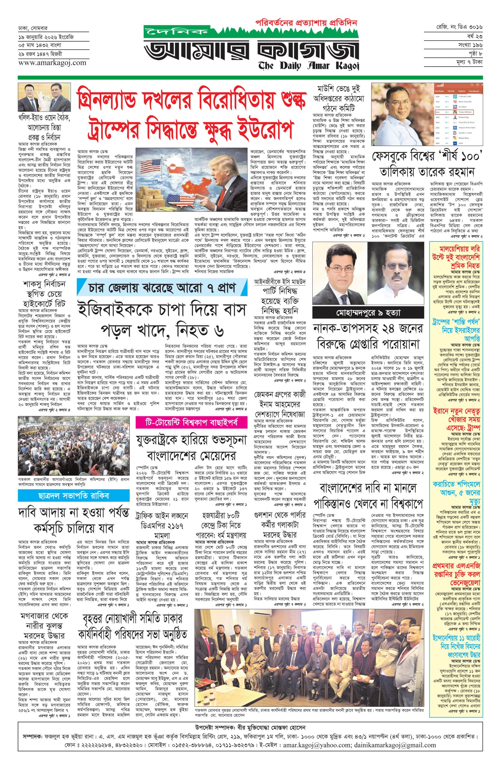 ই পেপার প্রধান সংবাদ সর্বশেষ দৈনিক আমার কাগজ ই-পেপার (সোমবার, ১৯ জানুয়ারি ২০২৬) Faruk Hossain January 19, 2026 9:36 AM Continue Reading Previous: ‘মব’ বলা নিয়ে সতর্ক করলেন তাজুল, ‘থ্রেট’ হিসেবে দেখছেন রাজনীতিবিদেরাNext: স্পেনে ভয়াবহ ট্রেন দুর্ঘটনা, নিহত অন্তত ২১ Leave a Reply Cancel replyYour email address will not be published. Required fields are marked *Comment * Name * Email * Website Save my name, email, and website in this browser for the next time I comment. Related Stories ঢাকার মশা মারাও আটকে যাচ্ছে ডিজেলের কারণে ড্রিঞ্জা চাম্বুগং 1 min read প্রধান সংবাদ ঢাকার মশা মারাও আটকে যাচ্ছে ডিজেলের কারণে ড্রিঞ্জা চাম্বুগং April 3, 2026 12:48 PM কালীগঞ্জে গৃহবধূর রহস্যজনক মৃত্যু, হাসপাতাল চত্বরে দুই পরিবারের সংঘর্ষ 1 min read দেশজুড়ে কালীগঞ্জে গৃহবধূর রহস্যজনক মৃত্যু, হাসপাতাল চত্বরে দুই পরিবারের সংঘর্ষ April 3, 2026 12:27 PM হরমুজ প্রণালি সচল করতে যুক্তরাজ্যের নেতৃত্বে ৪০ দেশের বৈঠক আন্তর্জাতিক হরমুজ প্রণালি সচল করতে যুক্তরাজ্যের নেতৃত্বে ৪০ দেশের বৈঠক April 3, 2026 12:16 PM