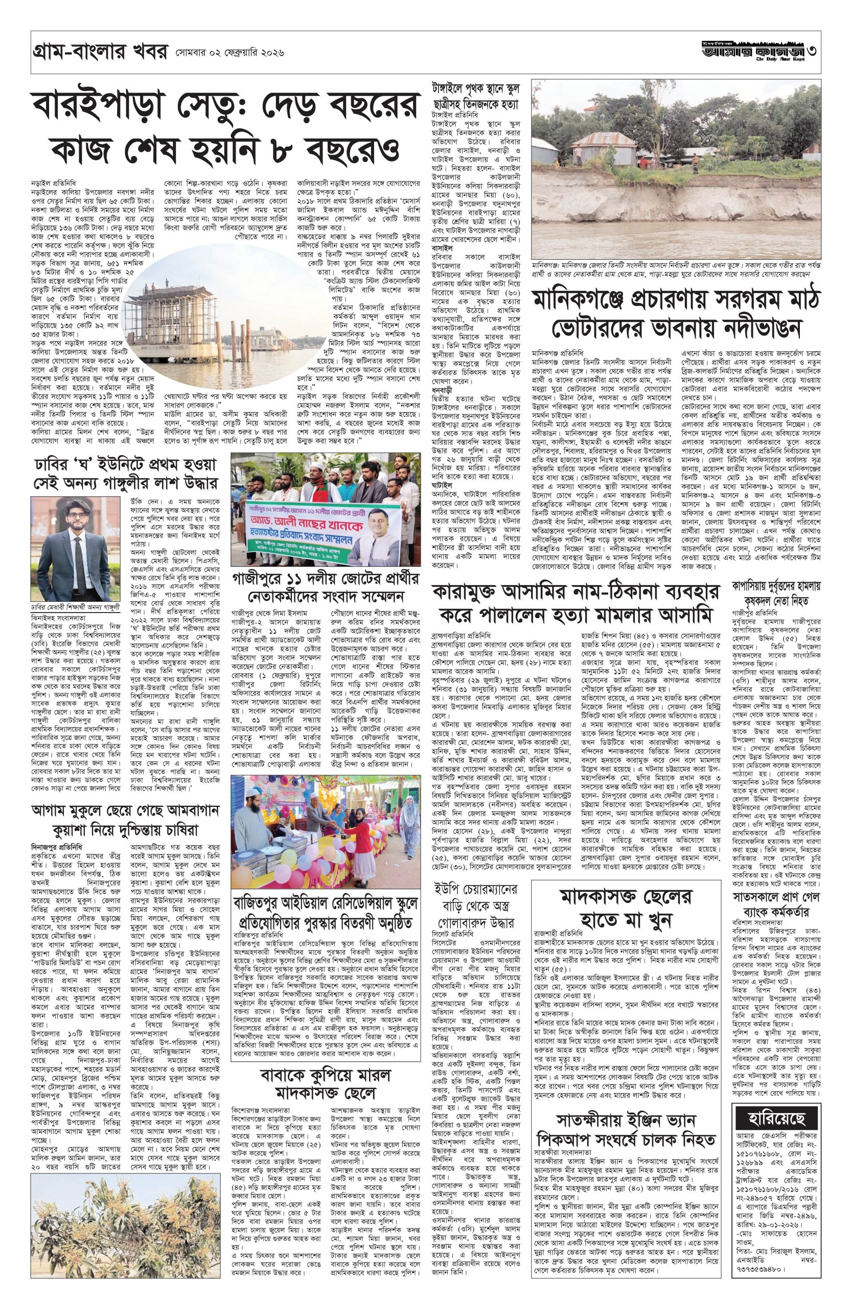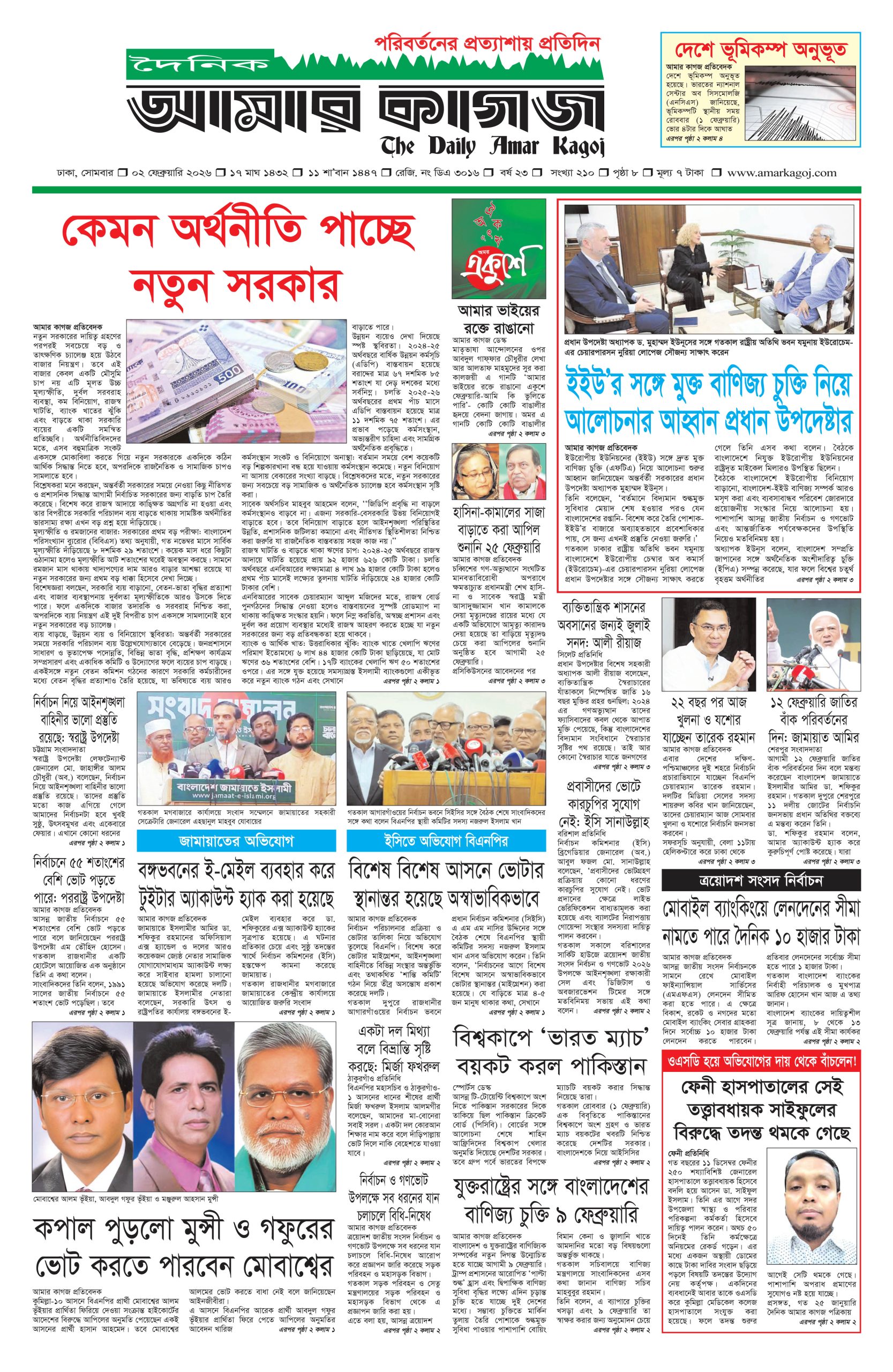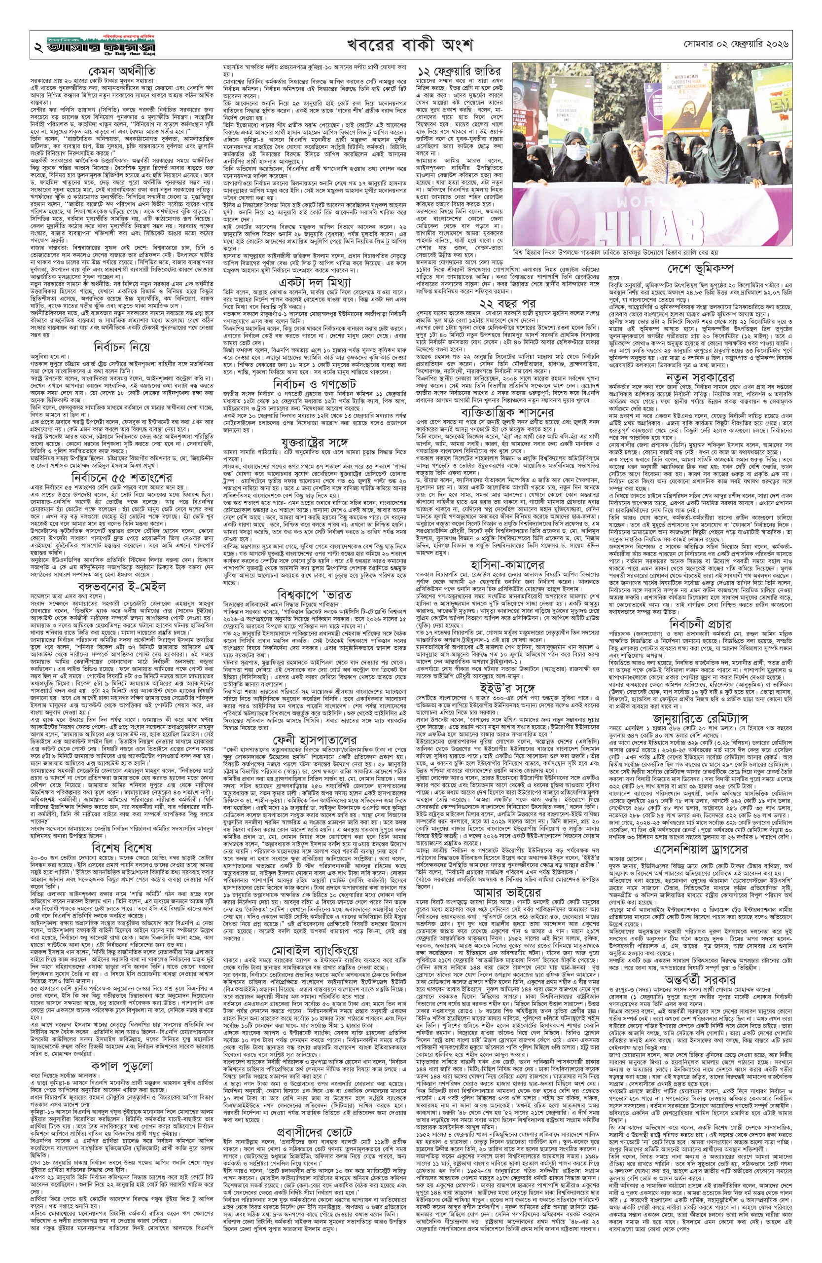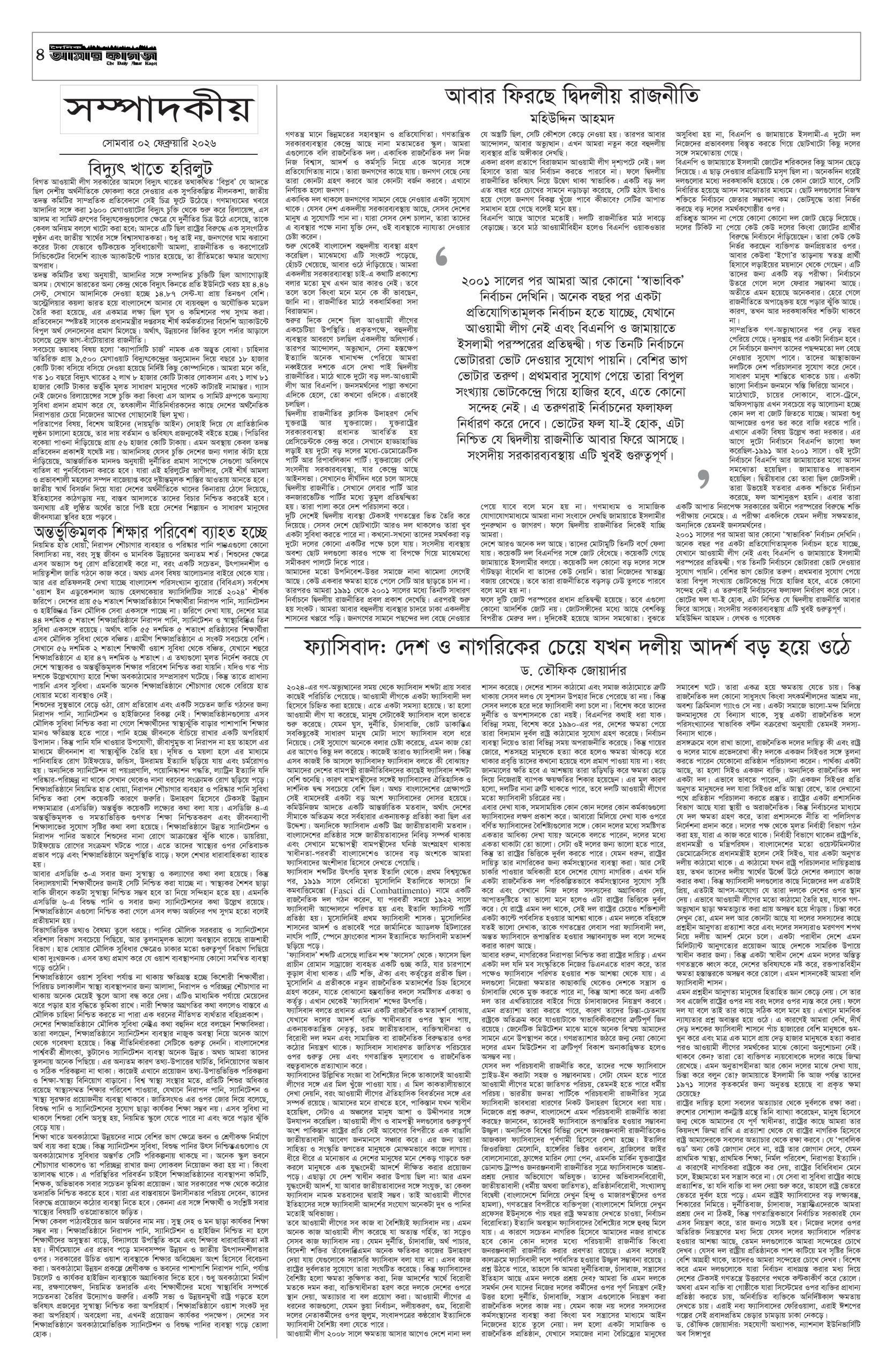 ই পেপার প্রধান সংবাদ সর্বশেষ দৈনিক আমার কাগজ ই-পেপার (সোমবার, ০২ ফেব্রুয়ারি ২০২৬) Faruk Hossain February 2, 2026 9:36 AM Continue Reading Previous: সুর, আলো ও আবেগে প্রাণবন্ত বসন্ত উৎসব গালার প্রস্তুতিNext: ভোটে ১৬ হাজার বিএনসিসি নিয়োগে আপত্তি বিএনপির Leave a Reply Cancel replyYour email address will not be published. Required fields are marked *Comment * Name * Email * Website Save my name, email, and website in this browser for the next time I comment. Related Stories স্বর্ণের দামে বড় পতন, ভরিতে কমলো কত 1 min read অর্থনীতি স্বর্ণের দামে বড় পতন, ভরিতে কমলো কত February 2, 2026 11:53 AM ফেনীর সাবেক তিন এমপিসহ ১৫৭ জনের বিরুদ্ধে গ্রেপ্তারি পরোয়ানা 1 min read দেশজুড়ে ফেনীর সাবেক তিন এমপিসহ ১৫৭ জনের বিরুদ্ধে গ্রেপ্তারি পরোয়ানা February 2, 2026 11:48 AM তিন অতিরিক্ত সচিবের সঙ্গে আমার কাগজ সম্পাদকের সৌজন্য সাক্ষাৎ 1 min read প্রধান সংবাদ তিন অতিরিক্ত সচিবের সঙ্গে আমার কাগজ সম্পাদকের সৌজন্য সাক্ষাৎ February 2, 2026 11:32 AM