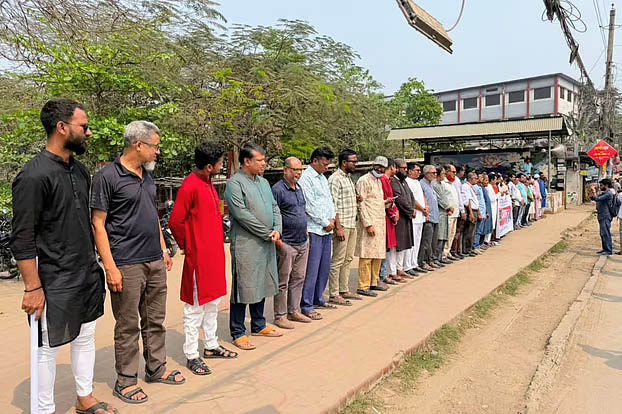 মানববন্ধনে সাংবাদিকেরা বলেন, সাংবাদিকেরা পেশাগত দায়িত্ব পালন করতে গিয়ে যে নৃশংস হামলার শিকার হয়েছেন, তা অত্যন্ত ন্যক্কারজনক। এটি শুধু সাংবাদিকদের ওপর হামলা নয়, এটি স্বাধীন গণমাধ্যমের ওপর আঘাত। তাঁরা দ্রুত অপরাধীদের গ্রেপ্তার করে দৃষ্টান্তমূলক শাস্তি দাবি করেন।