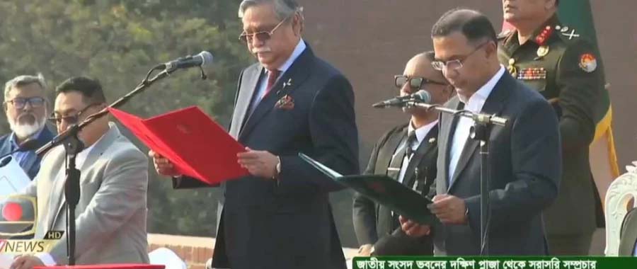প্রধানমন্ত্রী হিসেবে শপথ নিয়েছেন বাংলাদেশ জাতীয়তাবাদী দলের (বিএনপি) চেয়ারম্যান তারেক রহমান। তাকে শপথ বাক্য পাঠ করান রাষ্ট্রপতি মো. সাহাবুদ্দিন। মঙ্গলবার (১৭ ফেব্রুয়ারি) বিকাল ৪টা ১২ মিনিটের দিকে জাতীয় সংসদ ভবনের দক্ষিণ প্লাজায় শপথ গ্রহণ করেন।