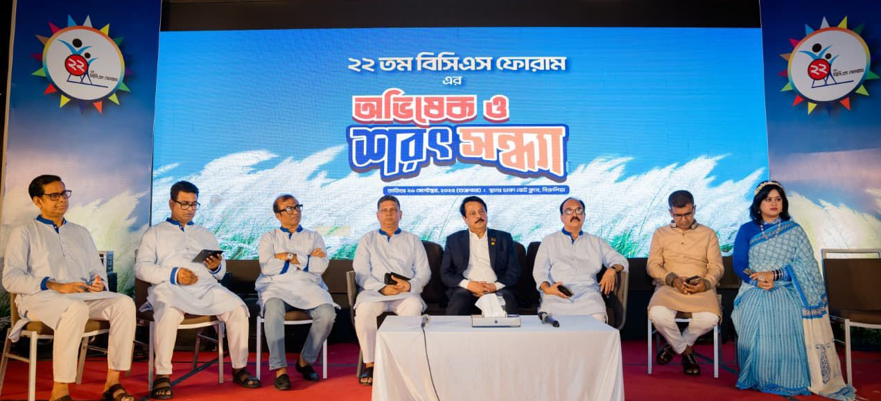 ঐক্যবদ্ধ, গতিশীল ও বৈষম্যহীন বাংলাদেশ সিভিল সার্ভিস গঠনের অঙ্গীকার নিয়ে গতকাল শুক্রবার (২৬ সেপ্টেম্বর) বিকেলে বিসিএস ২২ ব্যাচের ২৬টি ক্যাডারের সমন্বয়ে গঠিত ফোরামের নবনির্বাচিত পূর্ণাঙ্গ কার্যনির্বাহী কমিটির অভিষেক ও শরৎসন্ধ্যা নামীয় স্বতঃস্ফূর্ত অনুষ্ঠানটি একটি মনোরম পরিবেশে ঢাকায় অনুষ্ঠিত হয়। এ এক অনন্য উদ্যোগ ও শুভ সূচনা।