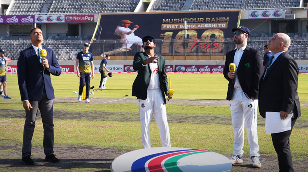 এই ঐতিহাসিক ম্যাচে আয়ারল্যান্ডের বিপক্ষে টস জিতে প্রথমে ব্যাটিং করার সিদ্ধান্ত নিয়েছেন বাংলাদেশ অধিনায়ক নাজমুল হোসেন শান্ত।