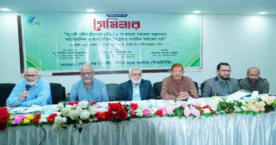 ‘জুলাই পরিবর্তনোত্তর প্রতিশ্রুত সংস্কারের পথরেখা বাস্তবায়নে সাংবিধানিক ও রাজনৈতিক বিশ্লেষণ: নাগরিক সমাজের দায়’ শীর্ষক এক সেমিনারে বক্তারা জুলাই গণ-অভ্যুত্থানের চেতনা সমুন্নত রাখতে ‘জুলাই জাতীয় সনদ (সংবিধান সংস্কার) বাস্তবায়ন আদেশ, ২০২৫’ আইন আকারে প্রণয়ন ও পূর্ণাঙ্গ বাস্তবায়নের দাবি জানিয়েছেন।