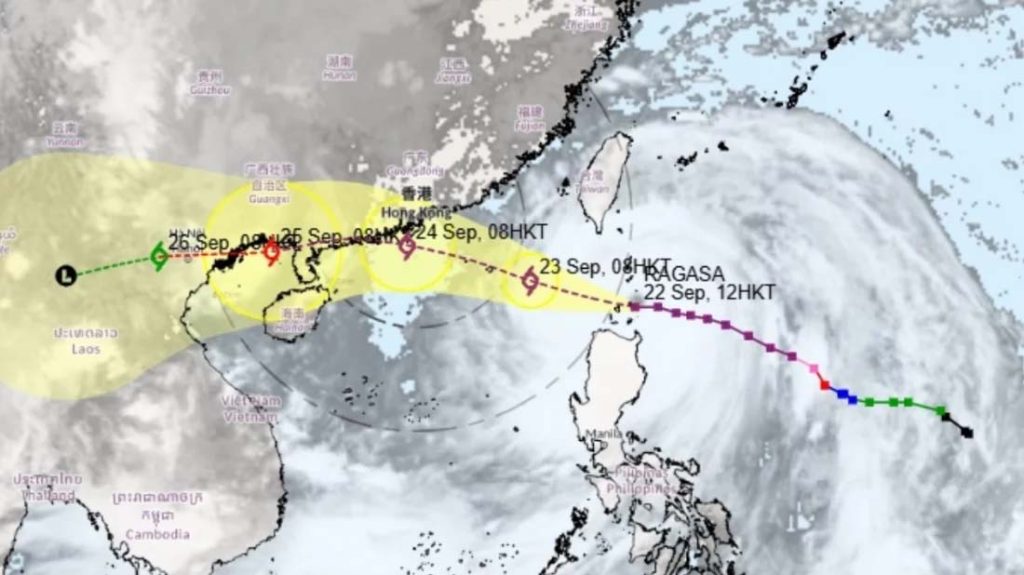 হংকং ২০১৮ সালের বিধ্বংসী মানখুট ঝড়ের পর আবারও সবচেয়ে শক্তিশালী ঘূর্ণিঝড়ের হুমকির মুখে পড়েছে। সুপার টাইফুন রাগাসা ফিলিপাইন উপকূল অতিক্রম করে এখন হংকংয়ের দিকে ধেয়ে আসছে। হংকং অবজারভেটরি জানিয়েছে, ঘূর্ণিঝড়টির সর্বোচ্চ গতিবেগ ঘণ্টায় ২২০ কিলোমিটার (১৩৭ মাইল)।