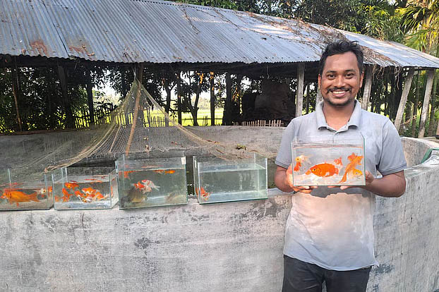 কথায় কথায় সাগর জানালেন, রংপুরের বেগম রোকেয়া বিশ্ববিদ্যালয়ে পড়ার সময় তাঁরা তিন বন্ধু ইউটিউবে অ্যাকুয়ারিয়ামে রঙিন মাছ চাষের পদ্ধতি দেখেন। পরে তাঁরা মিলে রঙিন মাছ চাষের পরিকল্পনা করেন। ২০১৯ সালের নভেম্বরে তিন বন্ধু মাত্র তিন হাজার টাকা পুঁজি নিয়ে যাত্রা শুরু করেন। এই টাকায় ৩৪টি অটো ব্রিডিং এবং গোল্ড ফিশ মাছ কেনেন। নিজের বাড়ির আঙিনায় মাটিতে গর্ত খুঁড়ে সেই গর্তে পলিথিন দিয়ে পরীক্ষামূলকভাবে মাছের চাষ শুরু করেন।