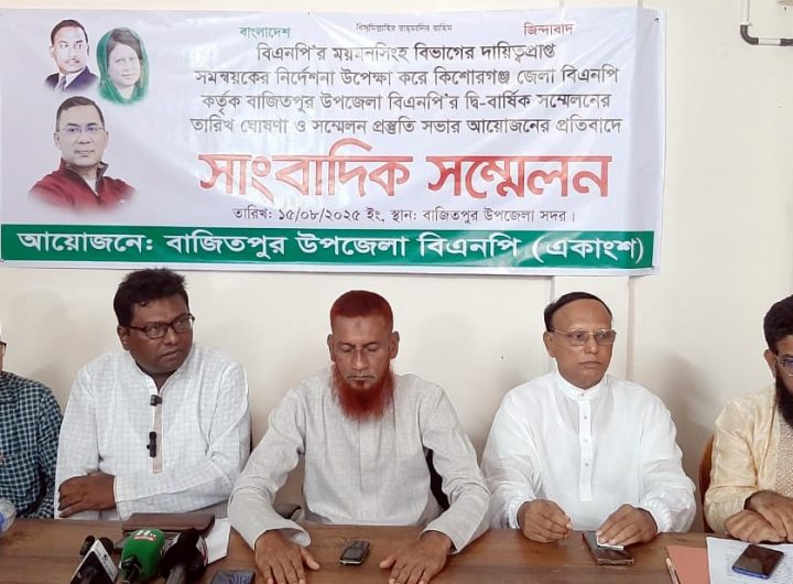 কেন্দ্রীয় সিদ্ধান্ত উপেক্ষা করে ২০ আগস্টের সম্মেলন ঘিরে বাজিতপুরে বিএনপির একাংশের প্রতিবাদ